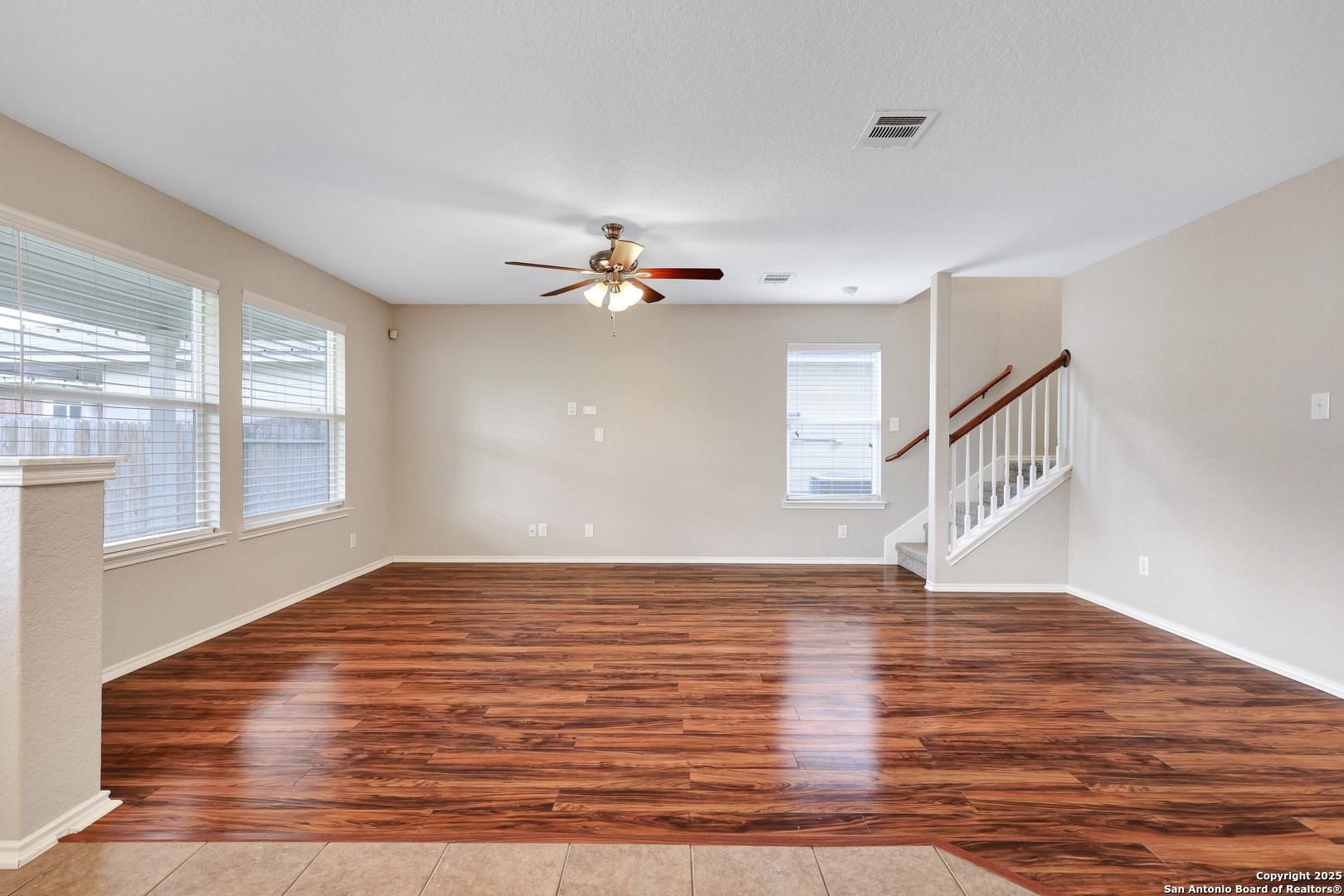 Welcome to this beautifully maintained two-story home in the desirable gated community of Laura Heights. Featuring 3 spacious bedrooms and 2.5 baths, this home is move-in ready and offers a perfect blend of style, comfort, and functionality. Inside you'll discover stunning wood-laminate flooring that flows seamlessly from the formal dining area into a spacious and inviting family room. The open-concept kitchen is a chef's dream, complete with stainless steel appliances and refrigerator, granite countertops, water softener, and a stylish tile backsplash-ideal for both everyday living and entertaining. Enjoy your morning coffee in the bright breakfast nook, framed by a large picture window overlooking the private backyard. Upstairs, you'll find all bedrooms along with a versatile second living area-perfect for a media room, playroom, or home office. The expansive primary suite features a luxurious en-suite bath with double vanities, a relaxing garden tub, and a separate walk-in shower. Outside you'll find a generously sized backyard, covered patio, and storage shed-perfect for weekend BBQs, entertaining guests, or unwinding after a long day. As a resident of Laura Heights, you'll enjoy access to top-tier amenities including a private community pool, covered pavilion with BBQ grills, soccer field, and multiple playgrounds for the kids. Don't miss your opportunity to own this beautiful home in a sought-after location!