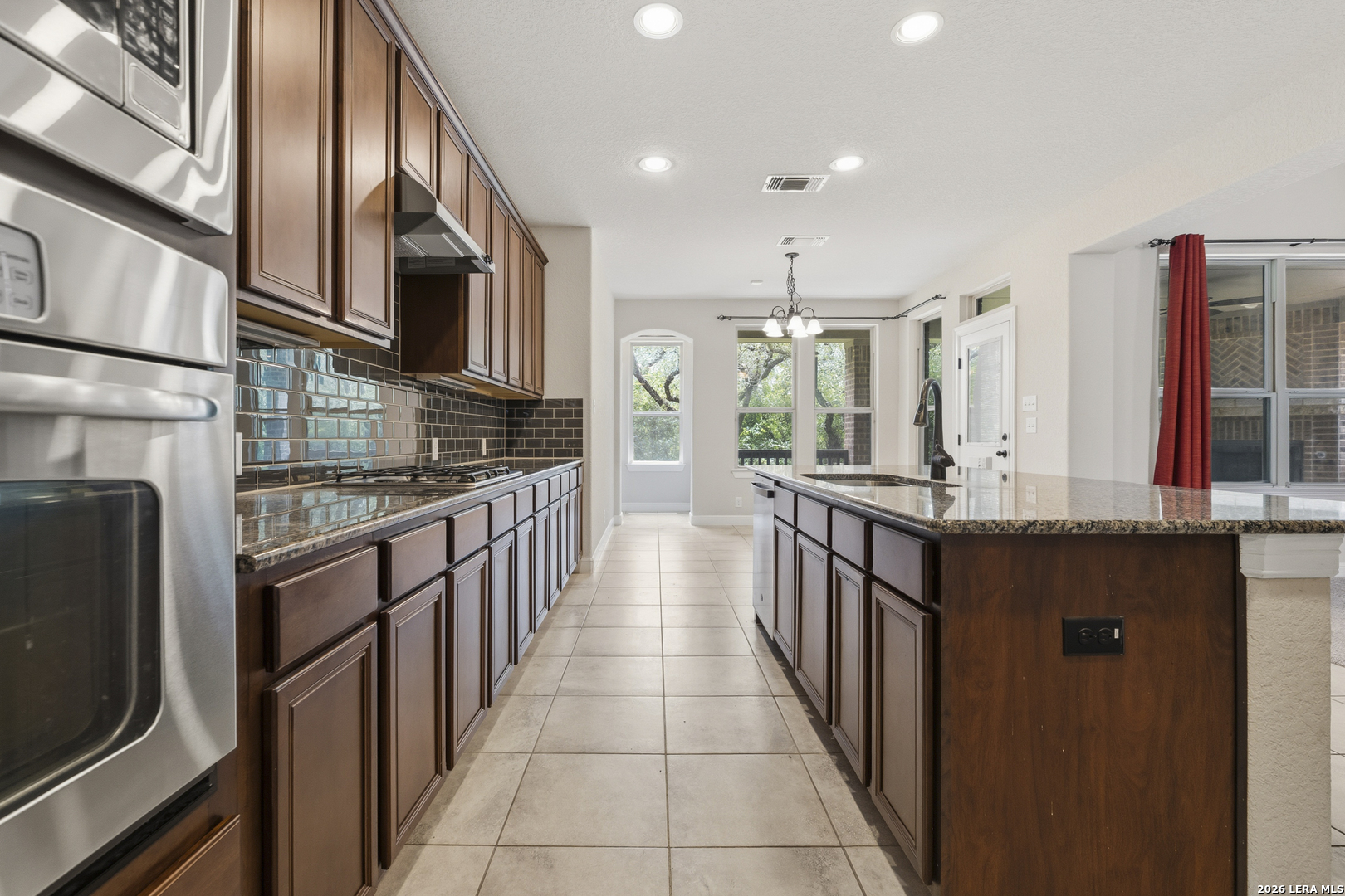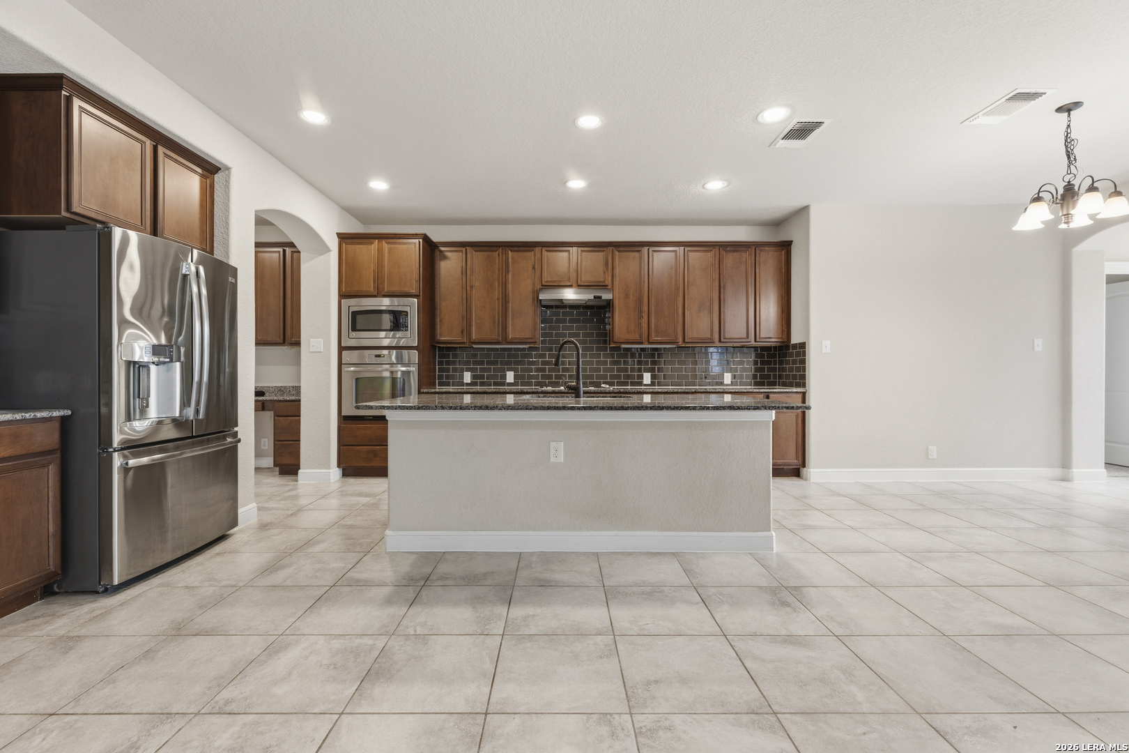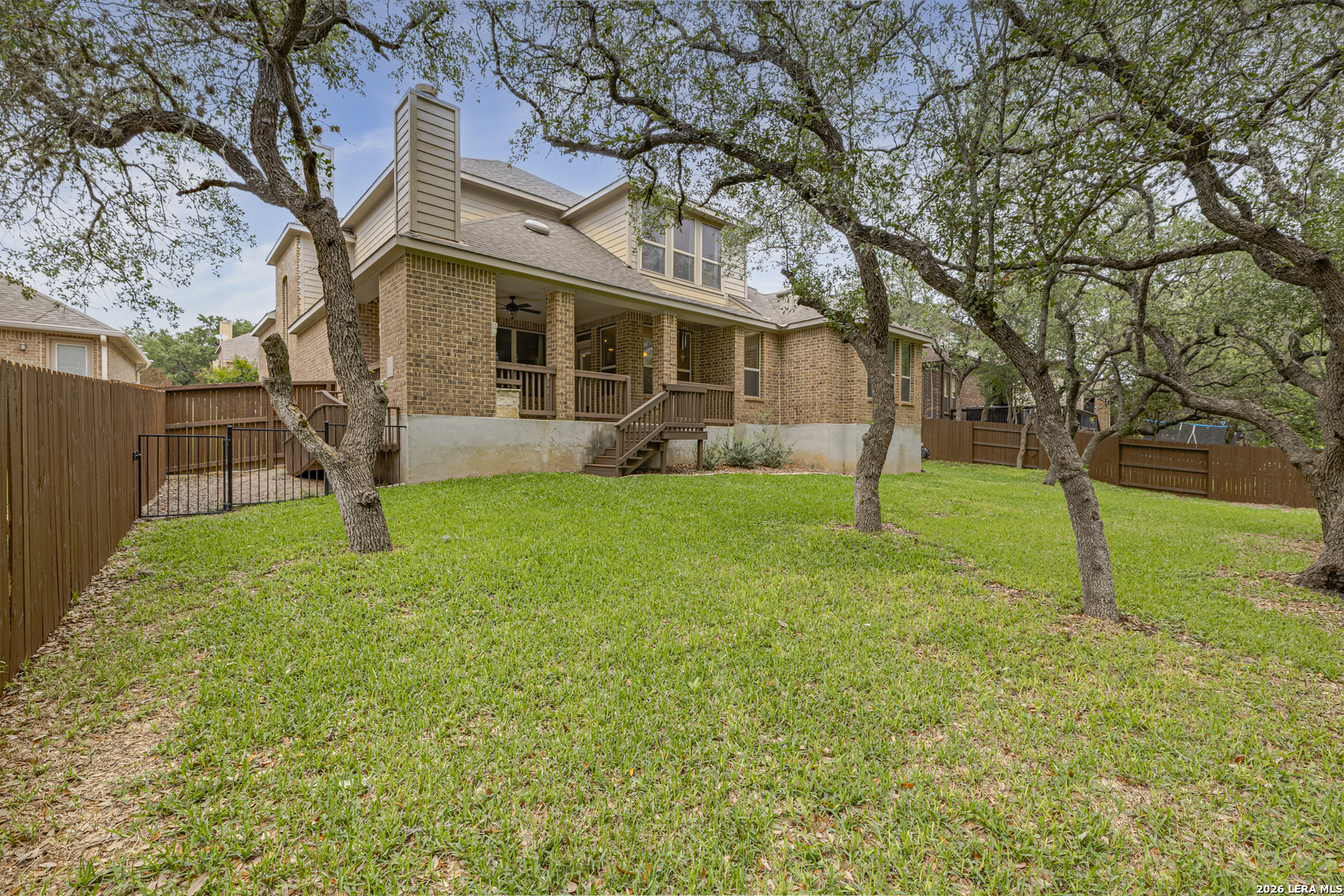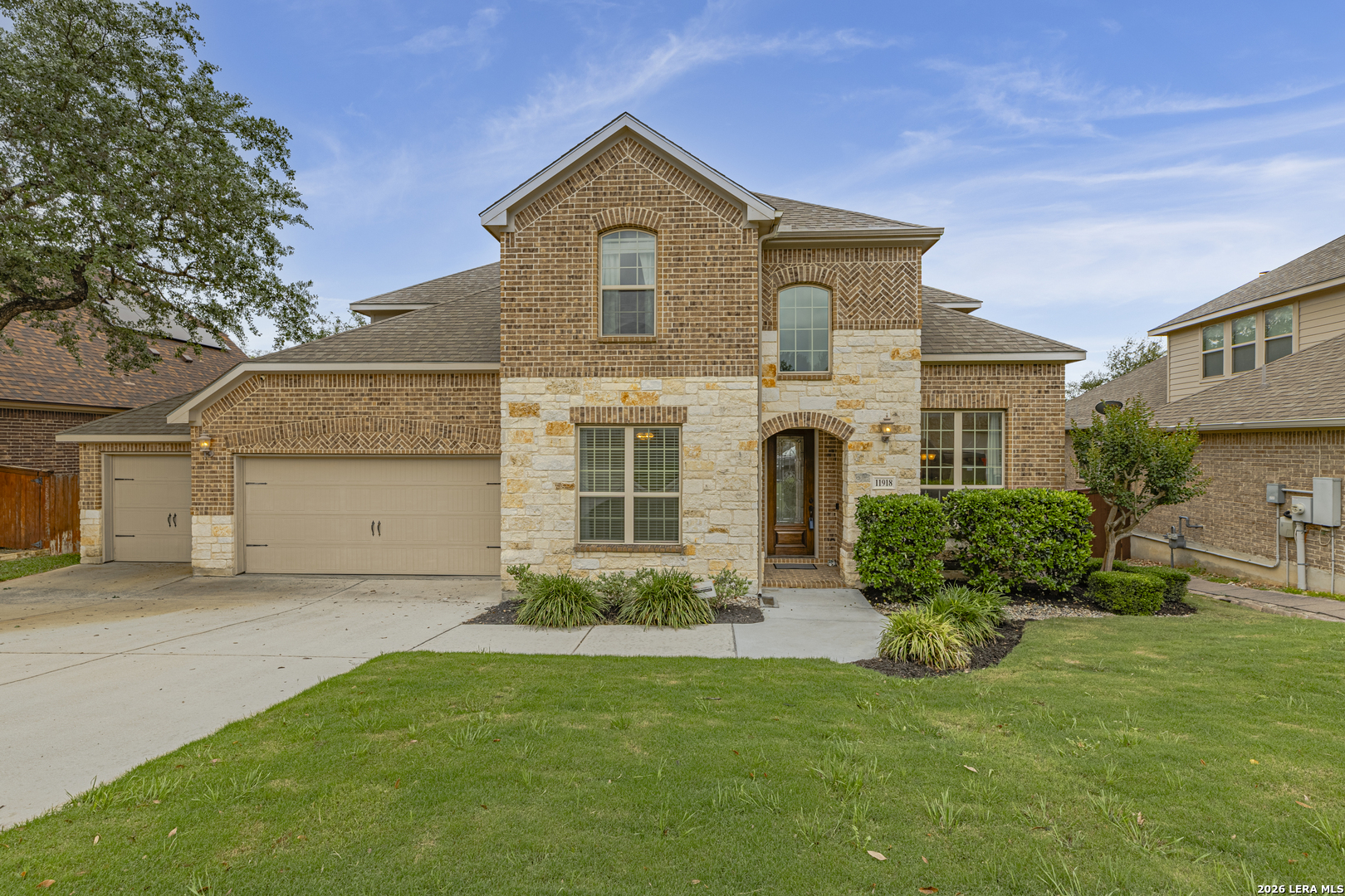 Nestled within the coveted gated community of Preserve at Alamo Ranch, this beautifully crafted Highland Homes residence offers an exceptional blend of luxury, comfort, and thoughtful design. Spanning an impressive 3,578 square feet, the residence features 4 spacious bedrooms, 3.5 baths, and an attached three car garage. At the heart of the home, the gourmet eat-in kitchen showcases an expansive island, granite countertops, and stainless steel appliances-ideal for gathering with family and friends. The inviting living area is anchored by a striking stone fireplace, creating a warm and welcoming ambiance. A private study and formal dining room provide flexibility for work and hosting, while the oversized primary suite serves as a tranquil retreat, complete with a spa-inspired bath. The well-designed layout includes an upstairs ensuite bedroom and an additional double-vanity hall bath, ensuring comfort and privacy for guests and family alike. Enjoy a generous bonus room along with a dedicated media room-perfect for movie nights or game days. Step outside to an extended covered patio with a built-in fireplace-perfect for year-round relaxing and entertaining, all backing up to a greenbelt for added privacy. Recent updates include new carpet in the living room and primary bedroom, tile flooring in the office, upgraded surround sound, and a new roof currently in progress. The home also conveys with a refrigerator, projector, screen, media room table, surround sound speakers, and curtains-making it truly move-in ready. Enjoy the resort-style amenity center with a sparkling pool, complemented by scenic trails, expansive green spaces, basketball courts, and a thoughtfully designed playground. Conveniently located near Alamo Ranch shopping, dining, and entertainment, with easy access to Loop 1604, Highway 151, and Highway 90, this home offers both exceptional lifestyle and prime location.