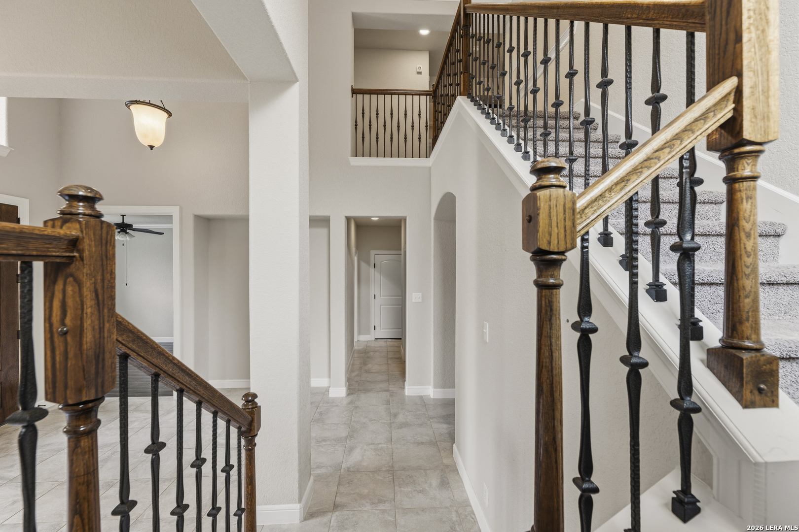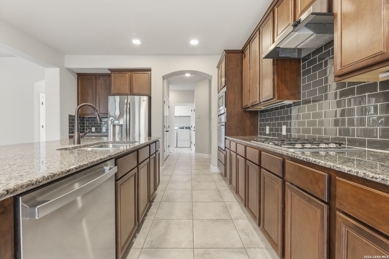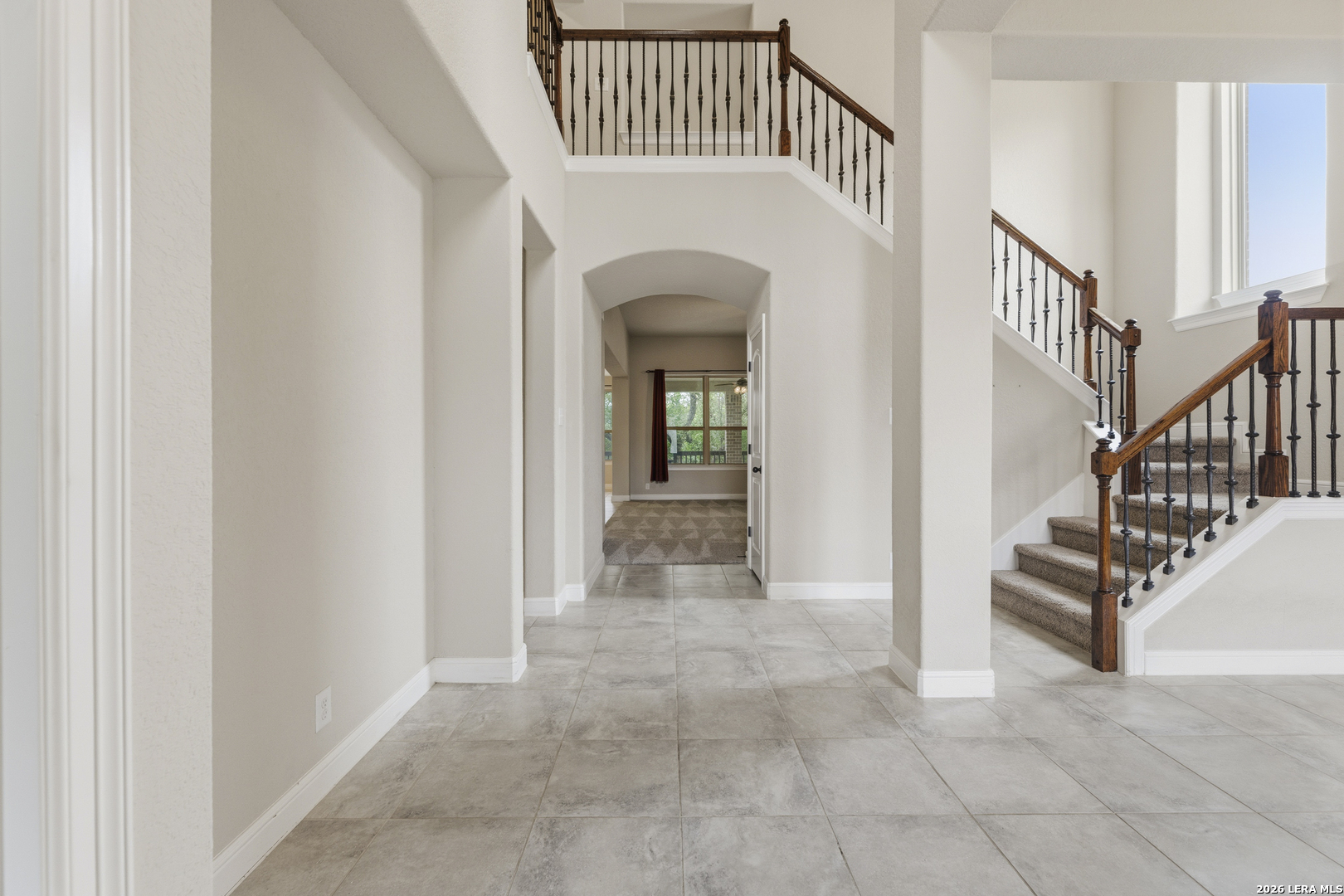 Nestled within the coveted gated community of Preserve at Alamo Ranch, this beautifully crafted Highland Homes residence offers an exceptional blend of luxury, comfort, and thoughtful design. Spanning an impressive 3,578 square feet, the residence features 4 spacious bedrooms, 3.5 baths, and an attached three car garage. At the heart of the home, the gourmet eat-in kitchen showcases an expansive island, granite countertops, and stainless steel appliances-ideal for gathering with family and friends. The inviting living area is anchored by a striking stone fireplace, creating a warm and welcoming ambiance. A private study and formal dining room provide flexibility for work and hosting, while the oversized primary suite serves as a tranquil retreat, complete with a spa-inspired bath. The well-designed layout includes an upstairs ensuite bedroom and an additional double-vanity hall bath, ensuring comfort and privacy for guests and family alike. Enjoy a generous bonus room along with a dedicated media room-perfect for movie nights or game days. Step outside to an extended covered patio with a built-in fireplace-perfect for year-round relaxing and entertaining, all backing up to a greenbelt for added privacy. Recent updates include new carpet in the living room and primary bedroom, tile flooring in the office, upgraded surround sound, and a new roof currently in progress. The home also conveys with a refrigerator, projector, screen, media room table, surround sound speakers, and curtains-making it truly move-in ready. Enjoy the resort-style amenity center with a sparkling pool, complemented by scenic trails, expansive green spaces, basketball courts, and a thoughtfully designed playground. Conveniently located near Alamo Ranch shopping, dining, and entertainment, with easy access to Loop 1604, Highway 151, and Highway 90, this home offers both exceptional lifestyle and prime location.