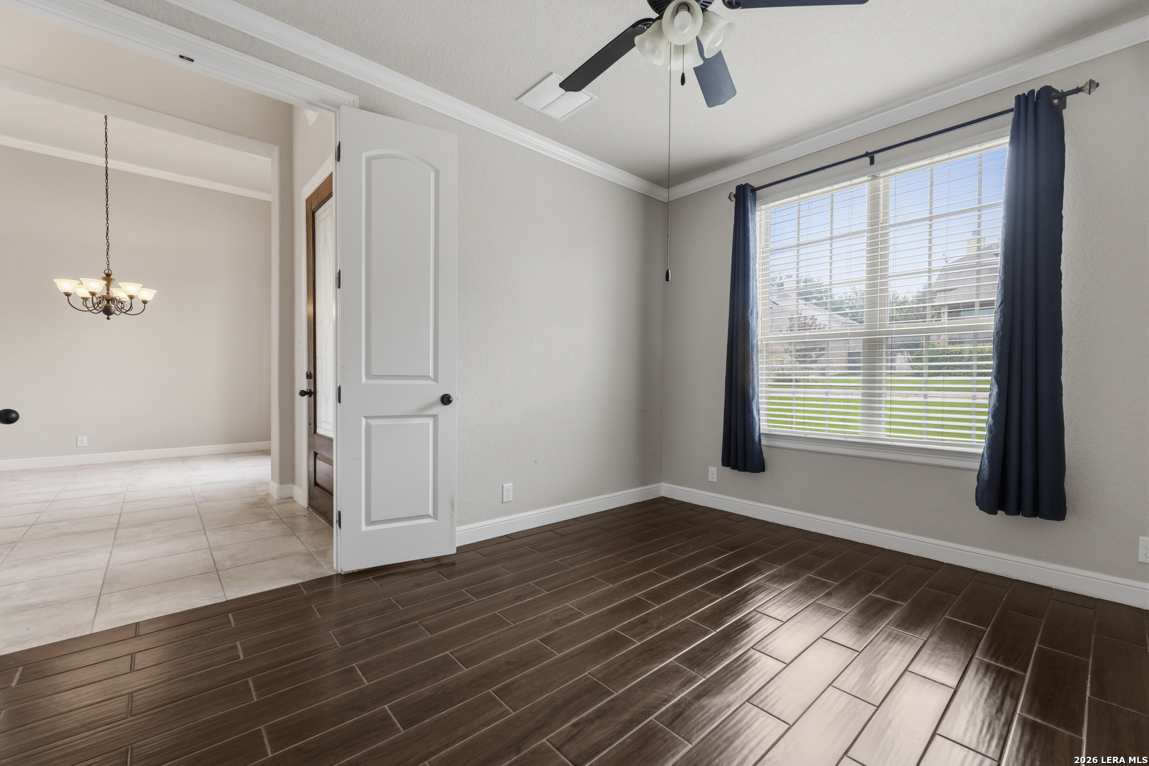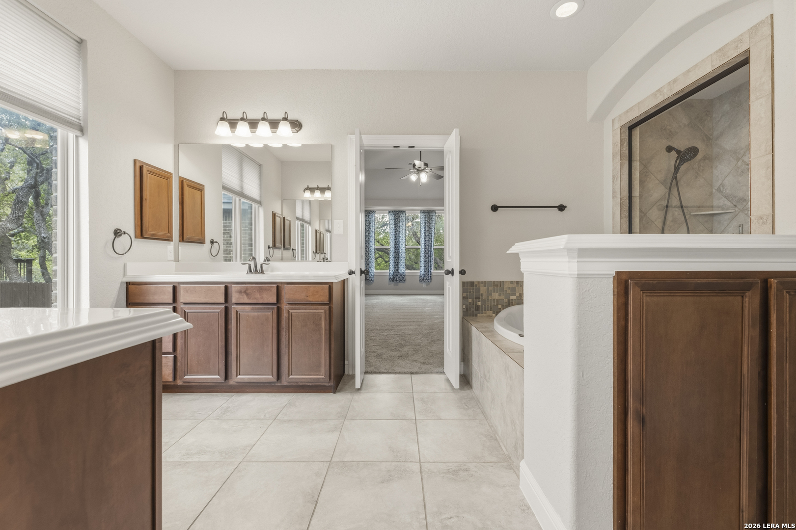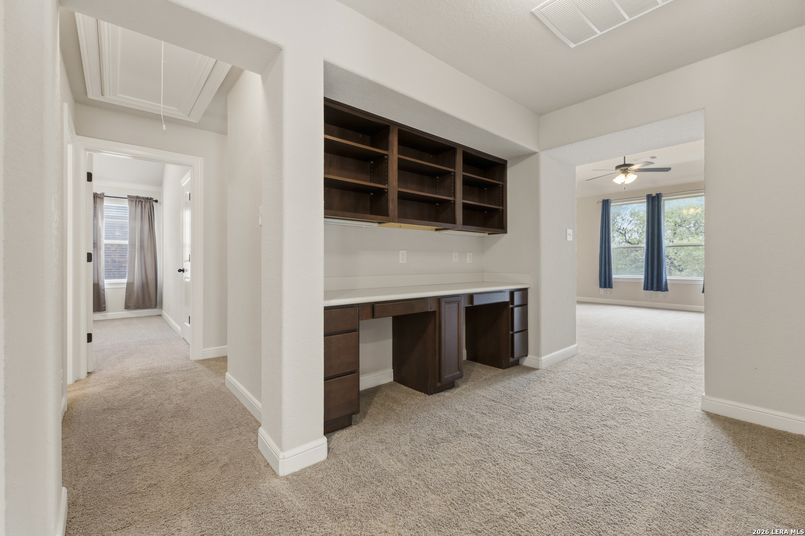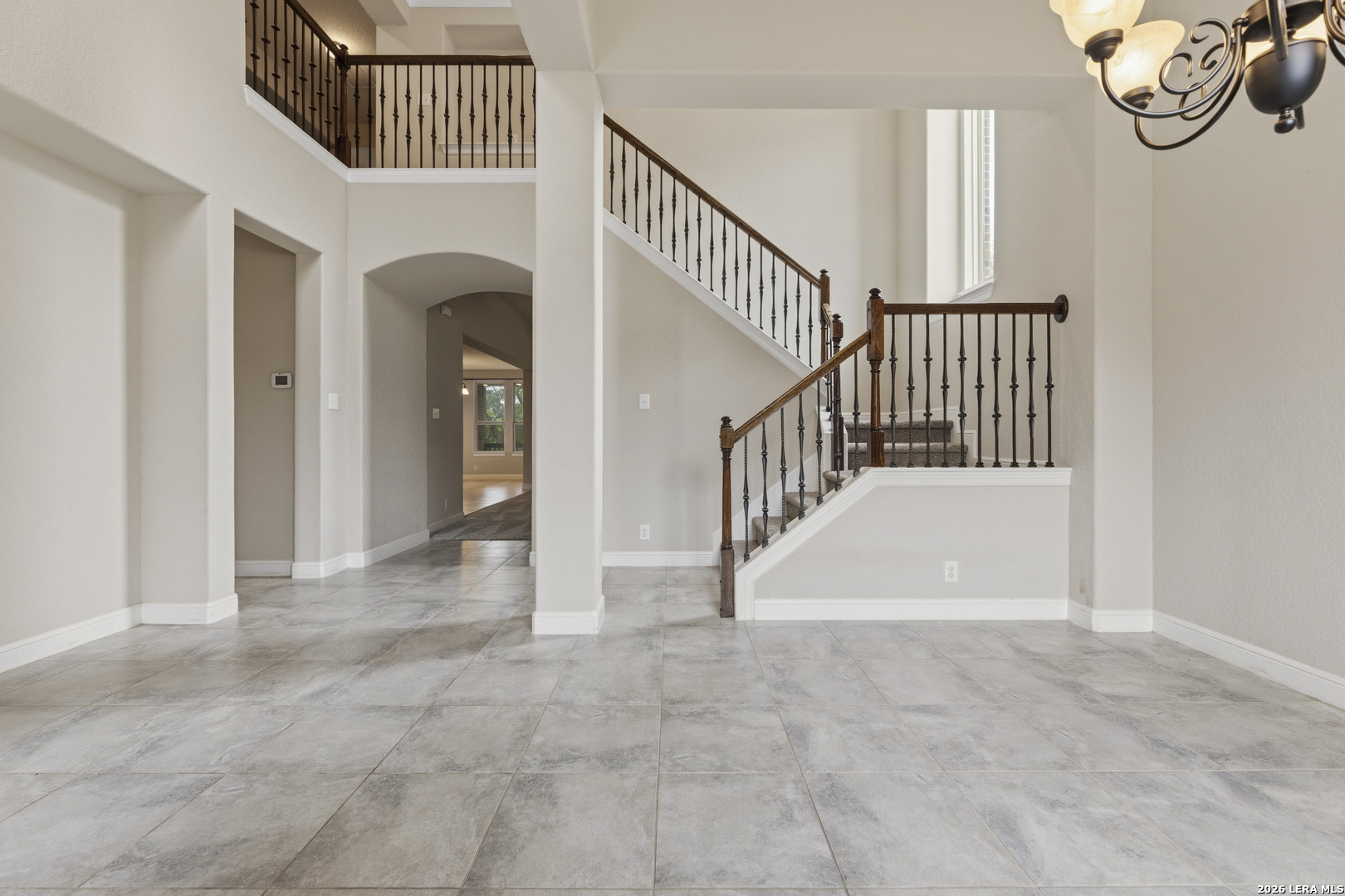 Nestled within the coveted gated community of Preserve at Alamo Ranch, this beautifully crafted Highland Homes residence offers an exceptional blend of luxury, comfort, and thoughtful design. Spanning an impressive 3,578 square feet, the residence features 4 spacious bedrooms, 3.5 baths, and an attached three car garage. At the heart of the home, the gourmet eat-in kitchen showcases an expansive island, granite countertops, and stainless steel appliances-ideal for gathering with family and friends. The inviting living area is anchored by a striking stone fireplace, creating a warm and welcoming ambiance. A private study and formal dining room provide flexibility for work and hosting, while the oversized primary suite serves as a tranquil retreat, complete with a spa-inspired bath. The well-designed layout includes an upstairs ensuite bedroom and an additional double-vanity hall bath, ensuring comfort and privacy for guests and family alike. Enjoy a generous bonus room along with a dedicated media room-perfect for movie nights or game days. Step outside to an extended covered patio with a built-in fireplace-perfect for year-round relaxing and entertaining, all backing up to a greenbelt for added privacy. Recent updates include new carpet in the living room and primary bedroom, tile flooring in the office, upgraded surround sound, and a new roof currently in progress. The home also conveys with a refrigerator, projector, screen, media room table, surround sound speakers, and curtains-making it truly move-in ready. Enjoy the resort-style amenity center with a sparkling pool, complemented by scenic trails, expansive green spaces, basketball courts, and a thoughtfully designed playground. Conveniently located near Alamo Ranch shopping, dining, and entertainment, with easy access to Loop 1604, Highway 151, and Highway 90, this home offers both exceptional lifestyle and prime location.