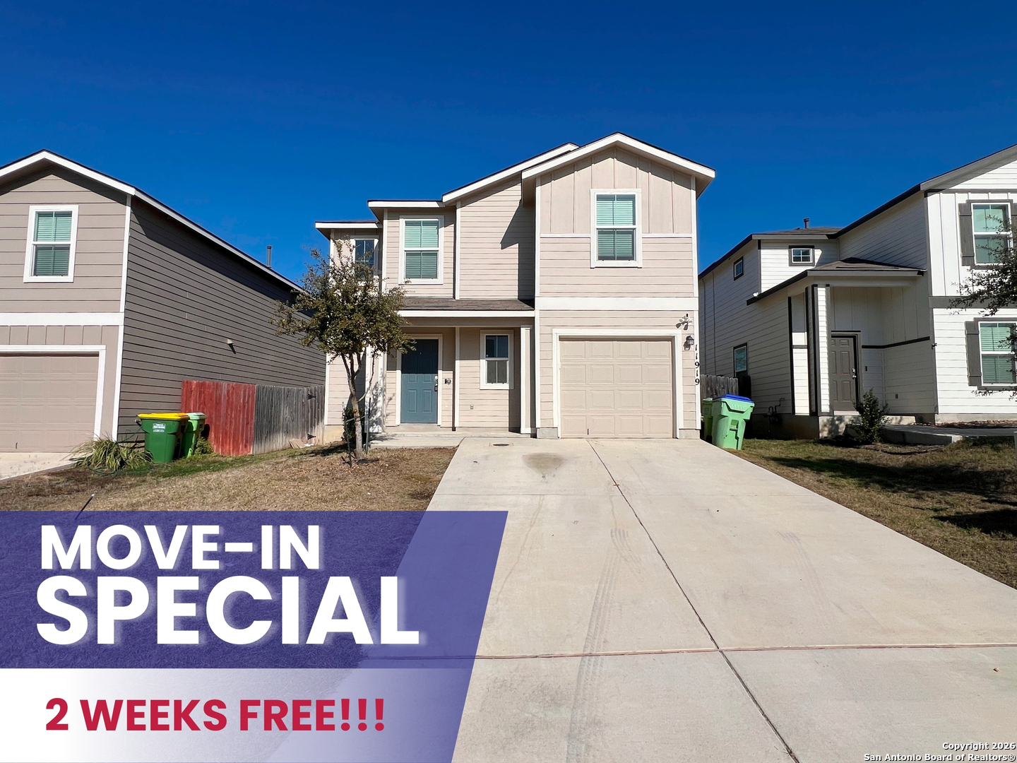 *** Move-in Special 2 Weeks Free Rent *** 4 Bedroom 2.5 Bath 1840 sq ft Home. Vinyl Plank floors downstairs. Large Living Room and Dining Room. Kitchen with Breakfast Bar, Walk-in Pantry. Fridge, Gas Stove, Microwave, Dishwasher. Upstairs is the Loft and 4 Bedrooms and 2 Full Baths. Primary Bedroom with Ceiling Fan, Walk-in Closet. Primary Bath with Shower/Tub Combo. Large Fenced Yard with Covered Patio and extending Patio, no back neighbor. Garage with Opener, Gas Water Heater, Water Softener, Sprinkler System. Community Pool and Playground. Close to Shopping, Hwy 90, Lackland AFB.