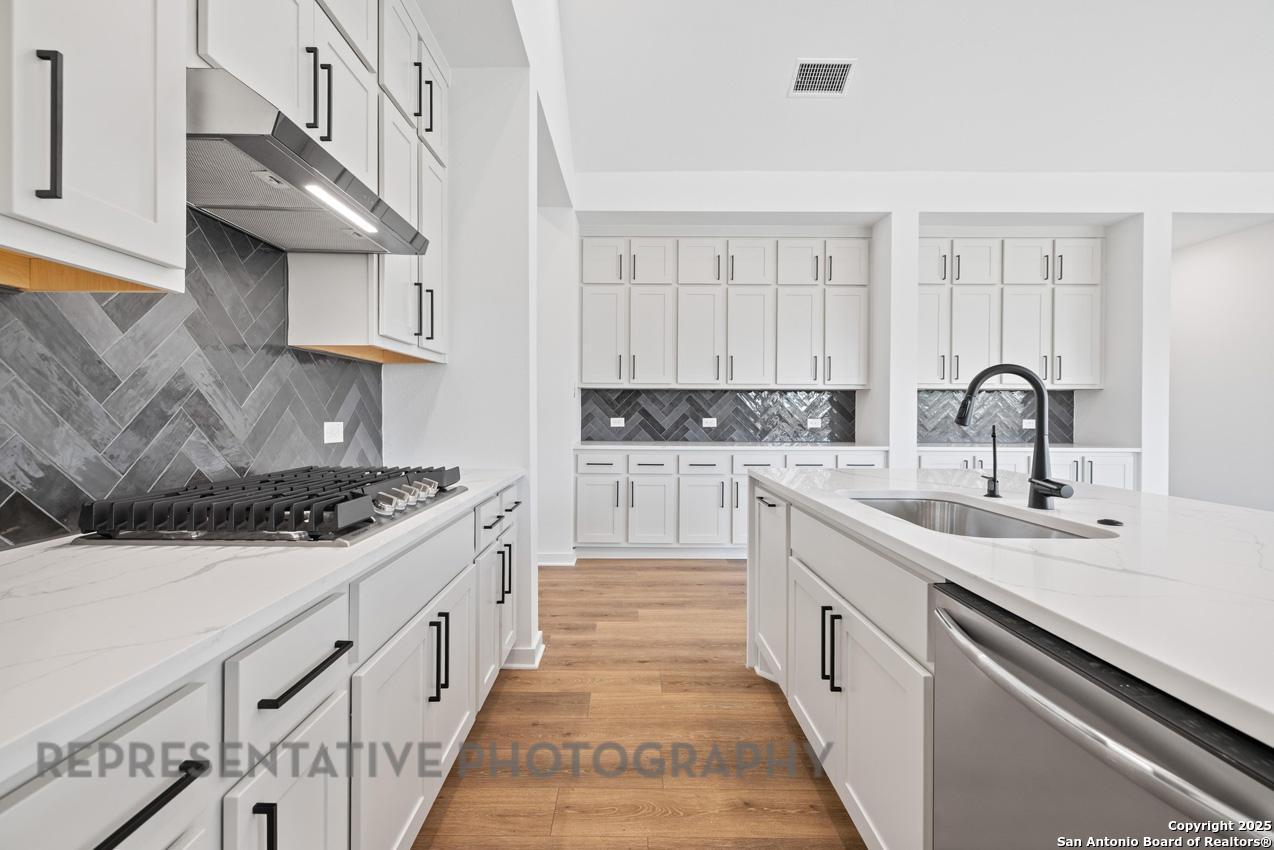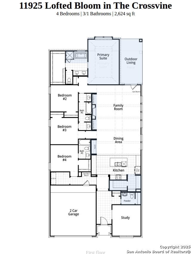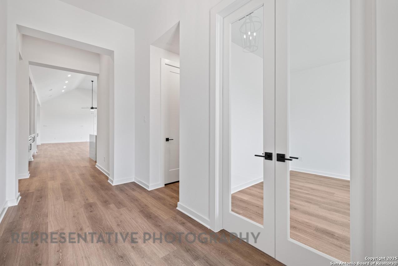 Stunning 1 story home with 2624 sf- 4 bdrms plus study, 3.5 bath, covered patio and extended primary bdrm. This home boasts wood floors and vaulted ceilings. Home sits on a oversized lot facing a permanent community greenspace area.