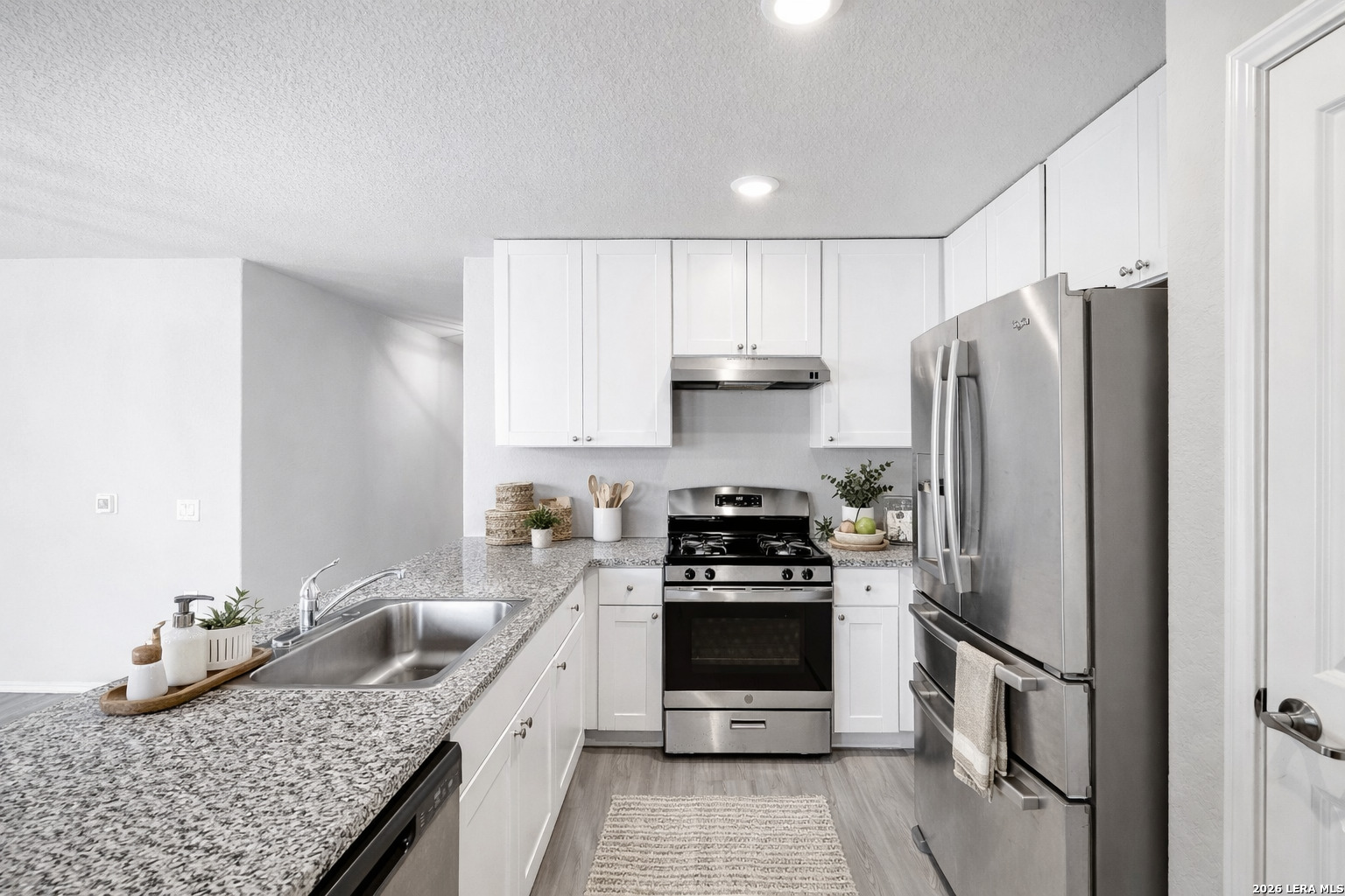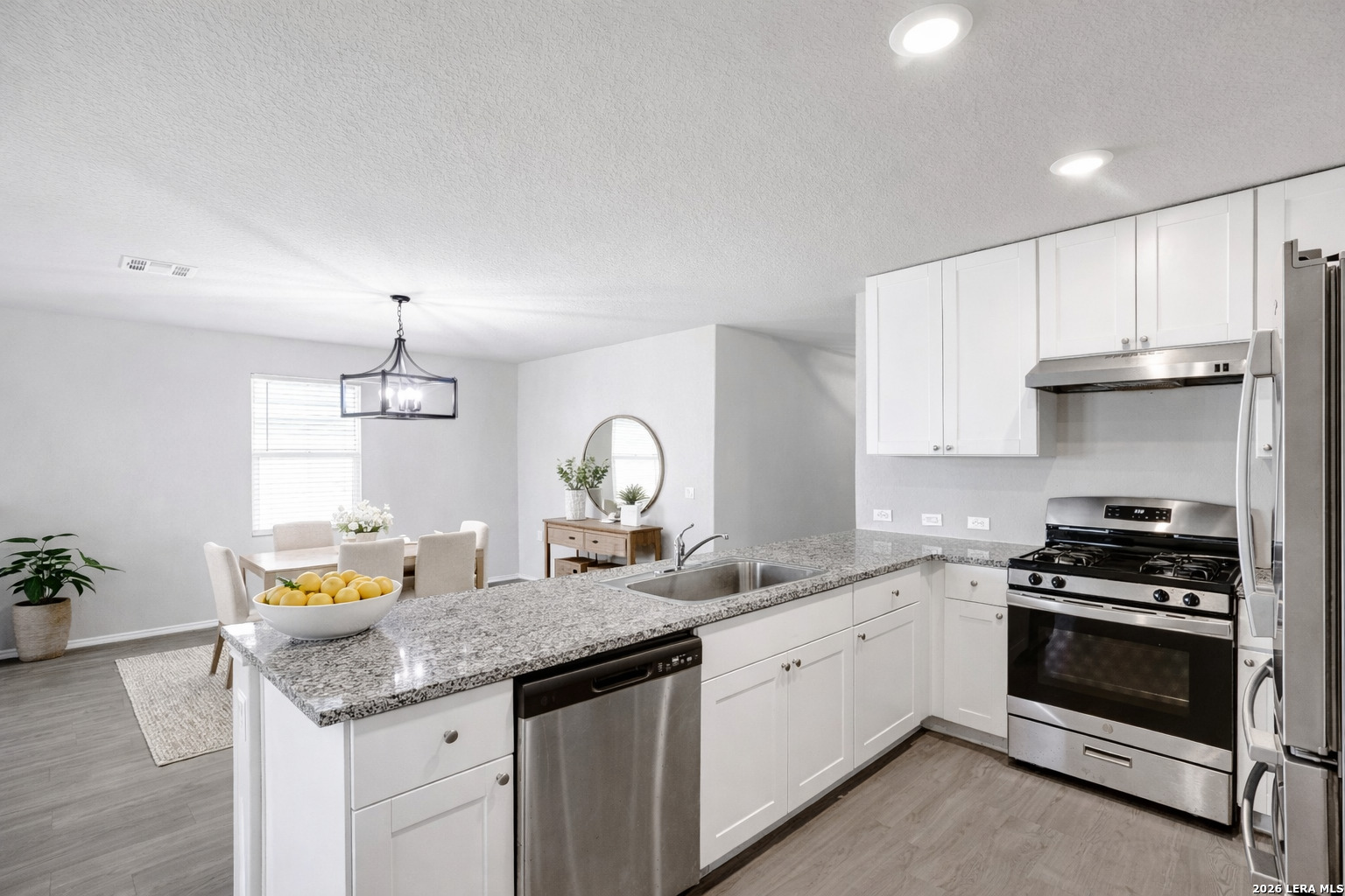 WELCOME HOME! This lightly livedin 4bedroom, 2bath residence offers 1,683 sq. ft. of modern comfort in the highly desirable Missions De Lago community. Built in 2021, the home features a charming front porch, an openconcept layout filled with natural light, upgraded modern lighting, granite countertops, a gas stove, and stainless steel appliances. The spacious, fully fenced backyard-with NO BACK NEIGHBORS-provides exceptional privacy and endless possibilities for entertaining, relaxing, or weekend barbecues. Excellent curb appeal and generous parking further enhance the moveinready appeal of this property. LOVE THE OUTDOORS? Enjoy morning rounds of golf, evening walks on nearby trails, or bike rides around Lake Mitchell. Explore the historic missions just minutes away, or take advantage of quick access to major highways, parks, and shopping. Schedule your showing today and experience the lifestyle this home has to offer!