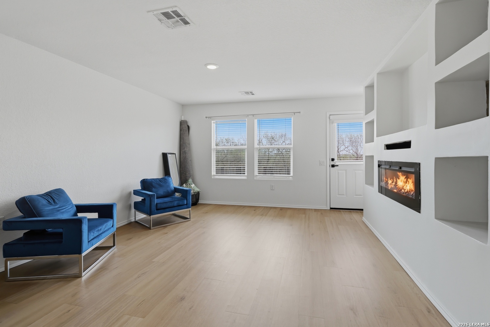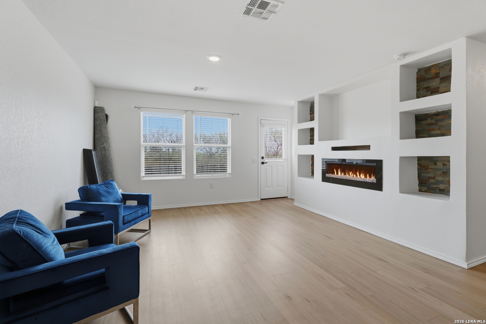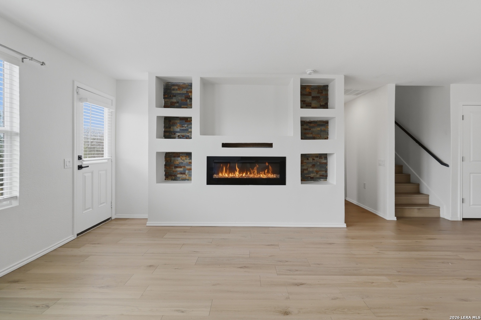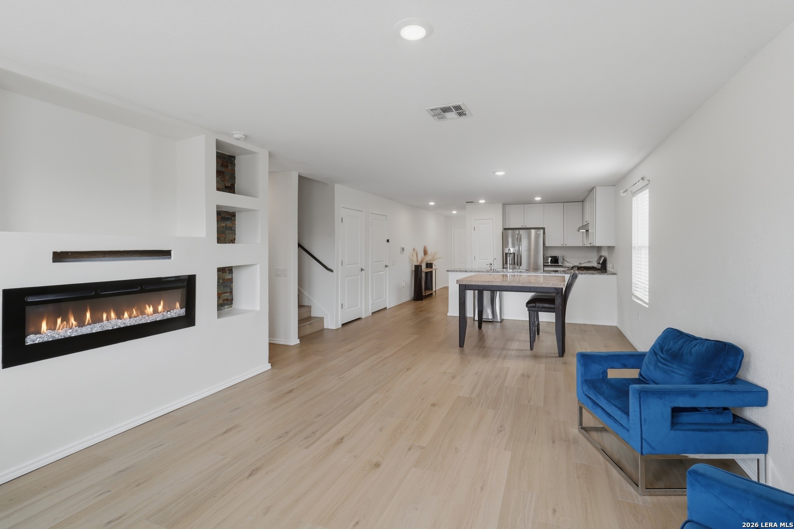 Style, space, and modern comfort come together in this beautifully maintained, move-in-ready home tucked away in a quiet culdesac in the Mission del Lago community. Step inside and immediately appreciate the updated flooring that flows seamlessly throughout the entire home, including the stairs, with no carpet in sight, creating a clean and contemporary feel. The living room showcases a built in fireplace and custom shelving. The kitchen is equipped with a gas stove/oven, dishwasher, and refrigerator, making it move in ready. The primary suite is conveniently located downstairs. Upstairs you'll find 3 additional bedrooms along with a large loft, ideal for a game room, media space, or home office. Step outside to a generously sized backyard with no rear neighbor and a peaceful greenbelt backdrop, giving you added privacy. Residents may also enjoy access to amenities such as a golf course, walking trails, parks, and a neighborhood pool. With easy access to Loop 410, I-37, and Highway 281, you're just minutes from Brooks City Base, downtown San Antonio, shopping, dining, and entertainment. Don't miss your opportunity to own this spacious home in a prime location, schedule your showing today!