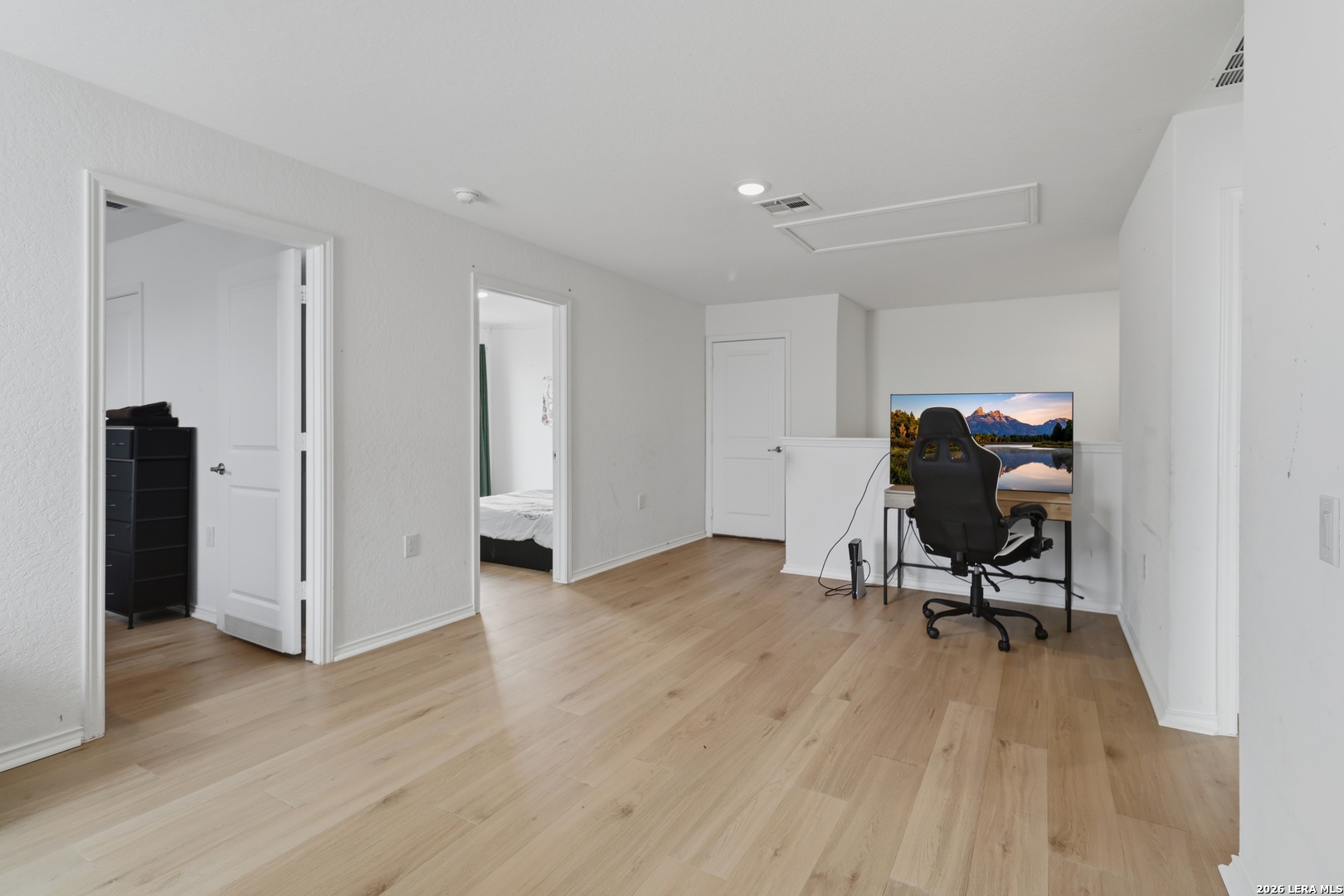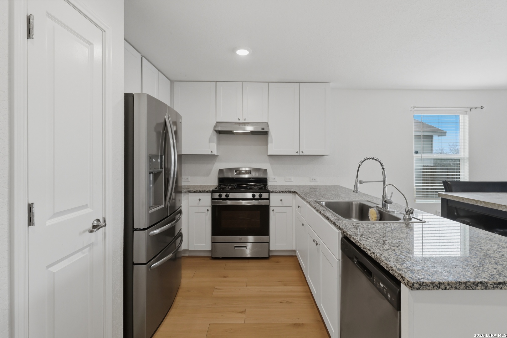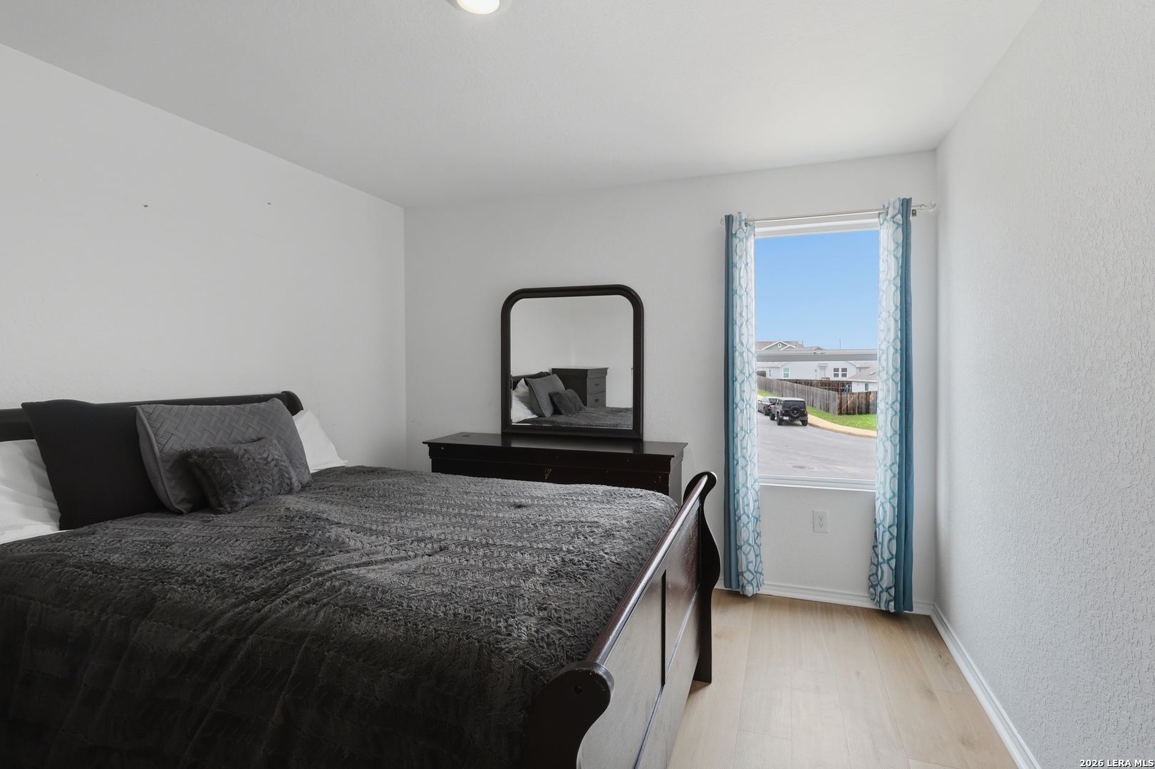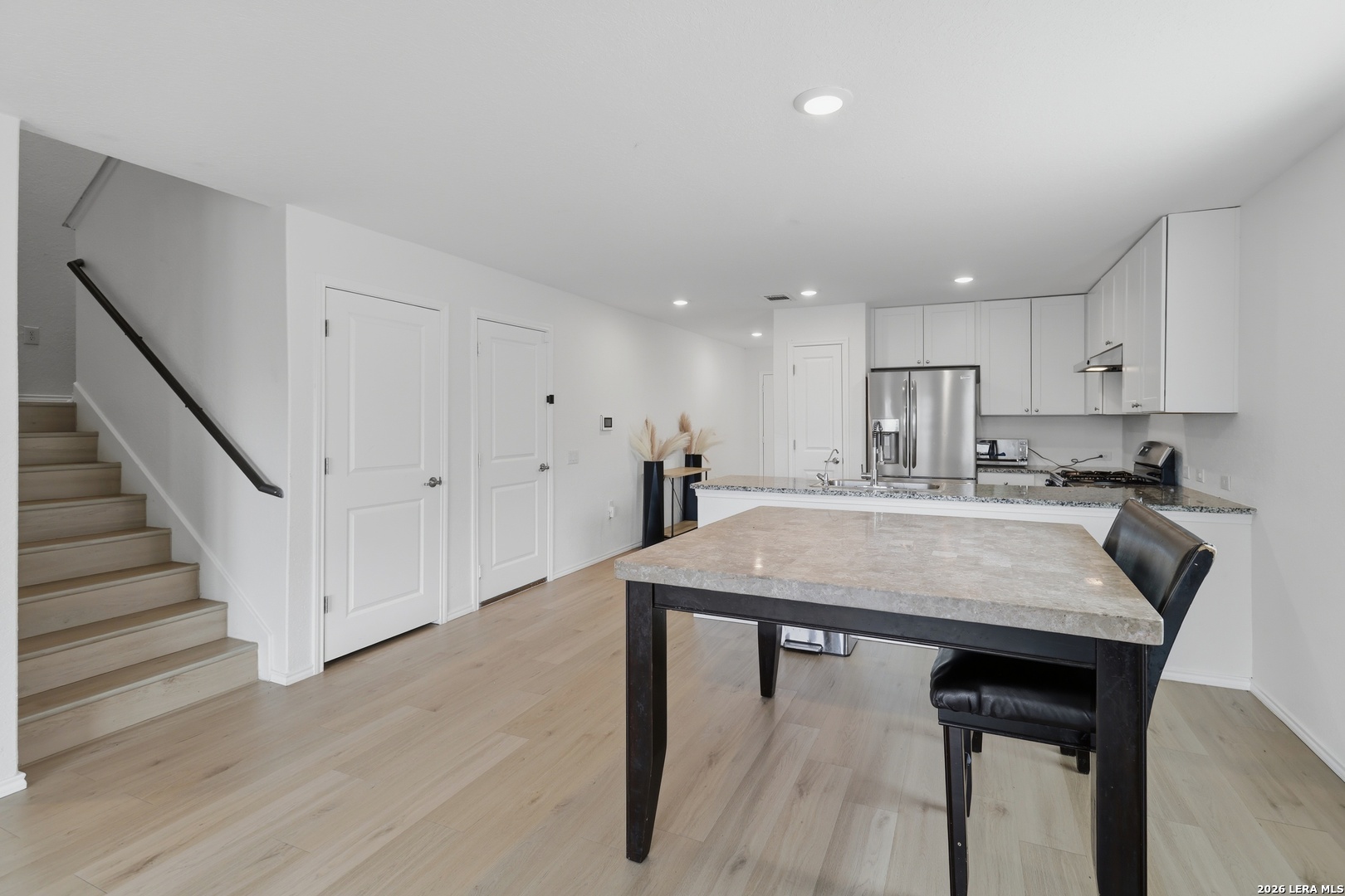 Style, space, and modern comfort come together in this beautifully maintained, move-in-ready home tucked away in a quiet culdesac in the Mission del Lago community. Step inside and immediately appreciate the updated flooring that flows seamlessly throughout the entire home, including the stairs, with no carpet in sight, creating a clean and contemporary feel. The living room showcases a built in fireplace and custom shelving. The kitchen is equipped with a gas stove/oven, dishwasher, and refrigerator, making it move in ready. The primary suite is conveniently located downstairs. Upstairs you'll find 3 additional bedrooms along with a large loft, ideal for a game room, media space, or home office. Step outside to a generously sized backyard with no rear neighbor and a peaceful greenbelt backdrop, giving you added privacy. Residents may also enjoy access to amenities such as a golf course, walking trails, parks, and a neighborhood pool. With easy access to Loop 410, I-37, and Highway 281, you're just minutes from Brooks City Base, downtown San Antonio, shopping, dining, and entertainment. Don't miss your opportunity to own this spacious home in a prime location, schedule your showing today!