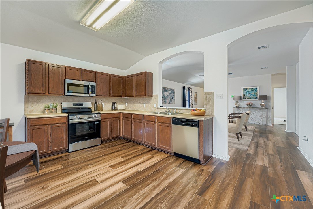 Welcome home! This beautifully refreshed one-story, 3-bedroom, 2-bath retreat is ideally located just minutes from I-35, Pickle Parkway, schools, shopping, and more, offering both convenience and comfort in a thriving community. Step inside to find a home that’s truly move-in ready, with thoughtful upgrades throughout: brand-new stainless steel kitchen appliances, all-new flooring, fresh interior and exterior paint, a new roof installed within the past couple of months, a recently serviced HVAC system, and even a foundation with a lifetime warranty for added peace of mind. The spacious living room flows seamlessly into the open kitchen and dining area, creating the perfect hub for entertaining or everyday life. Your private primary suite is a true retreat, featuring dual sinks, a walk-in closet, a soaking tub, and a glass-framed shower. Outside, enjoy direct views of the scenic community pond from your fenced backyard and covered porch, ideal for morning coffee, evening relaxation, or weekend get-togethers. The neighborhood also offers walking trails and tranquil outdoor spaces to enjoy year-round. With comfort, style, and special financing perks like discounted rate options and no-lender-fee refinancing for qualified buyers, this home has it all. Don’t miss your chance to call it yours!