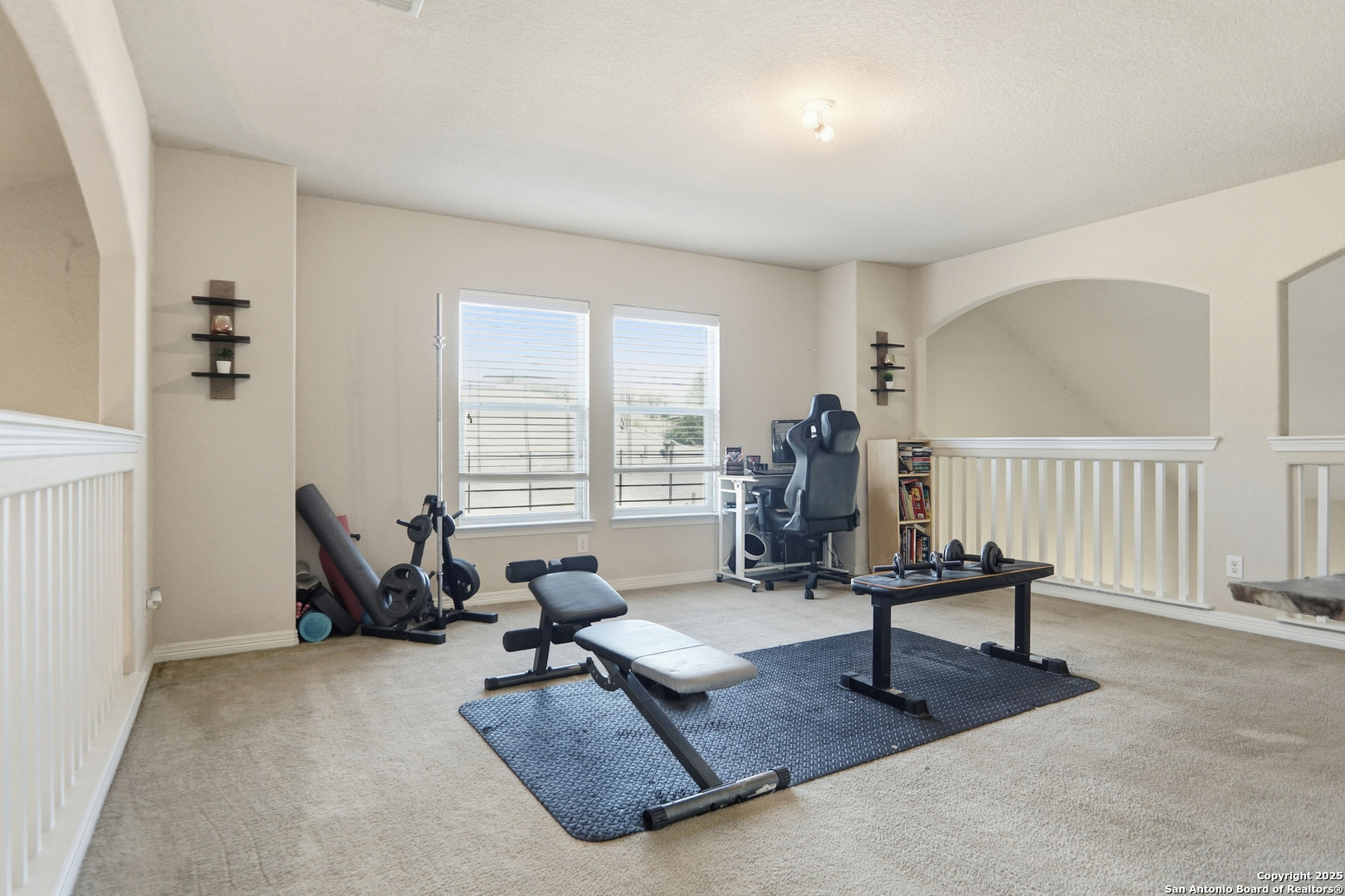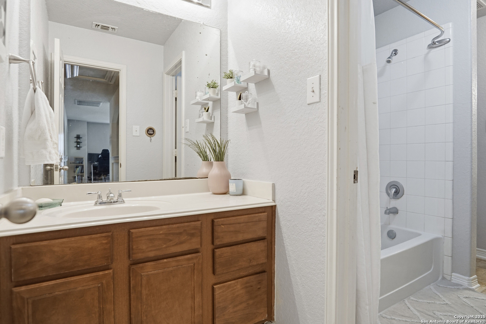 Showings to start 10/22. Welcome to 11935 Curtis Hill, San Antonio, TX 78245 - a spacious family home in the desirable Laura Heights gated community. This beautifully maintained 4-bedroom, 2.5-bath home offers comfort, space, and convenience for growing families. The primary suite is located downstairs, featuring a generous bedroom, large walk-in closet, and a spa-like ensuite with a double vanity, garden soaking tub, and separate shower. The open-concept layout highlights a bright island kitchen with ample counter space that flows seamlessly into the dining and living areas - perfect for family gatherings or entertaining guests. Soaring high ceilings in the great room create an airy, inviting feel, while the upstairs game room/living area overlooks the entry room and great room, offering a great secondary retreat for kids or guests. Outside, you'll find that the location couldn't be better - directly across the street from the community pool and playground, giving your family premier access to neighborhood amenities. The roof is just 3 years old, upgraded with laminated GAF shingles, providing peace of mind for years to come.The back yard is an inviting oasis where you can enjoy your morning cup of coffee or entertain your guest on the covered patio. With a great layout, prime location, and plenty of room to grow, this home in Laura Heights delivers everything today's family is looking for - comfort, convenience, and community.