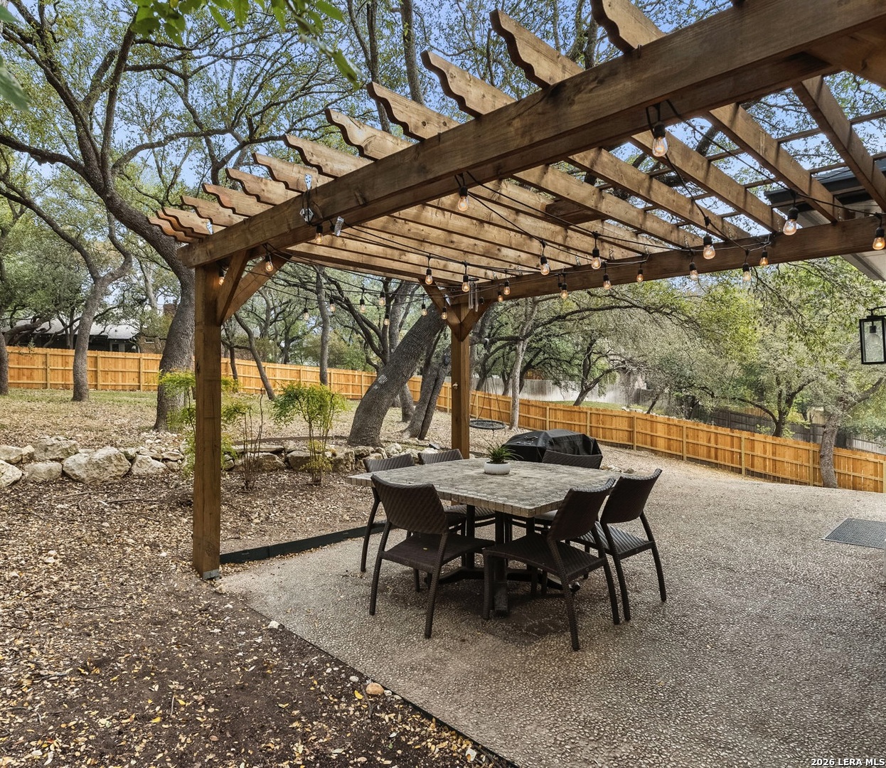 Experience refined living with this exquisitely decorator-designed residence that lives like a true model home in the prestigious, gated Inwood community. Every detail has been thoughtfully curated, from the freshly repainted interior and exterior to the multiple updates throughout along with upgraded modern lighting that elevate the home's sophisticated aesthetic. Soaring ceilings welcome you home with the perfect entertaining and elevated dining spaces along with an expansive balcony to extend the evening, enjoy the Texas sunsets or just quiet reflection after a busy day. At the heart of the home, the gourmet kitchen impresses with quartz countertops, an extended eat-in island, custom tile backsplash, and refreshed cabinetry which seamlessly flows into the cozy family room anchored by a warm, inviting fireplace. . The private primary suite is a luxurious retreat featuring direct balcony access for morning coffee or relaxing in the updated spa-inspired en suite. Additional bathrooms have been tastefully redesigned with upscale cabinetry, fixtures, and finishes. Outdoor living is equally refined, with rebuilt and retiled balconies, and a newly added pergola on nearly half an acre lot filled with mature trees providing exceptional privacy in a serene setting with a "tree-house" feel. This expansive floor plan offers multiple living areas along with a versatile media room, ideal for both intimate relaxation, gaming, or movie nights. This exceptional home offers a rare opportunity for elevated living in one of the area's most sought-after gated communities.