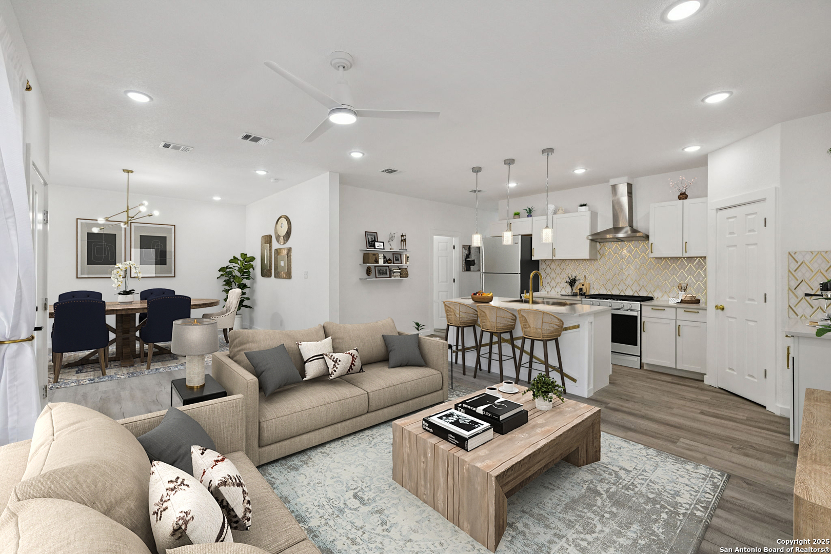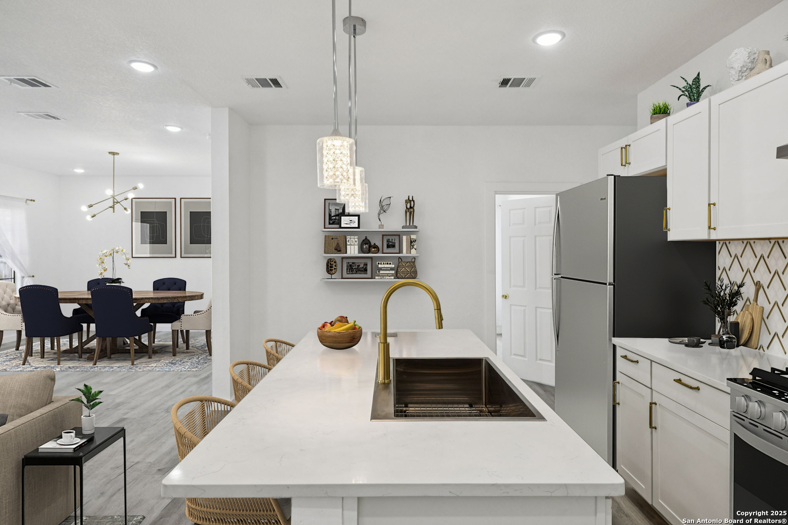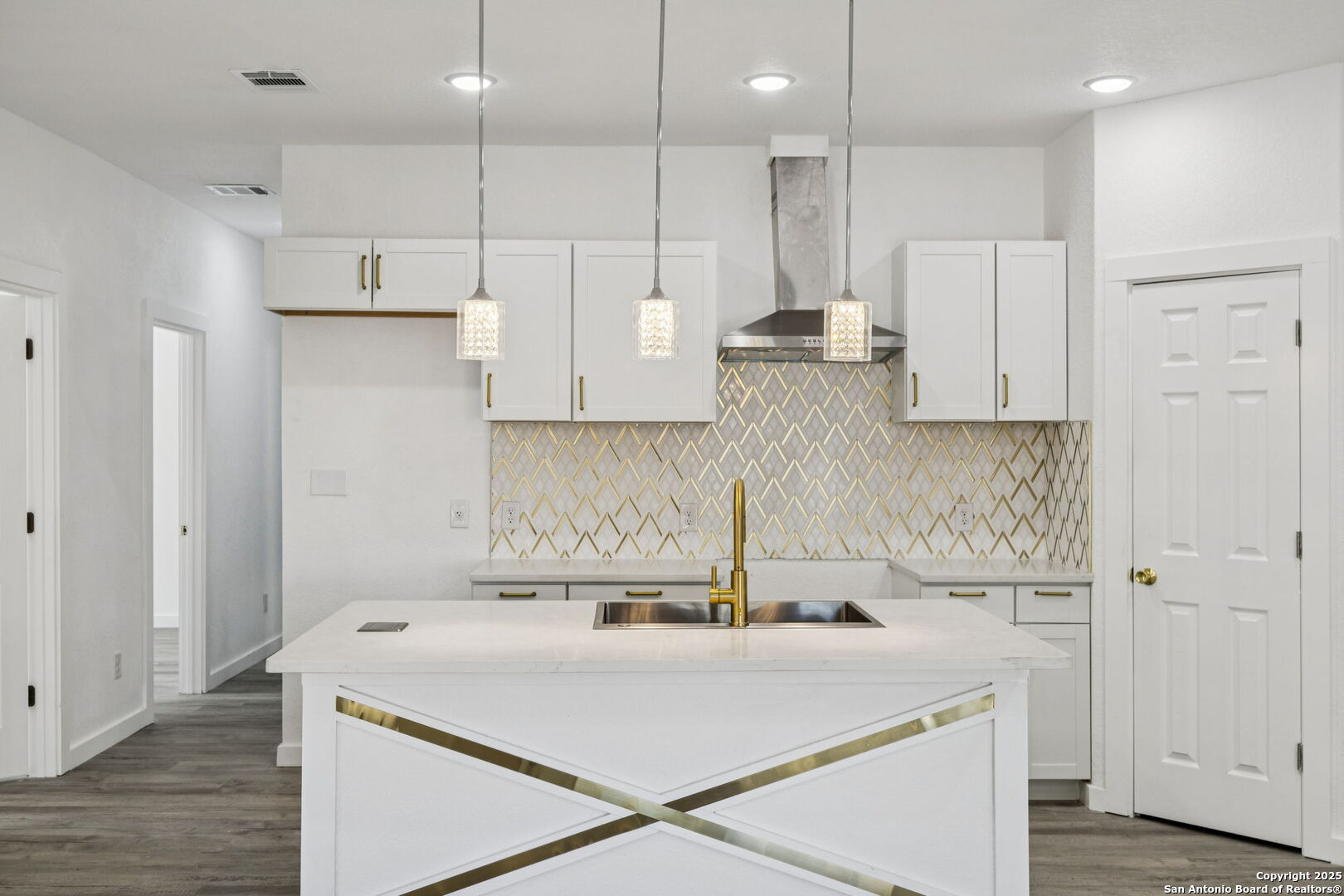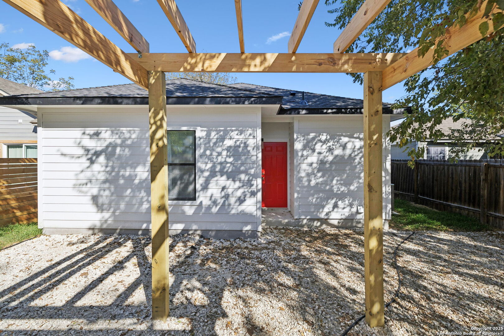 This beautiful BRAND NEW home features 5 bedrooms, 3 bathrooms, and plenty of opportunity! Located minutes from the vibrant heart of downtown San Antonio and the new up-and-coming Sports and Entertainment District, otherwise known as Project Marvel, this home offers great potential and profit with today's market value. Every inch has been refreshed with brand-new finishes, including elegant gold accents that bring a warm, modern touch throughout. The spacious kitchen stands out with its large island-perfect for cooking, gathering, or enjoying casual mornings at home. Step outside to a charming built-in pergola that creates a welcoming outdoor retreat for relaxing or hosting guests. Unlike many properties in its nearby surroundings, this home sits on a concrete slab and has an oversized driveway, making it convenient for extra parking access. If that's not enough, then find comfort in knowing the backyard opens up to be able to drive in your oversized company/work trucks. Its location is truly unmatched, with quick access to major downtown landmarks such as the Henry B. Gonzalez Convention Center, the Alamodome, and countless attractions, dining spots, and entertainment hubs. This home blends convenience, comfort, and a polished modern style right in the center of San Antonio living.