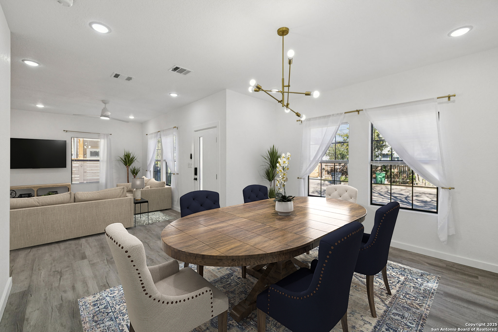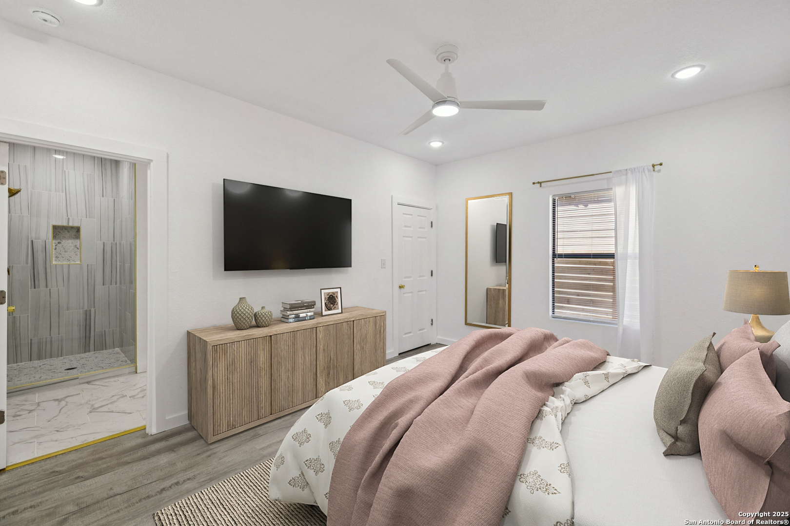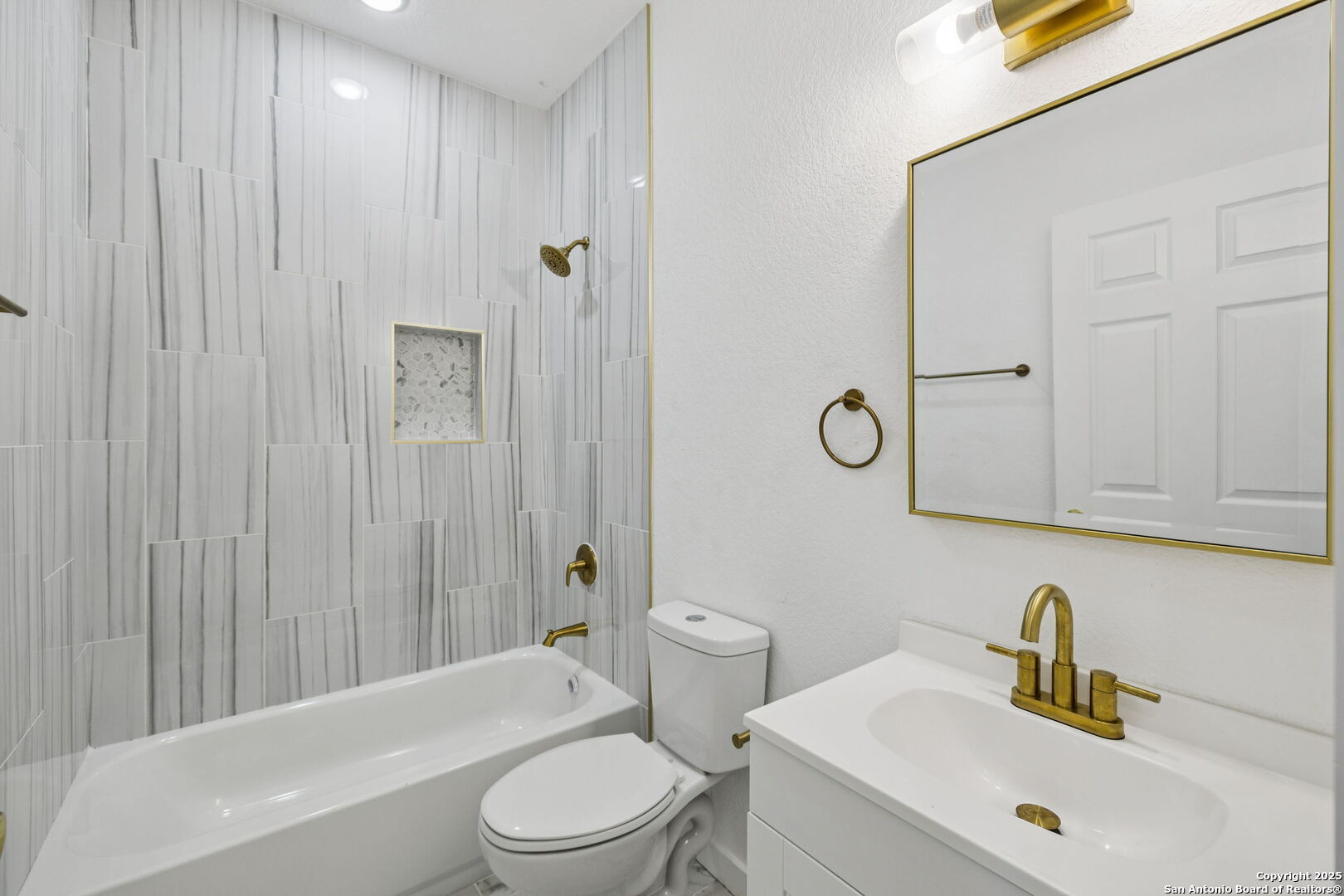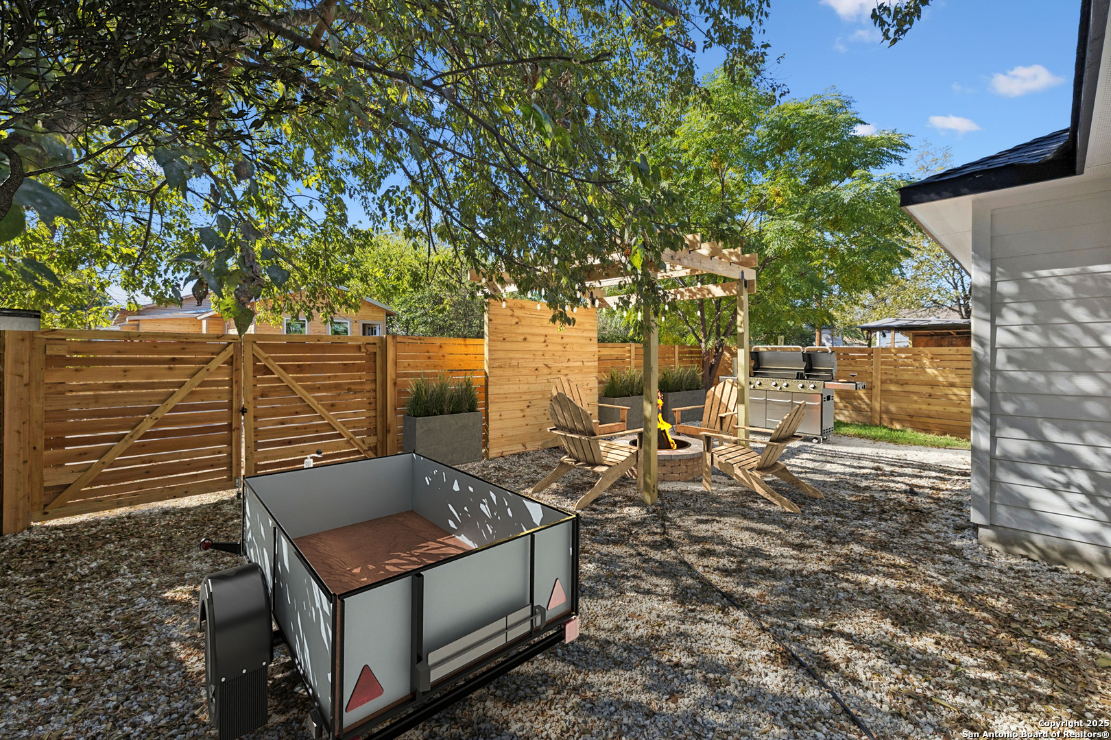 This beautiful BRAND NEW home features 5 bedrooms, 3 bathrooms, and plenty of opportunity! Located minutes from the vibrant heart of downtown San Antonio and the new up-and-coming Sports and Entertainment District, otherwise known as Project Marvel, this home offers great potential and profit with today's market value. Every inch has been refreshed with brand-new finishes, including elegant gold accents that bring a warm, modern touch throughout. The spacious kitchen stands out with its large island-perfect for cooking, gathering, or enjoying casual mornings at home. Step outside to a charming built-in pergola that creates a welcoming outdoor retreat for relaxing or hosting guests. Unlike many properties in its nearby surroundings, this home sits on a concrete slab and has an oversized driveway, making it convenient for extra parking access. If that's not enough, then find comfort in knowing the backyard opens up to be able to drive in your oversized company/work trucks. Its location is truly unmatched, with quick access to major downtown landmarks such as the Henry B. Gonzalez Convention Center, the Alamodome, and countless attractions, dining spots, and entertainment hubs. This home blends convenience, comfort, and a polished modern style right in the center of San Antonio living.
