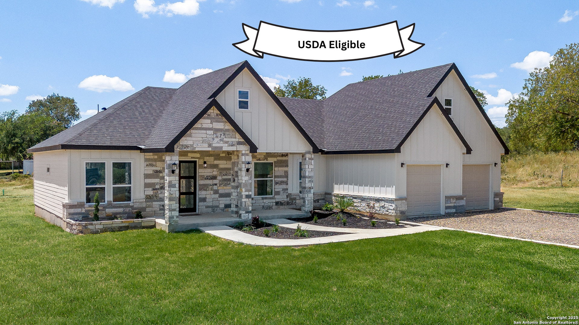 Welcome to your dream home! This beautifully designed home nestled in the quiet Twin Lakes subdivision of Lytle, Texas was built in 2023, this 3-bedroom, 2-bathroom home offers the perfect balance of modern style and country charm on a generous 0.89-acre lot. Enjoy the freedom of zero restrictions and no HOA! Step inside to an open-concept floor plan that features an abundance of natural light, and a spacious living area, perfect for big family gatherings, cozy evenings and entertaining guests. The kitchen is a chef's dream, complete with a large island, plenty of counter space, and stylish finishes. Just off the main living space, you'll find what could be a private study ideal for remote work or quiet reading time. The homes thoughtful layout continues outside with a two-car garage that measures an extra 574 sqft aside of the homes generous living space. The expansive backyard is ready for your personal touch, whether it's a garden, outdoor kitchen, or playground. Situated in Lytle ISD and just a short drive from San Antonio, this home offers the peace of small-town living without sacrificing access to city amenities. Don't miss your chance to own this incredible property that combines comfort, flexibility, and convenience. This property is USDA eligible, offering qualified buyers the advantage of 0 down payment.
