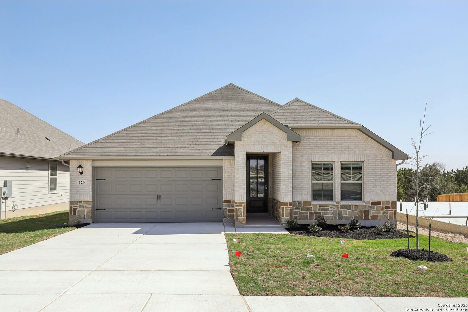 Brand new, energy-efficient home available NOW! Enjoy dinner outside on the Fitzhugh's covered back patio. Indoors, the open concept kitchen flows seamlessly into the living and dining rooms. The versatile flex space makes a great study or game room and storage helps put everything in its place. Starting in the $300s and nestled in Cibolo within Northeast San Antonio, Legendary Trails combines elegant brick and stone elevations with the charm of a peaceful, rural setting. This community offers quick access to I-35 and Loop 1604, with The Forum Shopping Center just minutes away. Residents will also benefit from being part of the highly rated Schertz-Cibolo-Universal City ISD schools, making this community a perfect place. Each of our homes is built with innovative, energy-efficient features designed to help you enjoy more savings, better health, real comfort and peace of mind.