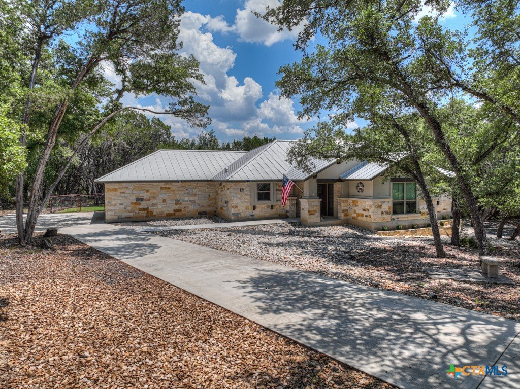 PRICED TO SELL!!! Best value in Ensenada Shores!! This exquisite 3-bedroom, 2.5-bathroom, Single story, custom home is nestled amongst the trees on a sprawling 1.38-acre lot in a lakeside gated community. The home is perfectly positioned at the end of a cul-de-sac on a quiet street, offering peace and privacy. Enjoy ease of maintenance with some xeriscaping and a sturdy metal roof. Inside, you'll be captivated by the elegant quartz countertops throughout the home and the open, split floor plan that seamlessly integrates the living spaces. The easy-to-maintain stained concrete floors add a touch of modern style and durability, making this home both beautiful and practical. Relax on the back deck under the comfortable shade of an automatic retractable awning in the fenced in back yard. The property extends well past the fenced yard providing additional space for a casita or workshop behind the home! This property is the perfect blend of luxury and nature, providing a tranquil retreat with all the amenities you could desire. Enjoy exclusive access to a private lake park, a serene fishing pond, a community pool, walking trails, and more withing this gated community. All of this conveniently located on the Southern shore of Canyon Lake, just a few minutes of several boat ramps, Cranesmill Marina, great restaurants, and all that this beautiful area of the Texas Hill Country has to offer. Welcome home to Canyon Lake!