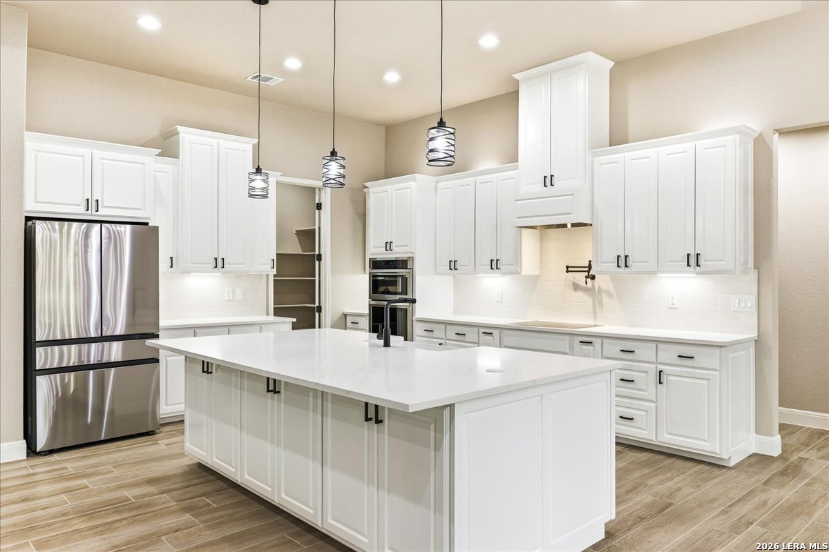 *Brand New & Move in Ready* in The Gated Entry "Timbers Subd" off FM 775 on a Cul-De-Sac Road...That has No City Taxes & Low 1.7% Tax Rate in Wilson County & The Sought After La Vernia ISD...A Nearly 2800sf Ranch Style Hm w/Very Open Floorplan & LOTS's of EXTRA's on a Mostly Privacy Fenced backyard & Very Clean 1.1 Acre lot w/Sprinkler System and No Immediate Backyard Neighbors...PLUS.. An Approx 800sf Finished Out & Air Conditioned Workshop/Possible 2nd Living Area/Det Garage w/Bathroom,Storage Rm & Epoxied Flooring....HM has Lots of Oversized Windows for Natural Lighting....4-BD's (Split bd plan) & 3-Bathrooms (4th BA is in the Det Shop) AND Approx 660sf Finished Out Side Entry Gar w/Epoxied Flooring & Keyless Pad Entry.....HM has Plank Style Ceramic Flooring Thru Out (No Carpet) Lots of Ceiling fans & Recessed Lighting,Crown Molding,Raised Decorative Ceilings,8' Tall Doors,Custom Cabinets w/Hardware,Window Coverings,Upgraded Lighting & Fixtures,Low E tilt in Dbl Paine Windows,Radiant Barrier Roof Decking,Continous Soffitt Vents w/ LED Lighting *PLUS* A Nearly 500sf Covered Backyard Patio w/Tiled Flooring,Beaded Board Ceiling,Corner Fireplace & Sidewalk that leads out to the Workshop & Rocked Firepit that has Paved Flooring & 3 Swing Seats....Spacious Kit w/Huge Approx 12x6 Pantry,Blt-In SS Appliances,Pot-Filler,LG Peninsula Island/B'Fast Bar & Pendant lighting....ALL the Bd's have Walk In Closets..4th BD has It's Own Bathroom & Walk in Closet (Possible in-law/teenager suite)..GVEC Elect Co & Internet or Spectrum Internet is available ....Blt by Local Builder that Lives in the Subd...A MUST SEE SET-UP !!!