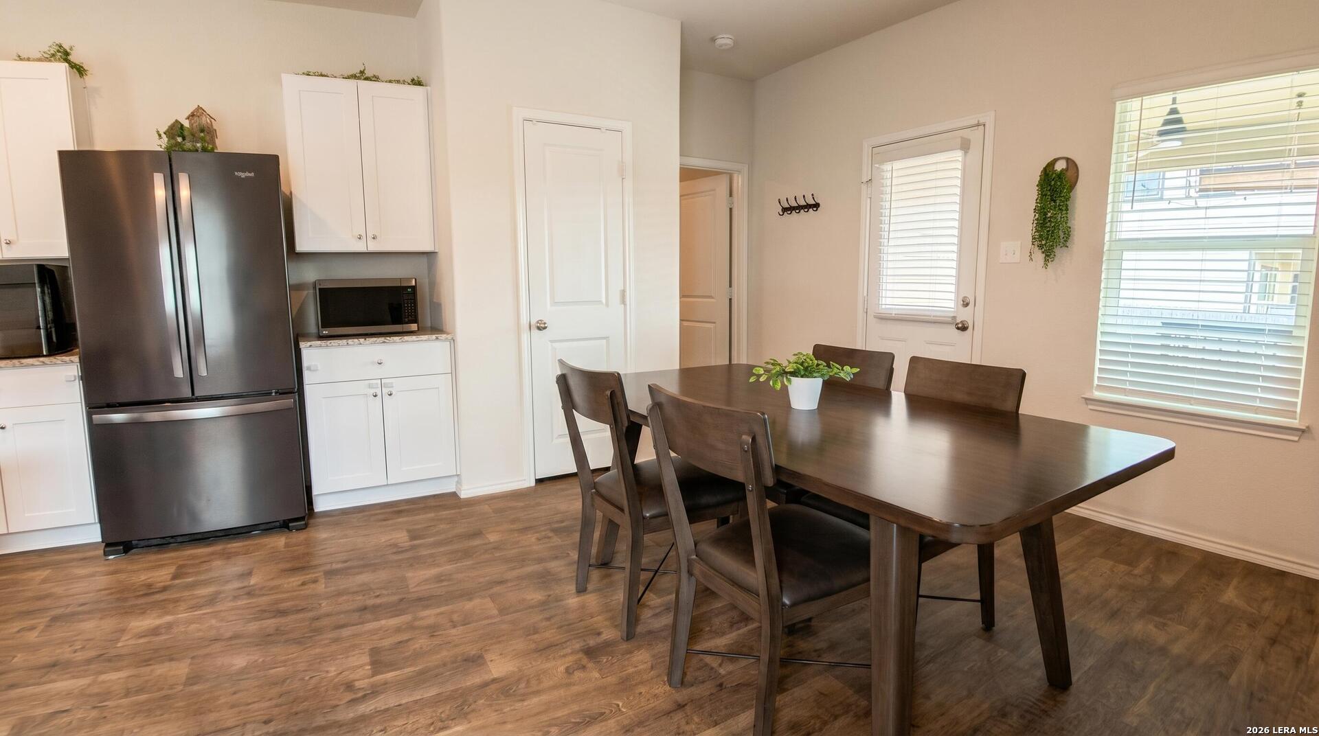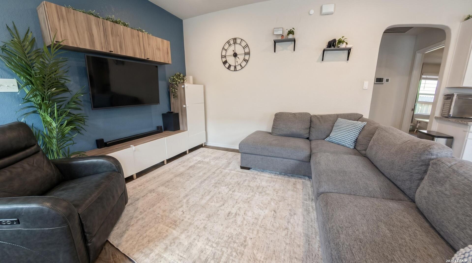 This single-story 3-bed, 2-bath in Stoney Creek stands apart with a full appliance package - refrigerator, washer, dryer, microwave, and living room entertainment stand all convey - plus a fully finished covered patio with ceiling fan and sunshades already installed. The home has been kept smoke- and pet-free since its 2022 build, with comprehensive automated home technology controlling locks, garage, thermostats, video doorbell, and connected exterior lights from your phone. An interactive virtual tour is linked under the features and property details tab. Inside, the open layout connects the kitchen, living, and dining areas naturally. The primary bedroom includes a spacious walk-in closet and its own bathroom with a walk-in shower and private toilet room. Two additional bedrooms share a full second bathroom. The 1,396-square-foot floor plan includes a 2-car garage, full landscaping, and an irrigation system that handles the yard year-round. Stoney Creek residents enjoy a neighborhood pool and playground, with Costco 5 minutes away, SeaWorld under 10, and Lackland AFB within 15.