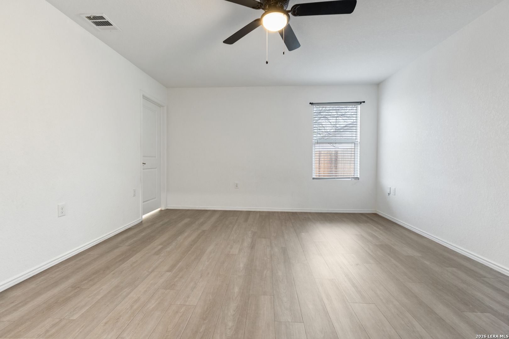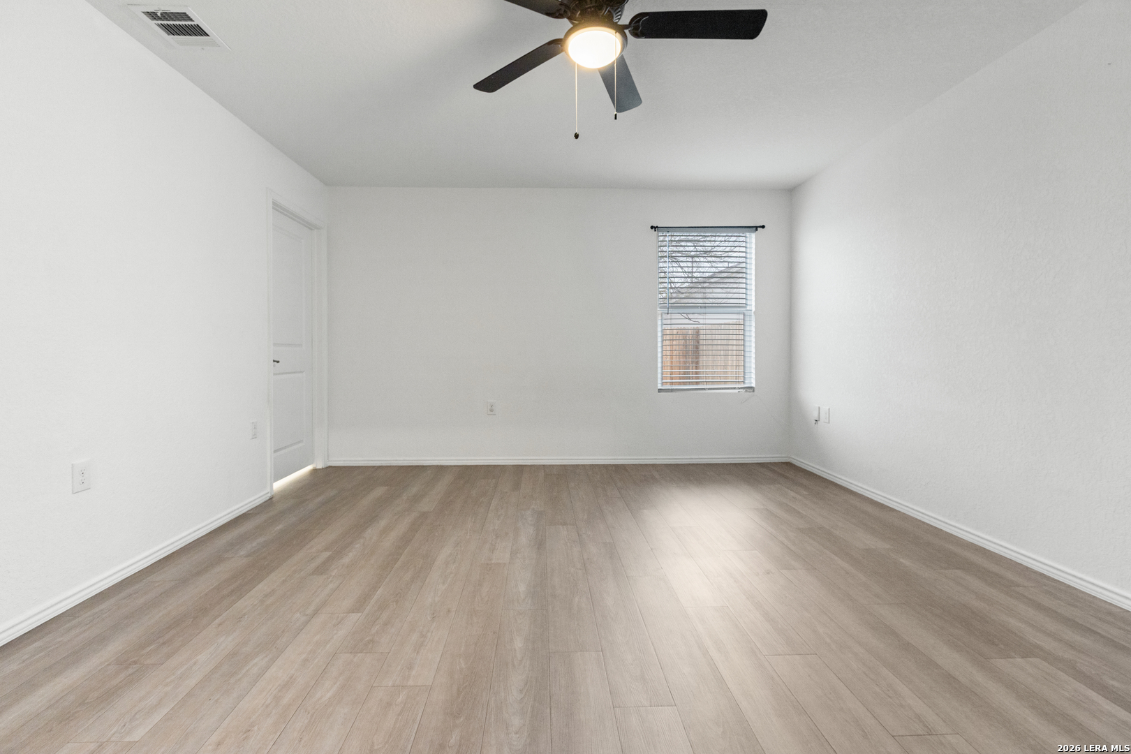 Welcome to this well-maintained single-story 3-bedroom, 2-bath home located in a desirable golf course community on the south side of San Antonio. This home offers a functional and inviting layout with all bedrooms on one level, featuring a spacious living area filled with natural light and a kitchen that flows easily into the main living and dining spaces. The primary suite includes a private en-suite bath and ample closet space, while the secondary bedrooms are well-sized and flexible for guests, a home office, or additional living needs. Enjoy outdoor living in the fully fenced backyard, perfect for relaxing, entertaining, or pets. Conveniently located near major highways, shopping, dining, downtown San Antonio, this move-in-ready home offers comfort, privacy, and a peaceful community setting.