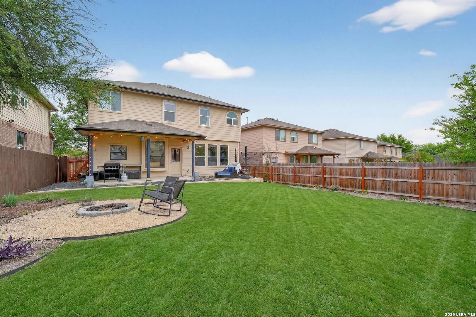 Welcome to this beautifully maintained 3-bedroom, 2.5-bathroom home featuring a spacious layout designed for both comfort and entertaining! The kitchen offers ample cabinet and counter space, making it perfect for cooking, hosting, and everyday living. In addition to the main living areas, the home features a formal dining room that can easily be used as a home office or flex space to fit your needs. Upstairs, you'll find a versatile game room, ideal for movie nights, a play area, or a second living space. With three generously sized bedrooms and two full bathrooms upstairs, there's room for everyone. Step outside to a beautiful outdoor area, featuring a covered patio, and cozy fire pit perfect for relaxing, unwinding, and enjoying the evenings. This home also includes valuable upgrades such as a water softener, full gutters, and a newer roof that's only 3 years old, providing added peace of mind. You will also love to spend time at the Amenity Center that features a sparkling pool, a basketball court, and a fun playground. Move-in ready and full of potential, this home is ready to fit your lifestyle!