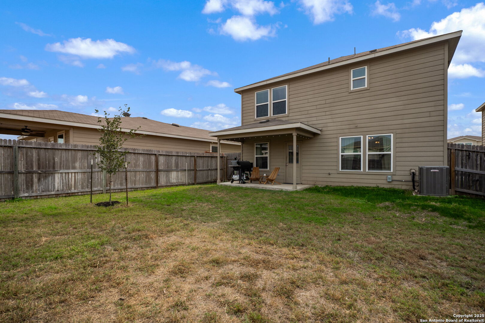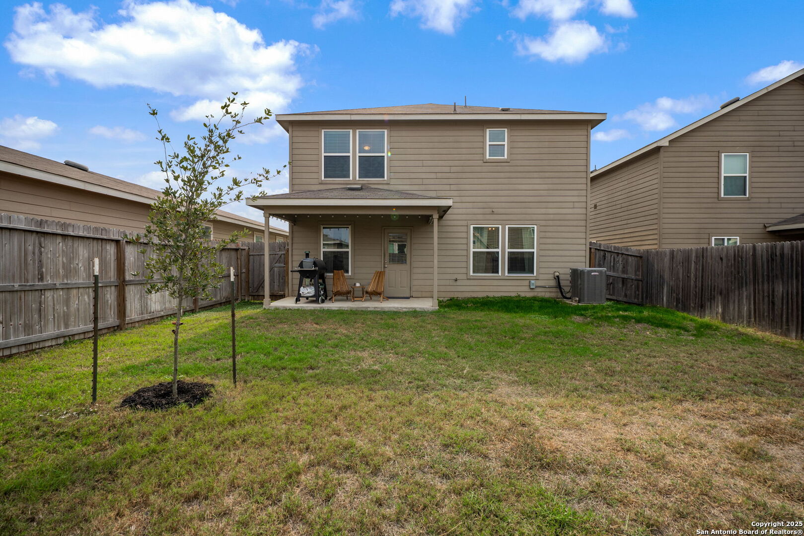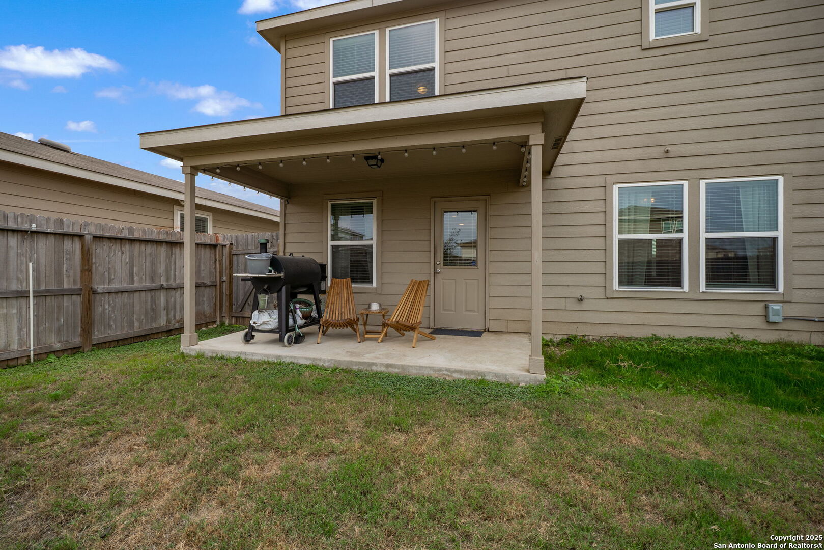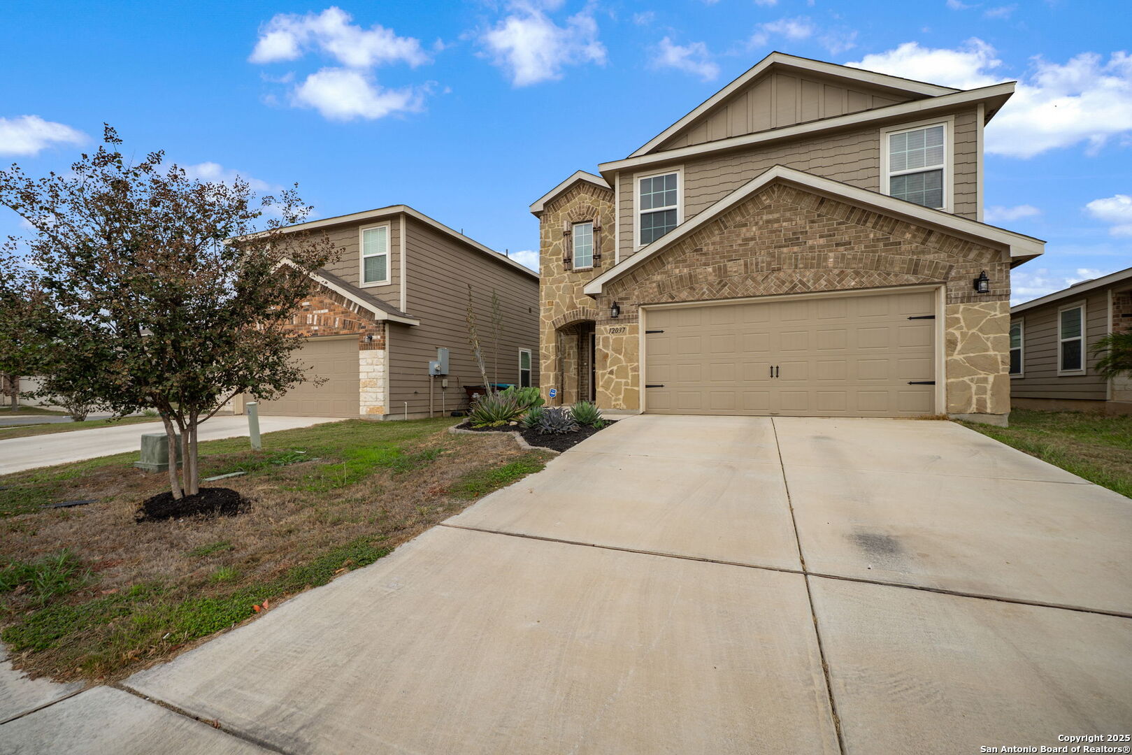 Welcome to your new home in the highly sought-after Silver Canyon subdivision! Step into a bright two-story foyer that opens to a spacious, flowing layout designed for both comfort and entertaining. The large family room seamlessly connects to the kitchen and dining area, creating the perfect setting for gatherings or relaxing evenings. The kitchen shines with granite countertops, a ceramic tile backsplash, and stainless steel appliances, all complimented by beautiful luxury vinyl plank flooring throughout the first floor. Upstairs, a versatile loft offers endless possibilities-home office, media room, play area, or whatever suits your lifestyle. All bedrooms are generously sized, and the primary suite features a double vanity and a spacious walk-in closet. Step outside to a welcoming backyard complete with a covered patio, an outdoor fireplace for cool Texas nights, and a storage shed for added convenience. The yard is ready for your personal touch, whether you envision a garden, play area, or custom outdoor living space. Water softener conveys. Ideally located just outside Loop 1604, you're minutes from UTSA, La Cantera, Hwy 16, and Hwy 211-offering quick access to shopping, dining, and major employers. Schedule to see it today!