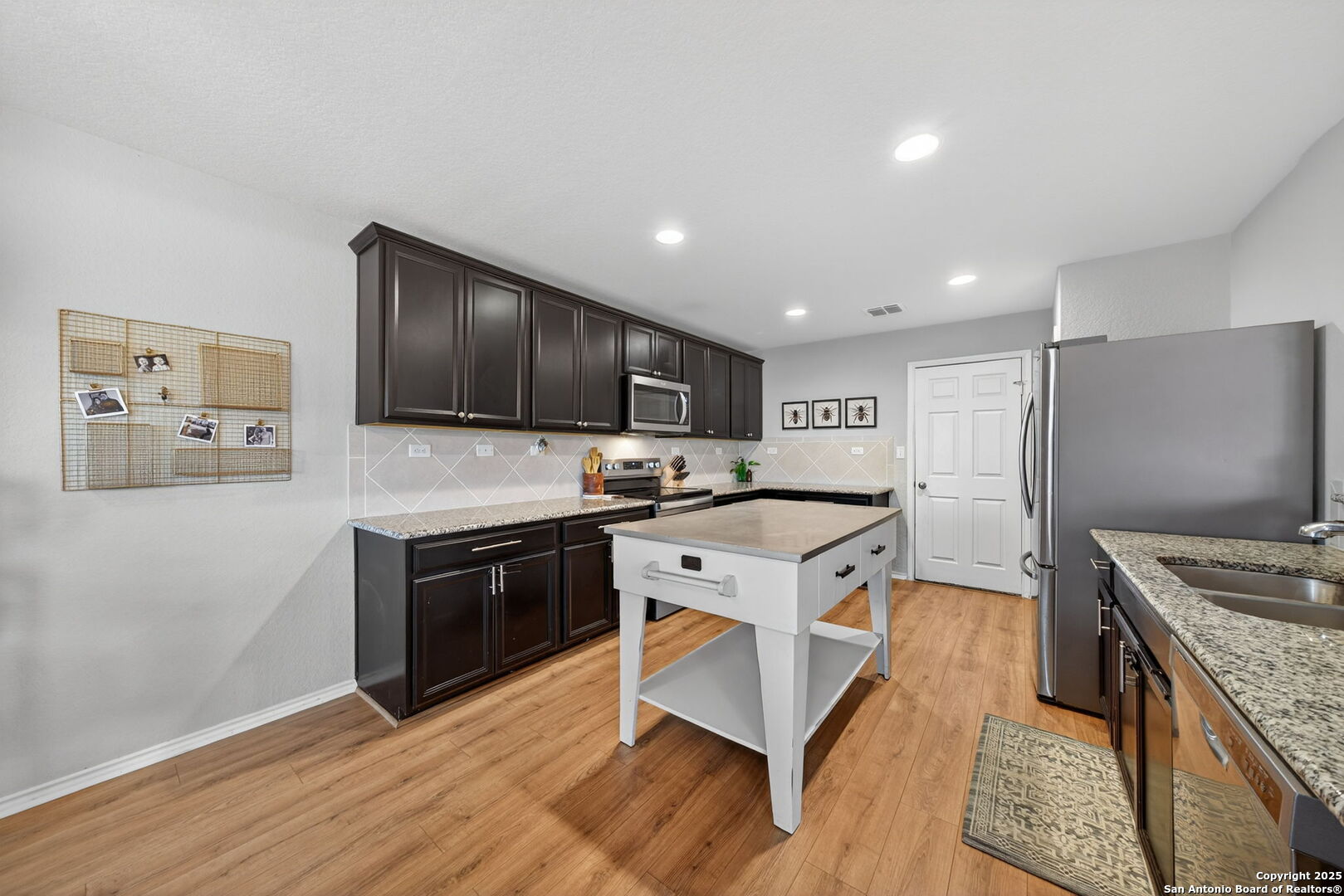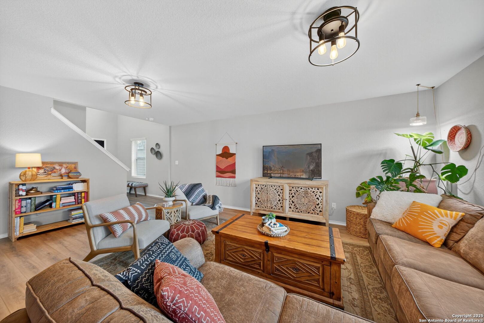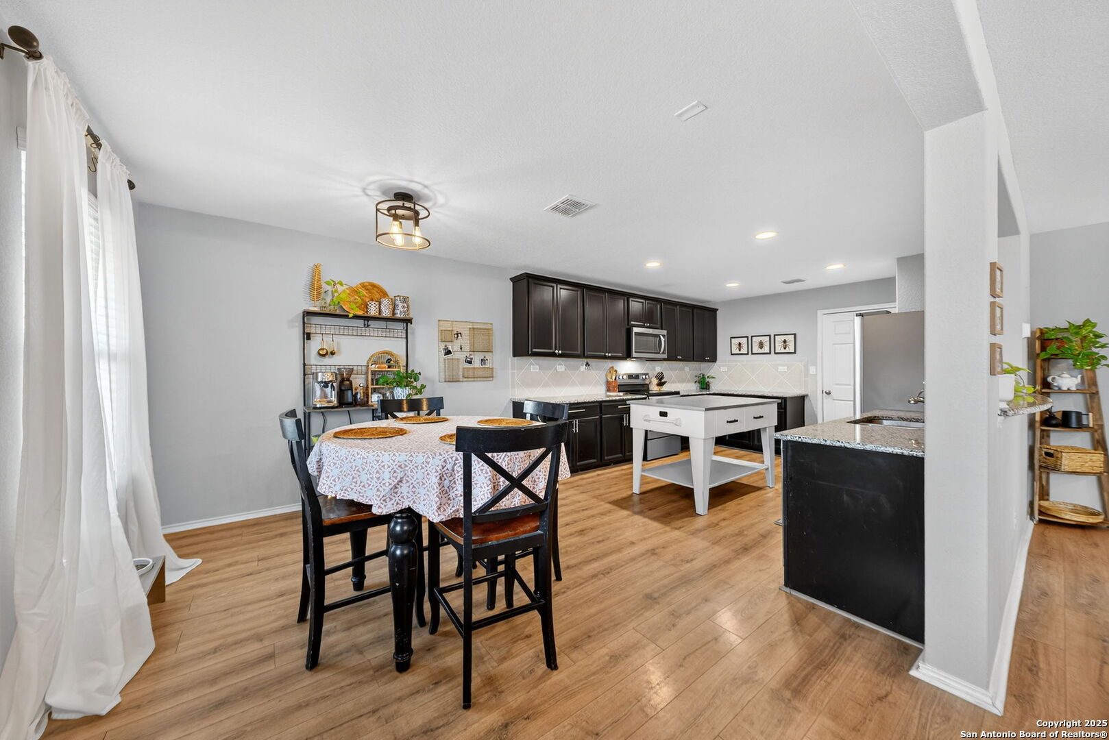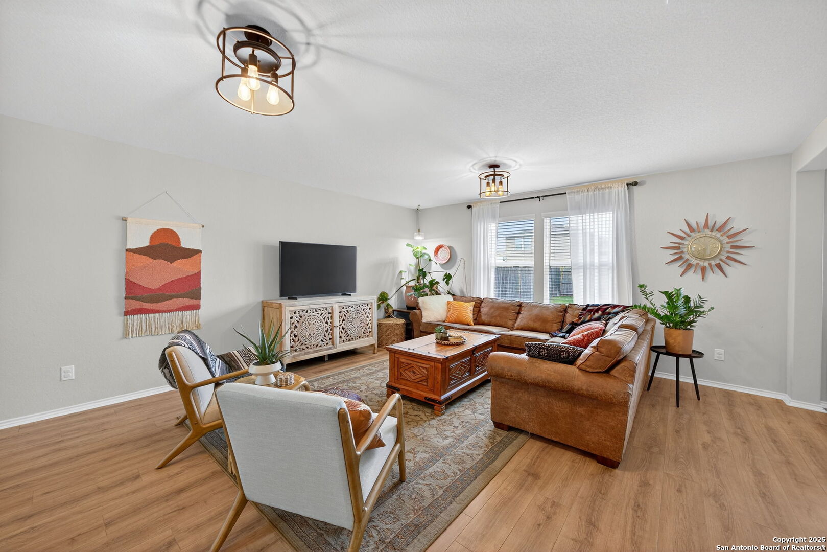 Welcome to your new home in the highly sought-after Silver Canyon subdivision! Step into a bright two-story foyer that opens to a spacious, flowing layout designed for both comfort and entertaining. The large family room seamlessly connects to the kitchen and dining area, creating the perfect setting for gatherings or relaxing evenings. The kitchen shines with granite countertops, a ceramic tile backsplash, and stainless steel appliances, all complimented by beautiful luxury vinyl plank flooring throughout the first floor. Upstairs, a versatile loft offers endless possibilities-home office, media room, play area, or whatever suits your lifestyle. All bedrooms are generously sized, and the primary suite features a double vanity and a spacious walk-in closet. Step outside to a welcoming backyard complete with a covered patio, an outdoor fireplace for cool Texas nights, and a storage shed for added convenience. The yard is ready for your personal touch, whether you envision a garden, play area, or custom outdoor living space. Water softener conveys. Ideally located just outside Loop 1604, you're minutes from UTSA, La Cantera, Hwy 16, and Hwy 211-offering quick access to shopping, dining, and major employers. Schedule to see it today!