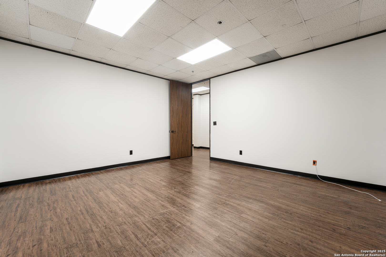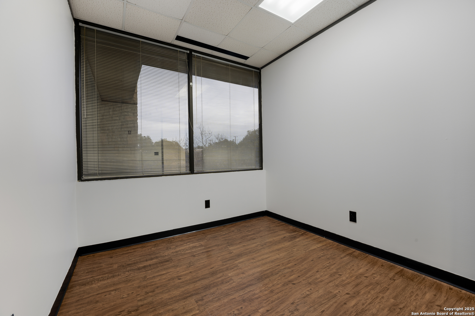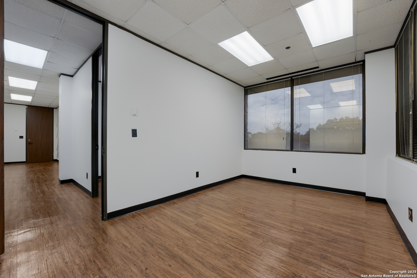 This second-floor suite is 1,128 square feet, offering five office spaces with laminate flooring. It is a full-service, no-triple-net-charge office building across from Churchill High School. The building has an on-site manager's office, public restrooms, weekend and after-hours access, nightly housekeeping Monday through Friday, covered parking available for a fee, and two elevators.