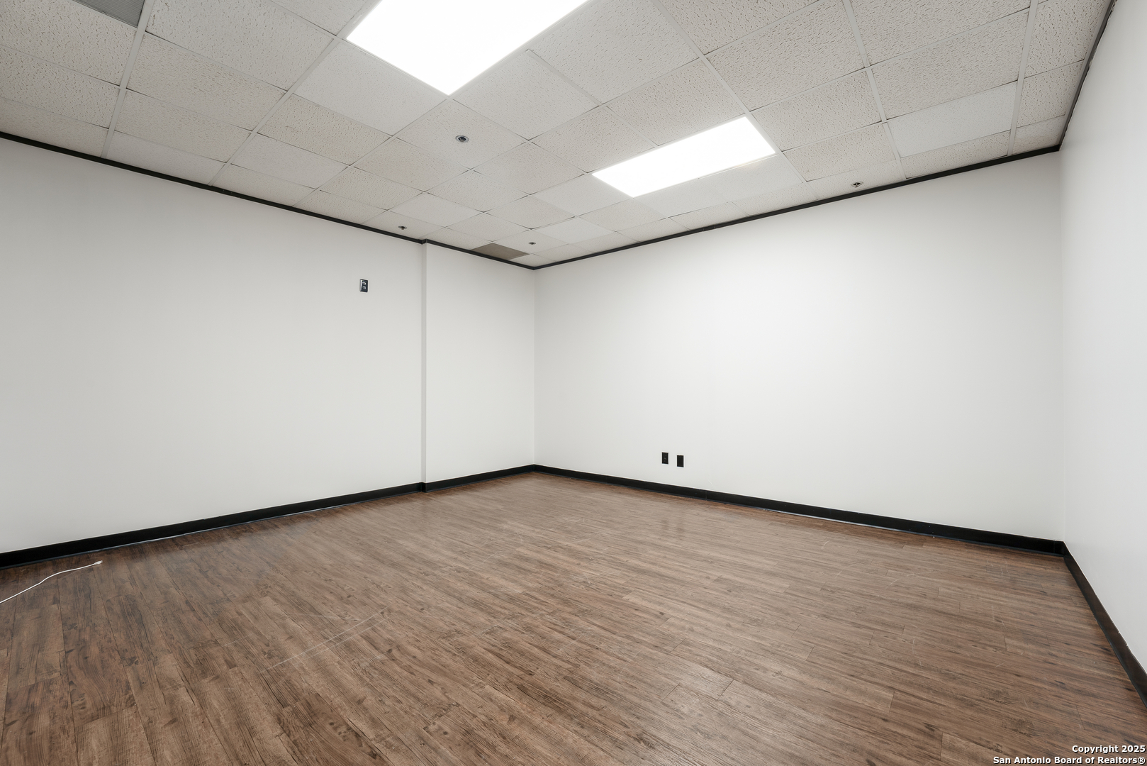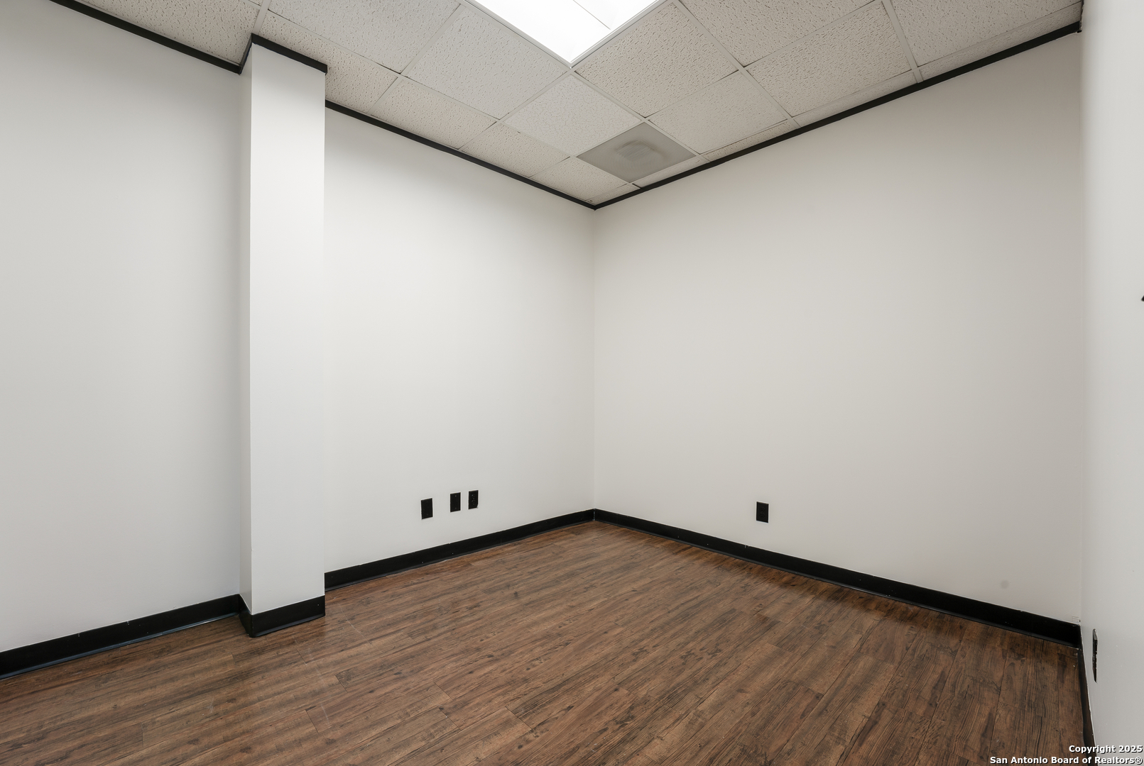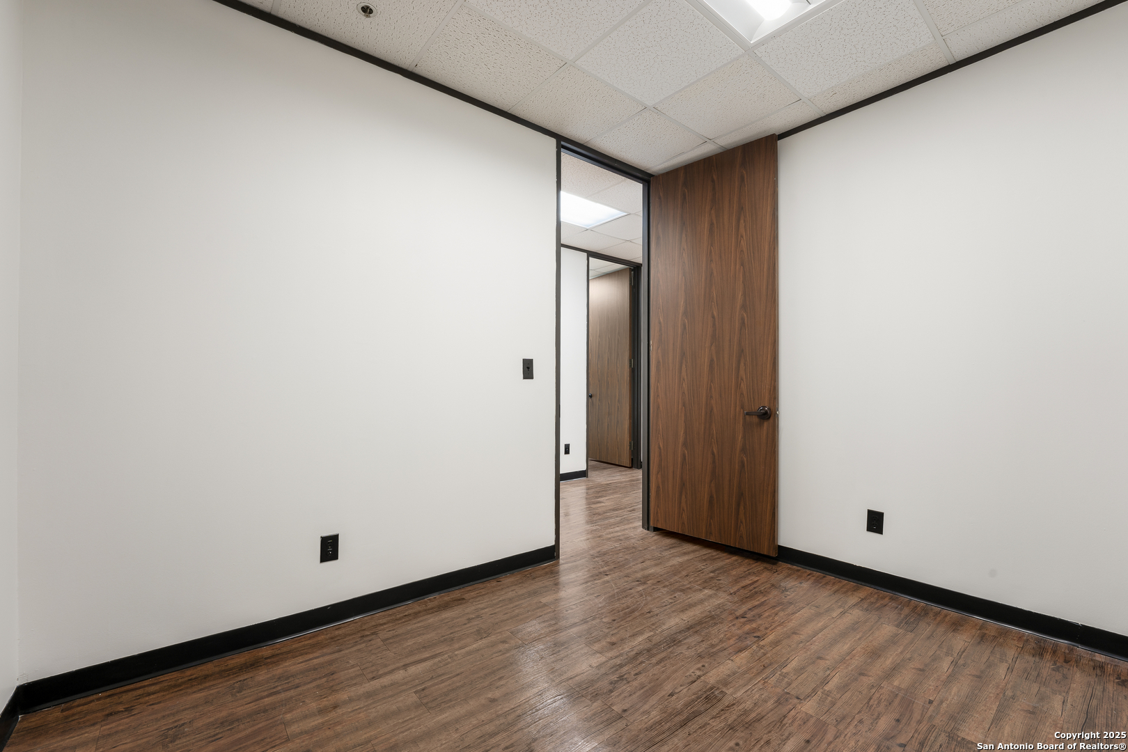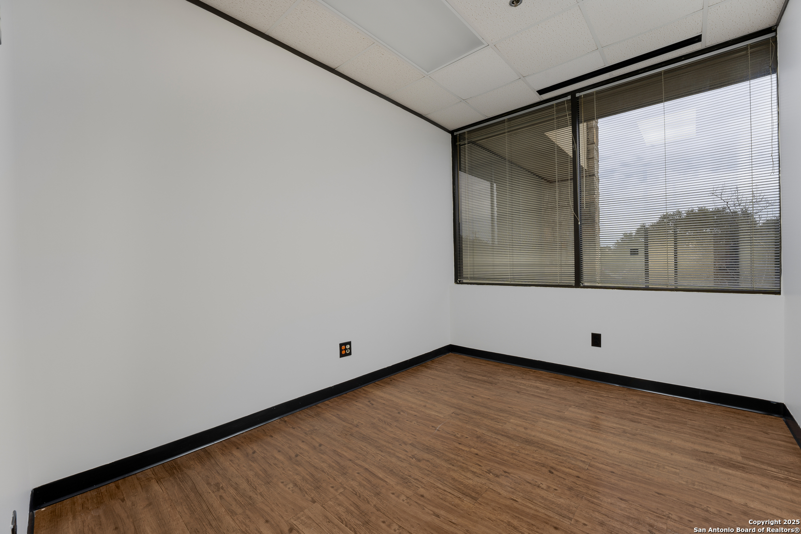 This second-floor suite is 1,128 square feet, offering five office spaces with laminate flooring. It is a full-service, no-triple-net-charge office building across from Churchill High School. The building has an on-site manager's office, public restrooms, weekend and after-hours access, nightly housekeeping Monday through Friday, covered parking available for a fee, and two elevators.