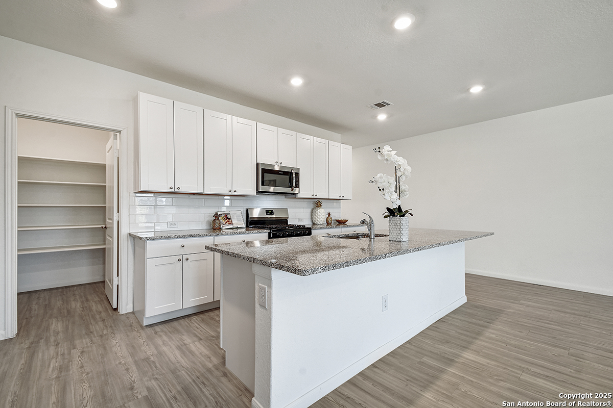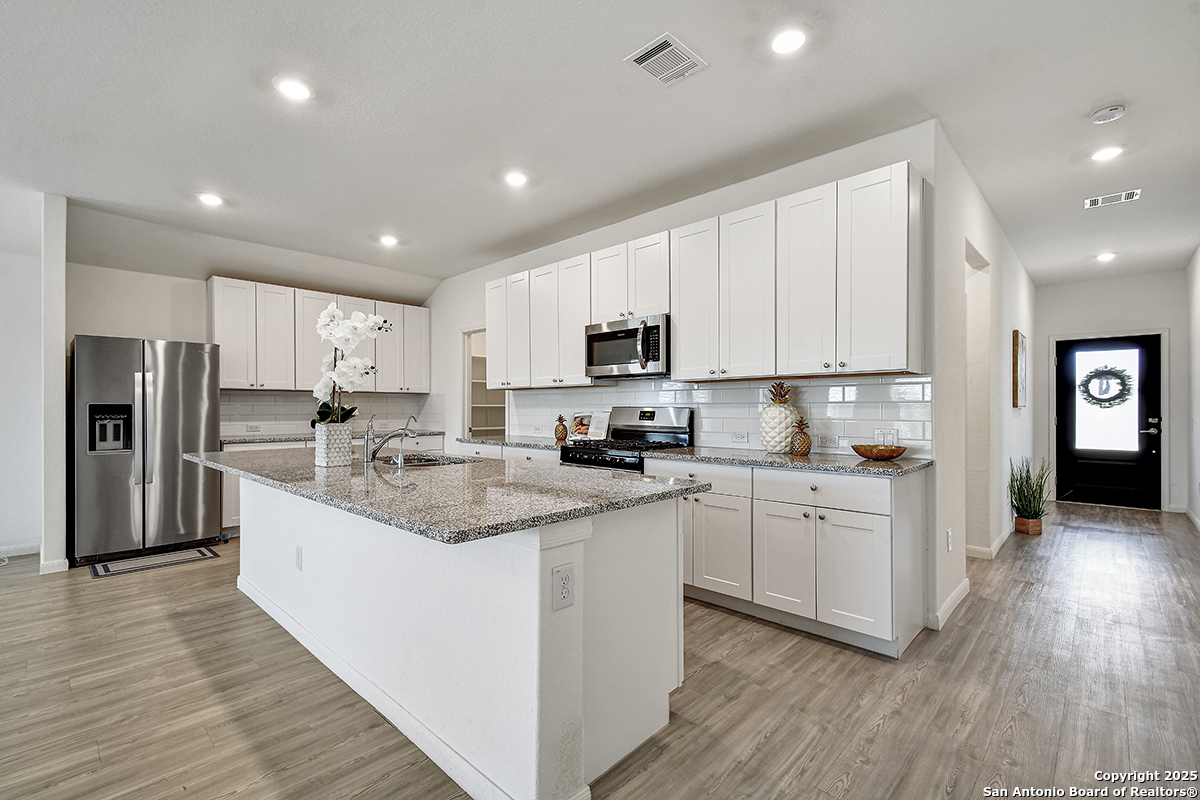 Assumable 4.75% loan. Welcome to your dream home! This barely lived-in, beautiful one-story home offers a perfect blend of comfort, style, and serenity. Backing up to a peaceful greenbelt, you'll enjoy added privacy. Inside, the open-concept layout features modern finishes, abundant natural light, and a spacious kitchen ideal for entertaining. Community has top-notch amenities including a golf course, playground, and swimming pool, this home truly has it all. Move-in ready and meticulously maintained. This home is a must see.