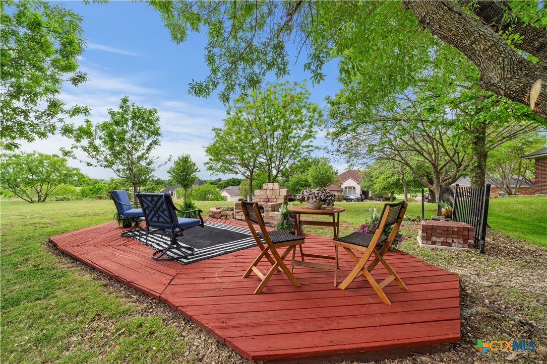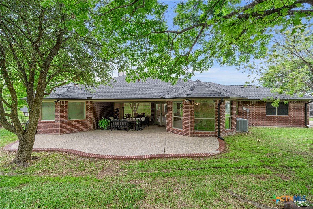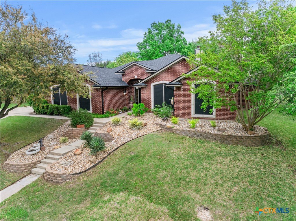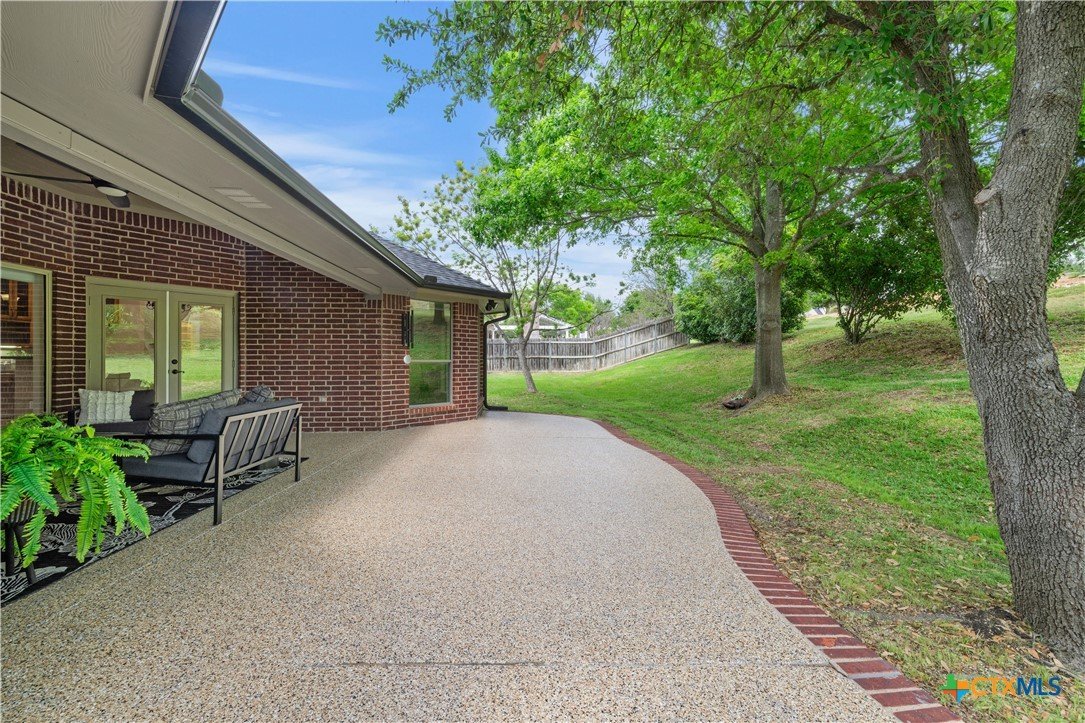 4-bedroom, 2.5-bath home on 2 lots totaling 0.54 acres in Temple, TX. Open floor plan with double-sided fireplace and updated flooring (LVP 2024). Kitchen features granite and quartz countertops, KitchenAid double ovens, downdraft cooktop, dishwasher, and walk-in pantry with additional storage. Spacious primary suite with two walk-in closets, jetted tub, and updated tile shower. Interior and exterior paint recently updated. New roof and gutters (2025). Water heater approx. 5 years old. Outdoor features include epoxy-coated patio, deck, fire pit, mature trees (oak, pecan, pistachio), and sunset views. Extra-large driveway, 2-car garage plus golf cart garage. No neighbors directly beside the home, offering added privacy. Centrally located with a quiet, open feel.