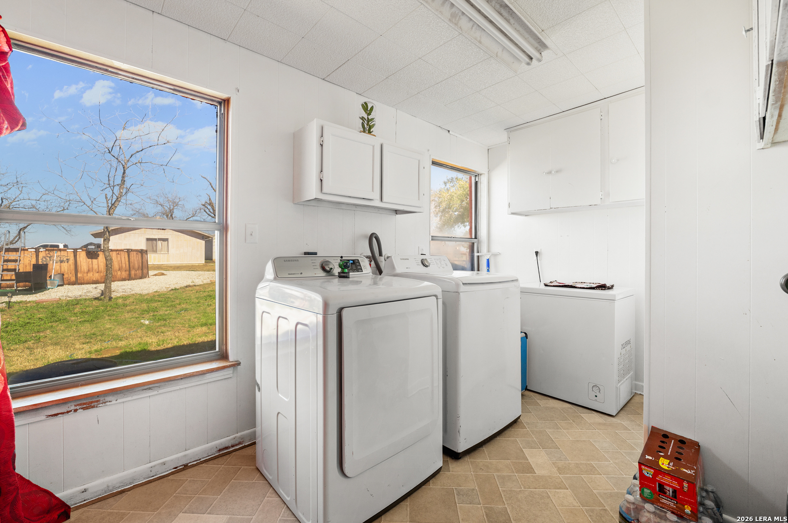 Nestled in the Hill Country charm of St. Hedwig, this unique one-story mid-century 4-sided brick home sits on approximately 3 acres, offering space, character, and versatility. The main residence is serviced by city water, while the detached quarters operate on a windmill-powered electric pump system, adding a touch of country living. Inside, you will find one comfortable living area, a kitchen with abundant cabinetry, breakfast bar seating, and a separate dining space perfect for gatherings. A dedicated utility room provides flexible space that can easily be transformed into a home office, workout area, or custom-use room to fit your lifestyle. Step outside to enjoy mature pecan and oak trees, a covered backyard patio, and an above-ground pool ideal for relaxing or entertaining. The property also includes a detached garage with plumbing and electric, plus a two-car carport. A separate 1-bedroom, 1-bath detached dwelling offers flexibility for guests, workspace, or additional living quarters, all while enjoying the peaceful Hill Country lifestyle just minutes from San Antonio. Schedule your showing today!