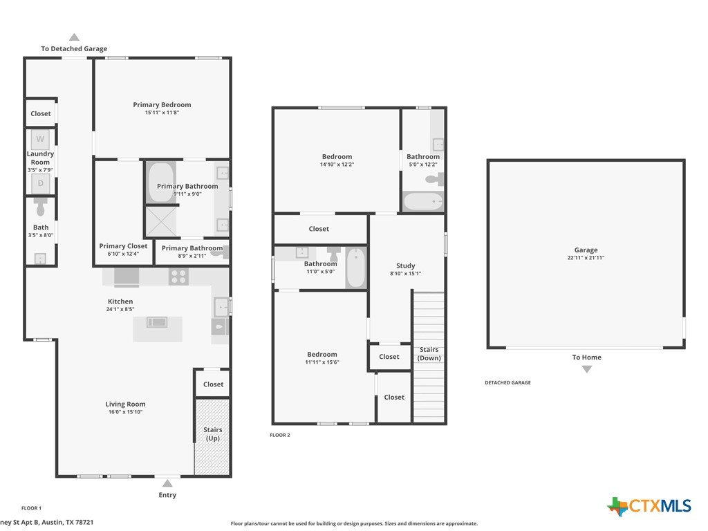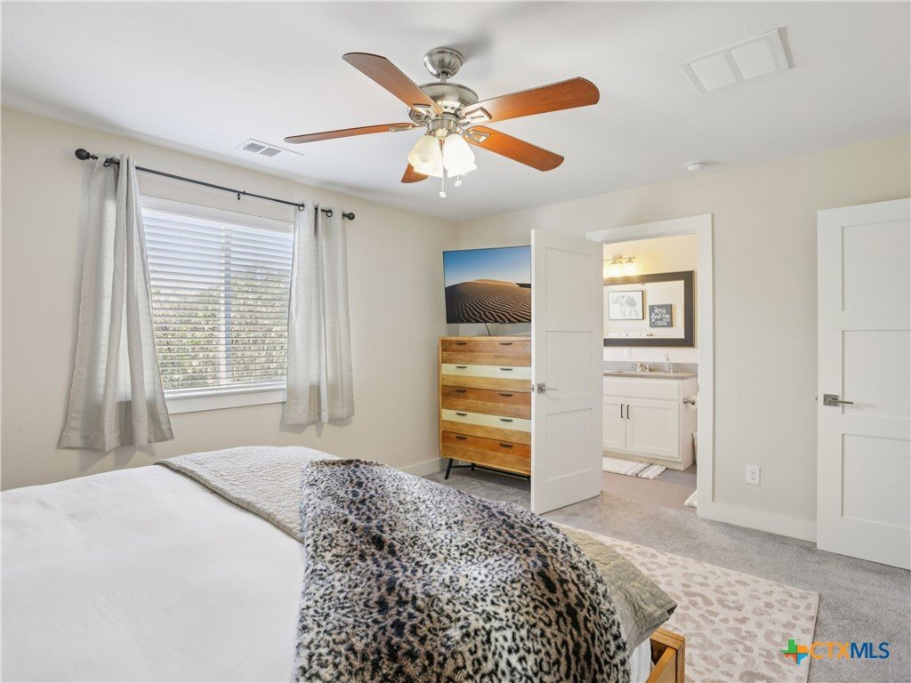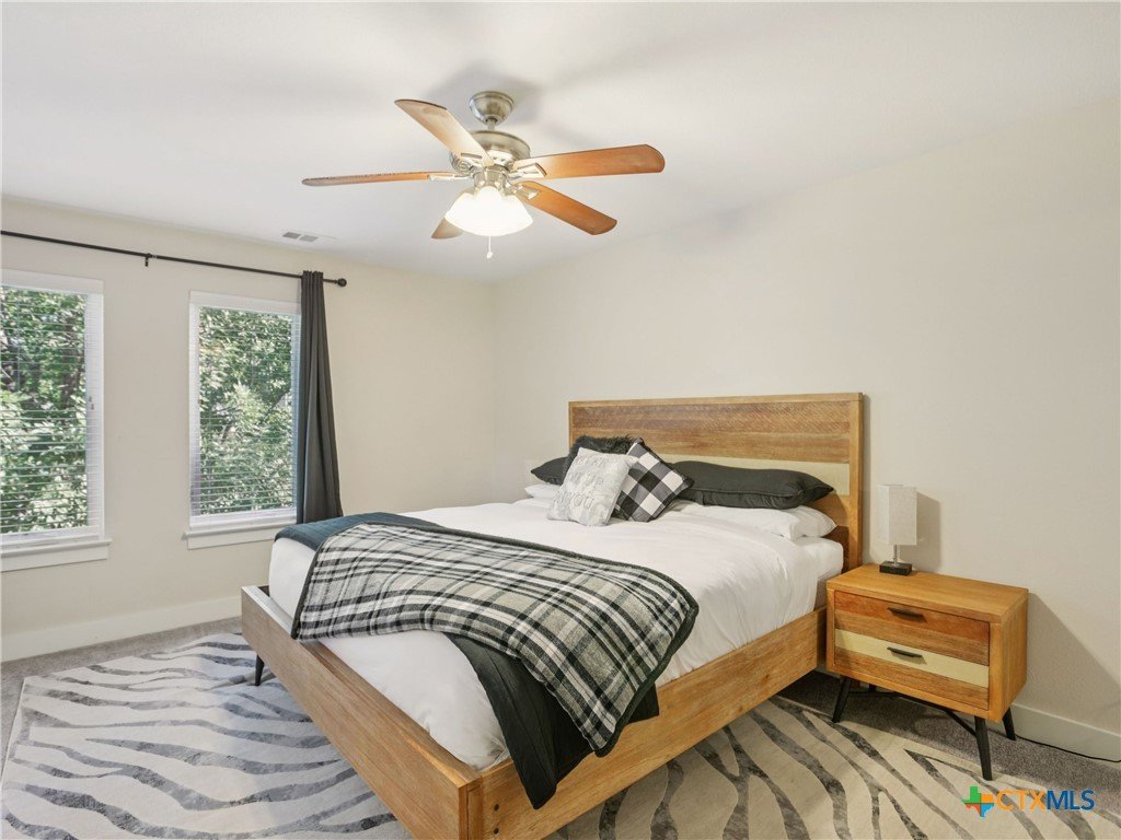 Stylish two-story townhome in East Austin backing to a serene greenbelt, just minutes from downtown. This beautifully maintained residence offers 3 spacious bedrooms, each with its own private en-suite bathroom, plus a convenient half bath and laundry room on the main level. The open-concept floor plan features tile flooring throughout the living areas, ample storage, and a bright upstairs landing ideal for a flex space, home office, or reading nook. Outdoor living shines with a large covered backyard patio and private fenced yard tucked behind a detached two-car garage, overlooking mature trees and peaceful greenbelt views-perfect for morning coffee or evening entertaining. An electric gate, extended driveway, and oversized parking pad enhance privacy and functionality. Located just 1 mile from Boggy Creek Trail and 2.5 miles from H-E-B and Whole Foods, this home delivers the ideal blend of urban convenience, natural surroundings, and easy city access.