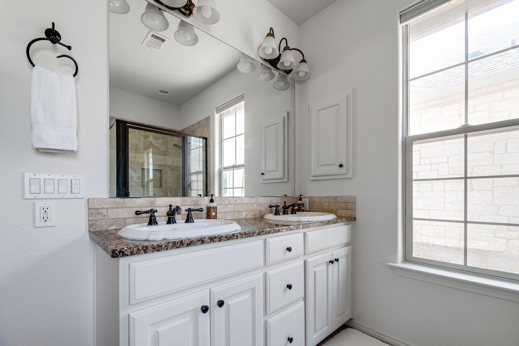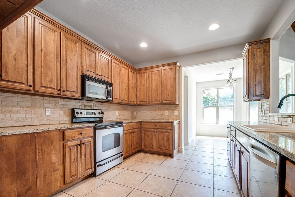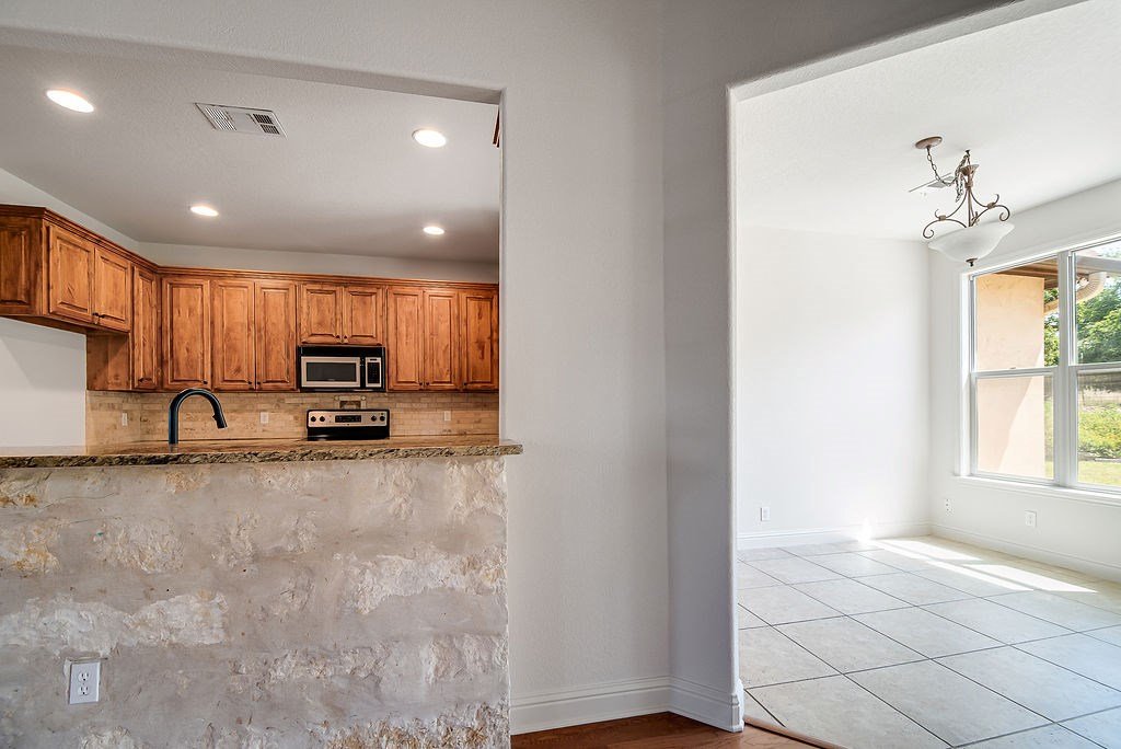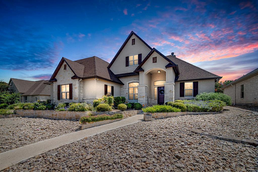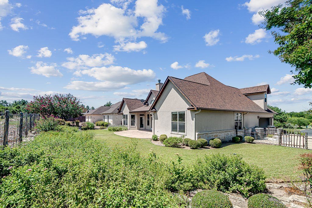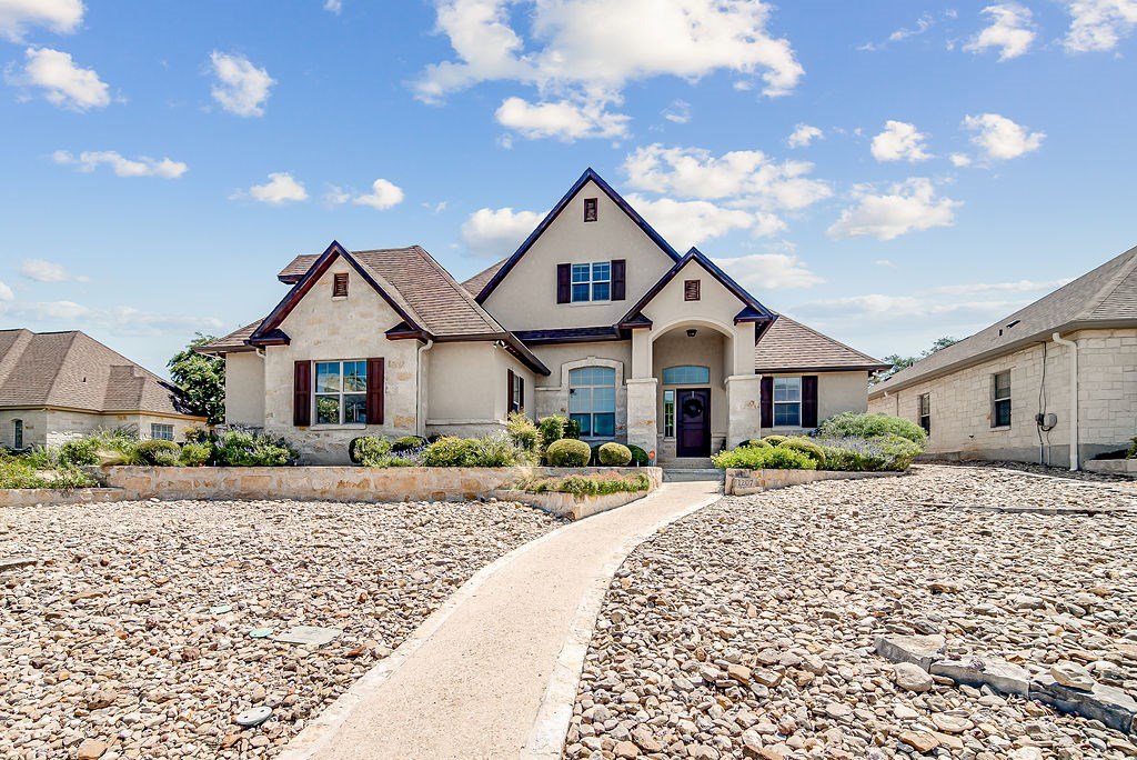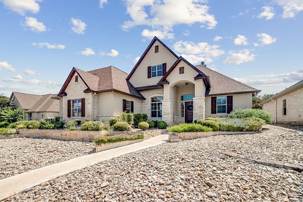Nestled in the serene Cross Mountain West neighborhood, 1207 Running Buck Lane is a distinguished 3 bedroom, 2 bathroom home boasting 2152 square feet of comfortable living space. Built in 2005 and situated on a generous quarter acre lot, it features an attached garage, fireplace, granite countertops, and ceramic tiled bathrooms. The stone and stucco exterior create an impressive front elevation and the cobblestone-paved patio in the backyard is surrounded by lush landscaping - an ideal spot for both peaceful observation of local wildlife and private outdoor entertainment. Upon entering the home, you are greeted with tall ceilings and abundant natural light. The living room features a wood burning fireplace, creating a cozy and relaxing living space. The kitchen is well laid out for cooking meals, and is open to the living room for easy communication and entertaining. This home offers a breakfast nook as well as a formal dining space. The master bedroom has large windows overlooking the private backyard, and a door leading out to the back patio. The primary bedroom has a spacious en-suite with separate shower and soaking tub, and walk-in closets. The split floor plan offers two more bedrooms and another large bathroom with large vanity and two sinks. The attached two car garage has stairs leading up to a bonus room, with endless possibilities, including a playroom, office, or work out room. The entire interior of the home has been freshly painted and is ready to move right in! This Hill Country home offers the perfect blend of comfort and style!
