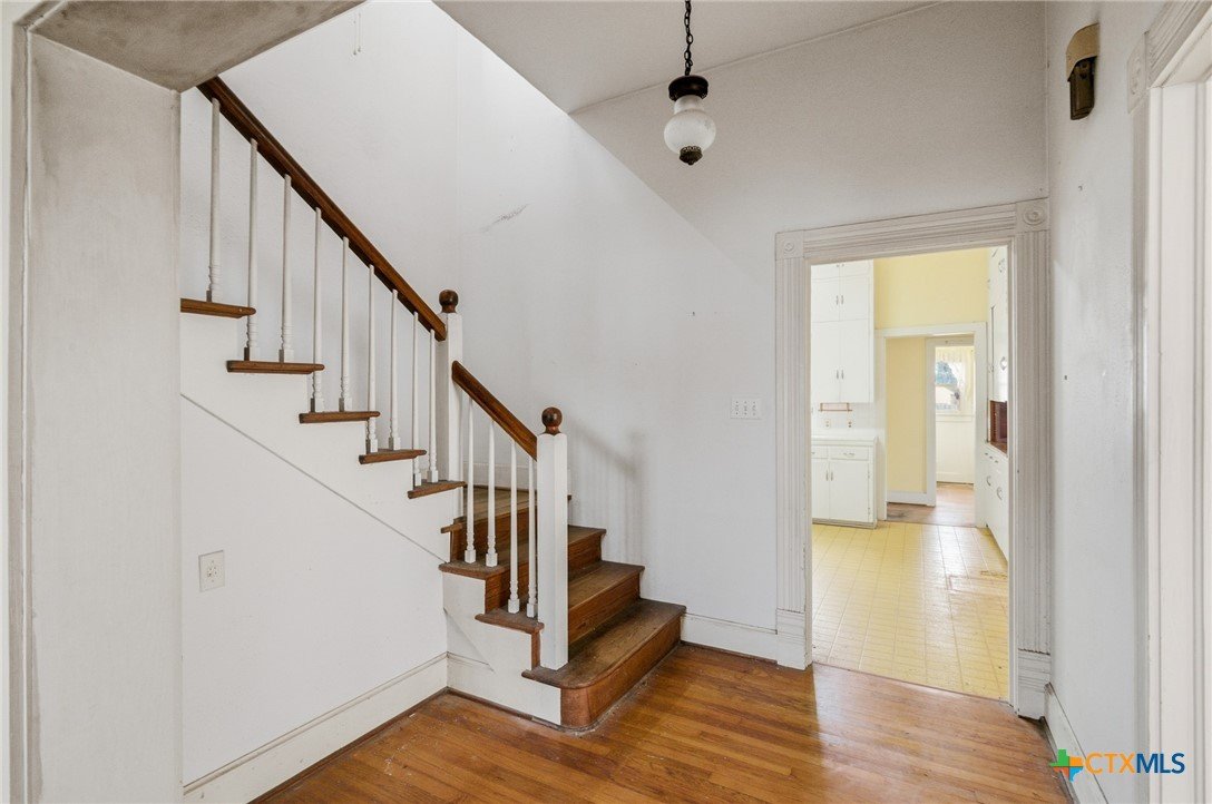 This Southern Colonial home is filled with historic character. Four bedrooms two and a half bathrooms and sits on a corner lot in the historical downtown district. Primary bedroom on the first floor which once was the living room and could be converted back. Large eat-in kitchen. Three bedrooms and a bathroom upstairs. Large rooms, hardwood floors!