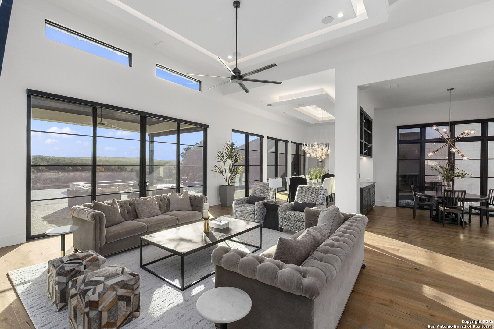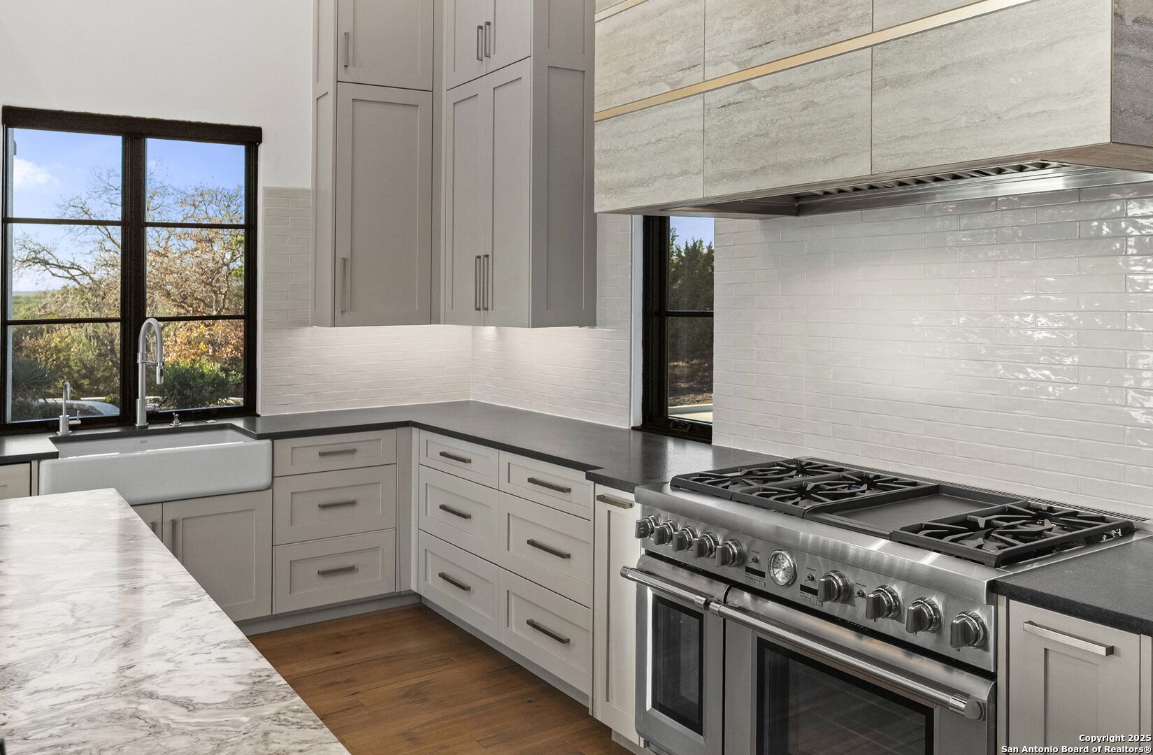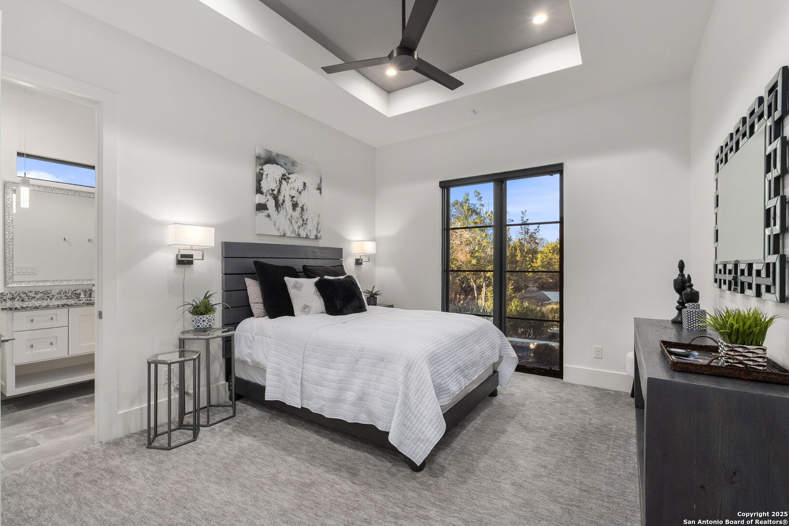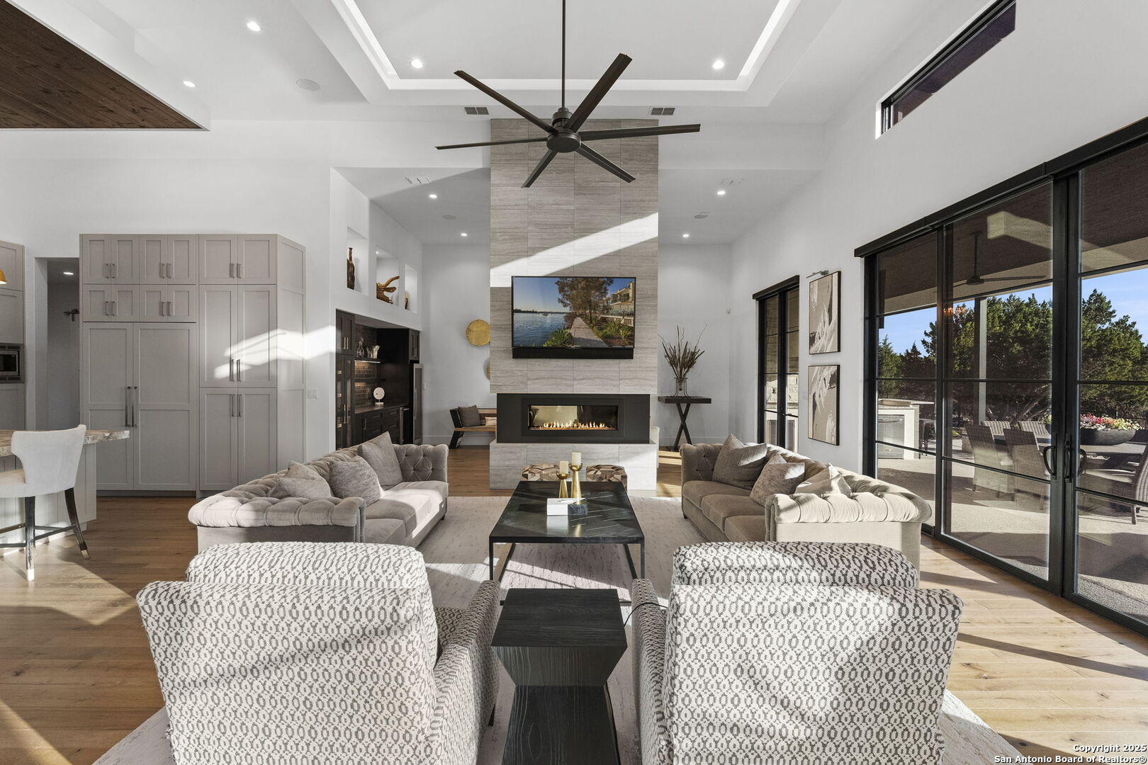 Tucked behind private gates in the prestigious Cordillera Ranch community, this extraordinary Hill Country estate is more than just a home, it's a lifestyle and the one you want. Designed and built by award-winning Garner Homes, every inch of this property was crafted to elevate your everyday experience with comfort, style, and sweeping views that remind you why you chose the Texas Hill Country. From the moment you enter the private gate and wind up the drive, the property greets you with warmth and grandeur. Inside, natural light floods through walls of windows, highlighting a thoughtfully designed open concept floor plan that effortlessly connects each space. At the heart of the home, a stunning double sided stone fireplace anchors the main living room and cozy sitting area, adjacent to a full entertainer's bar complete with custom cabinetry, granite countertops, wine fridge, and ice maker. The formal dining room connects seamlessly to the gourmet kitchen and is featuring Thermador appliances, double ovens, expansive center island, custom cabinetry, and a walk-in pantry with space for a second fridge. A built-in butler's pass through subtly separates the formal and casual dining areas, making hosting feel effortless. The spacious primary suite is your private retreat, complete with its own fireplace, sitting area, flex room (ideal for a home gym or office), and beverage bar. Dual walk-in closets connect conveniently to the main laundry room with custom cabinetry and workspace. The spa-inspired bath includes a large walk-in glass shower, soaking tub, and separate vanities. Across the home, a secondary living space ensures privacy for guests, flanked by three spacious bedrooms with en-suite baths and a second laundry area. Upstairs, a whimsical loft with built-in bunk beds and a half bath is the perfect hideaway for children or visiting grandchildren. Step outside to discover why this property is truly one of a kind: a sprawling covered patio with outdoor fireplace, grill, multiple dining and lounge spaces, and a dazzling infinity edge pool and spa. Every inch of the backyard overlooks the rolling Hill Country, offering a peaceful escape just minutes from Boerne and San Antonio. The details continue beyond the interior: 3 car garage with built-in workshop bay, Dog run with interior access via pet-friendly laundry setup, Smart layout for pet isolation without limiting yard access, Flexibility for multi-generational living, Fully furnished and designer-decorated so that you can move in and enjoy from Day One! Whether you're seeking a peaceful escape, a home to entertain, or a forever residence with room to grow, 121 Greystone Point delivers again and again. Home sale is being offered fully furnished.
