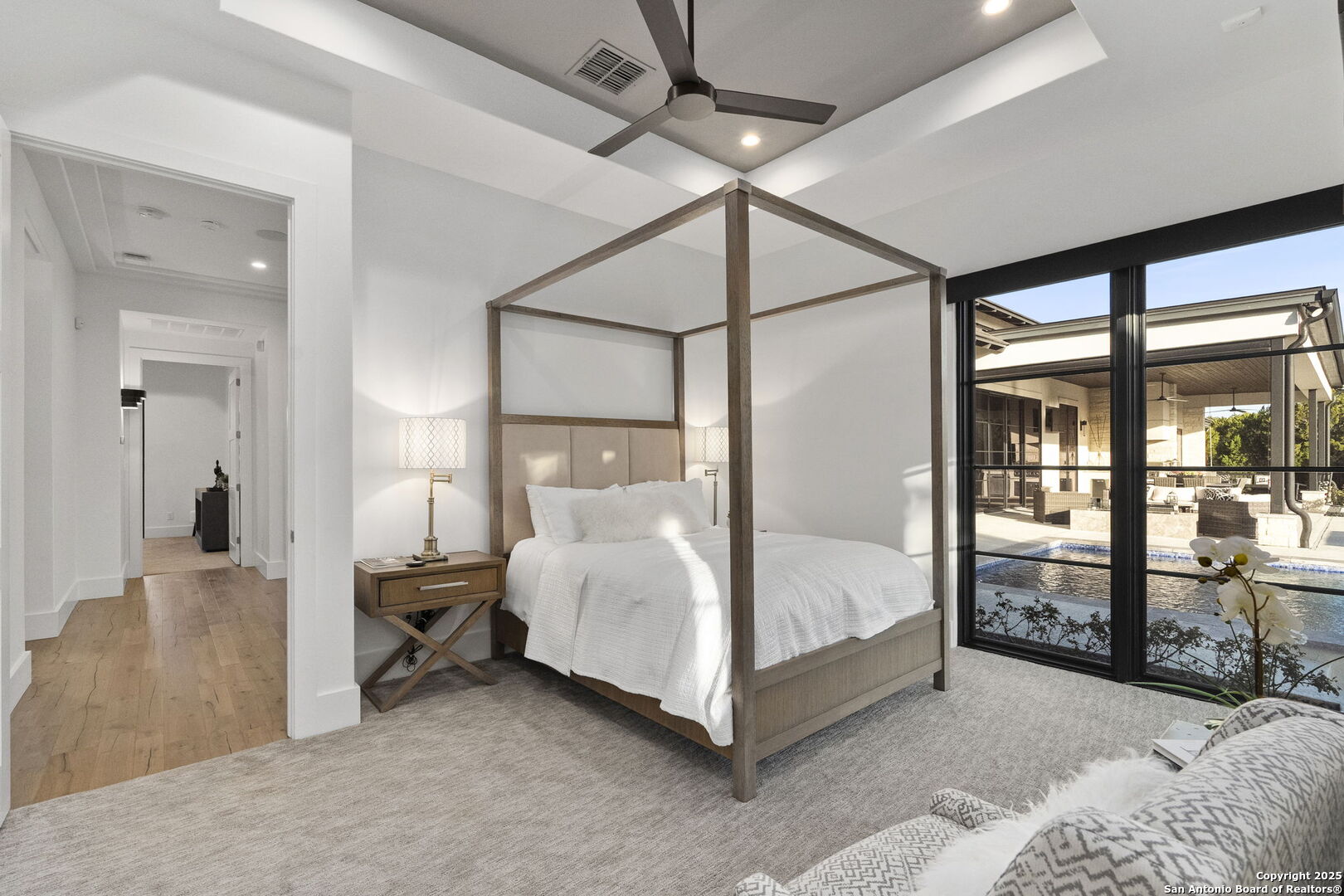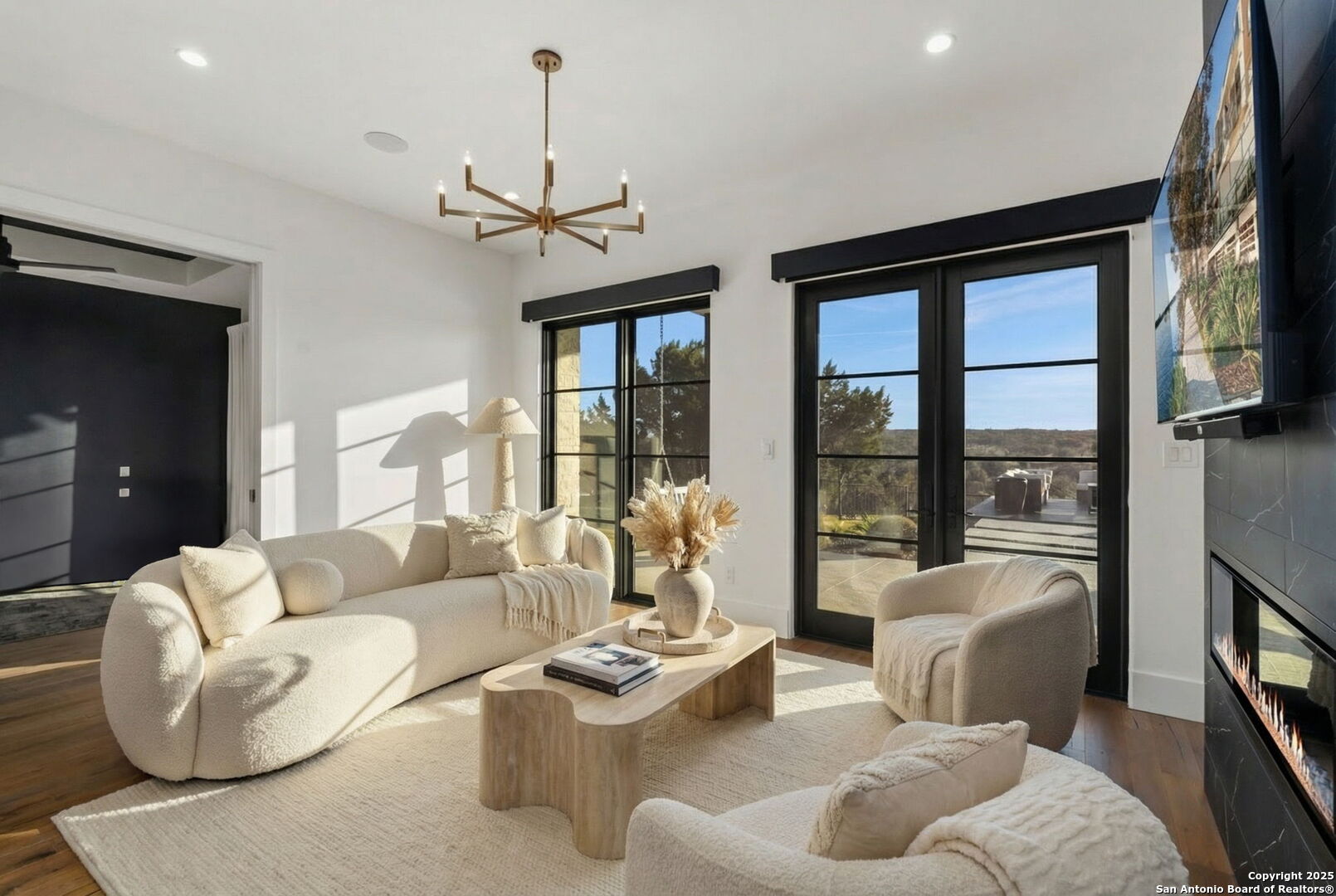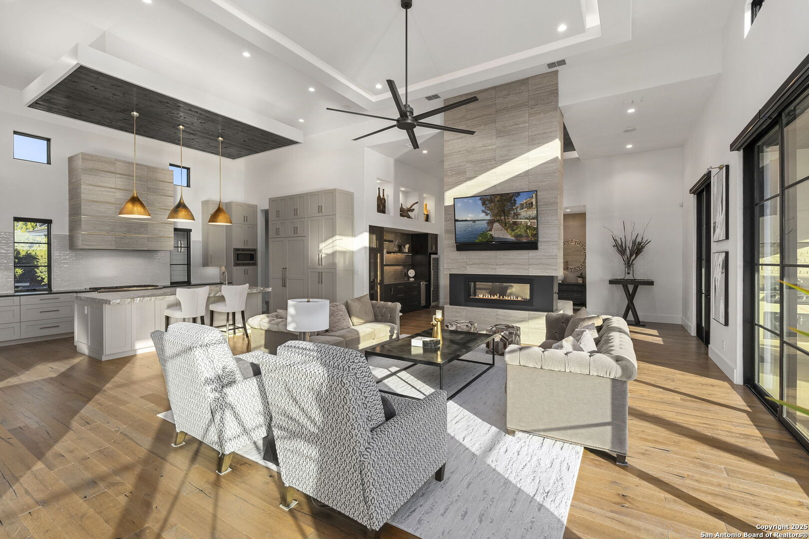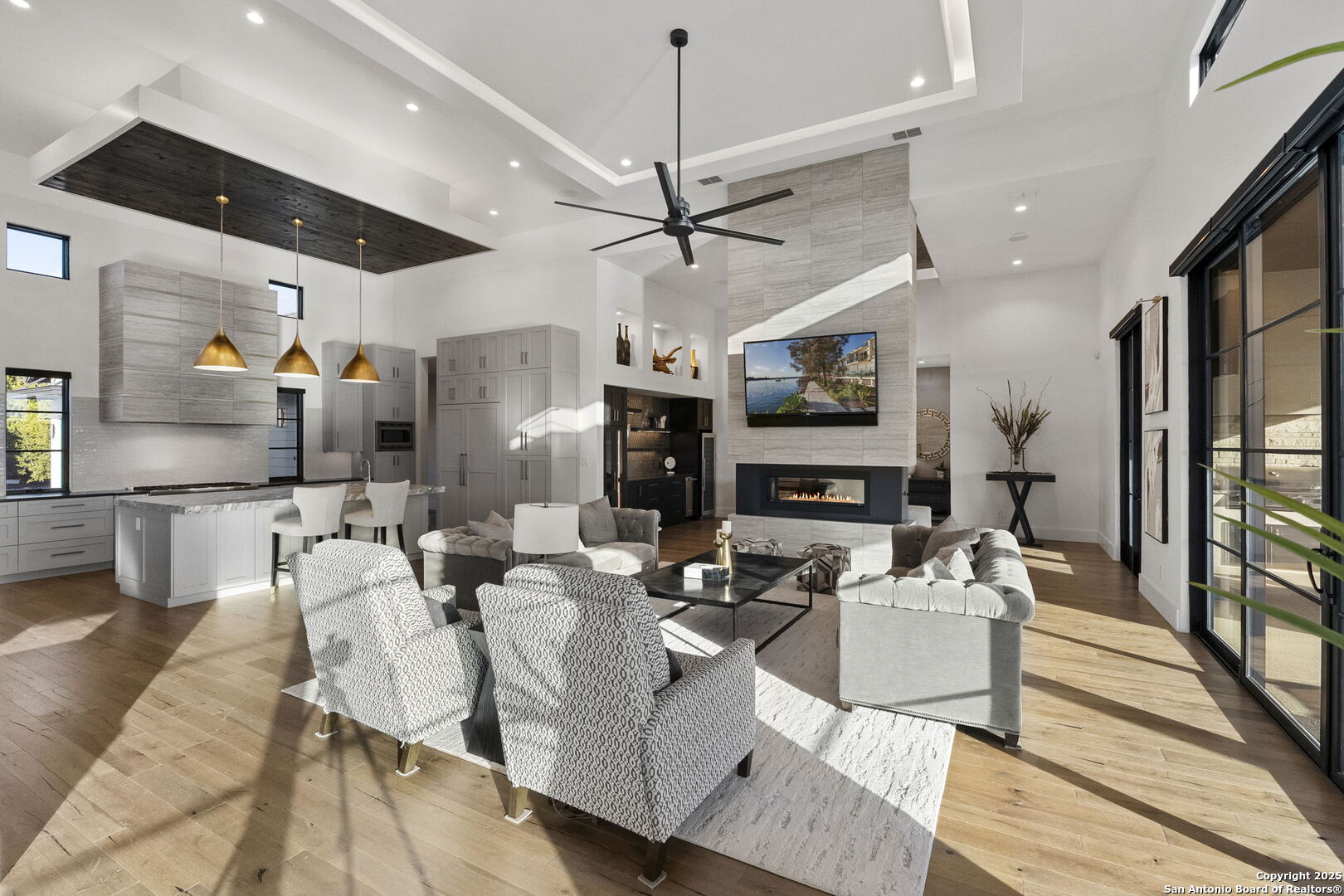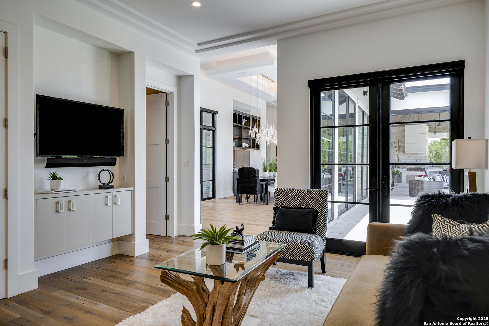 Tucked behind private gates in the prestigious Cordillera Ranch community, this extraordinary Hill Country estate is more than just a home, it's a lifestyle and the one you want. Designed and built by award-winning Garner Homes, every inch of this property was crafted to elevate your everyday experience with comfort, style, and sweeping views that remind you why you chose the Texas Hill Country. From the moment you enter the private gate and wind up the drive, the property greets you with warmth and grandeur. Inside, natural light floods through walls of windows, highlighting a thoughtfully designed open concept floor plan that effortlessly connects each space. At the heart of the home, a stunning double sided stone fireplace anchors the main living room and cozy sitting area, adjacent to a full entertainer's bar complete with custom cabinetry, granite countertops, wine fridge, and ice maker. The formal dining room connects seamlessly to the gourmet kitchen and is featuring Thermador appliances, double ovens, expansive center island, custom cabinetry, and a walk-in pantry with space for a second fridge. A built-in butler's pass through subtly separates the formal and casual dining areas, making hosting feel effortless. The spacious primary suite is your private retreat, complete with its own fireplace, sitting area, flex room (ideal for a home gym or office), and beverage bar. Dual walk-in closets connect conveniently to the main laundry room with custom cabinetry and workspace. The spa-inspired bath includes a large walk-in glass shower, soaking tub, and separate vanities. Across the home, a secondary living space ensures privacy for guests, flanked by three spacious bedrooms with en-suite baths and a second laundry area. Upstairs, a whimsical loft with built-in bunk beds and a half bath is the perfect hideaway for children or visiting grandchildren. Step outside to discover why this property is truly one of a kind: a sprawling covered patio with outdoor fireplace, grill, multiple dining and lounge spaces, and a dazzling infinity edge pool and spa. Every inch of the backyard overlooks the rolling Hill Country, offering a peaceful escape just minutes from Boerne and San Antonio. The details continue beyond the interior: 3 car garage with built-in workshop bay, Dog run with interior access via pet-friendly laundry setup, Smart layout for pet isolation without limiting yard access, Flexibility for multi-generational living, Fully furnished and designer-decorated so that you can move in and enjoy from Day One! Whether you're seeking a peaceful escape, a home to entertain, or a forever residence with room to grow, 121 Greystone Point delivers again and again. Home sale is being offered fully furnished.