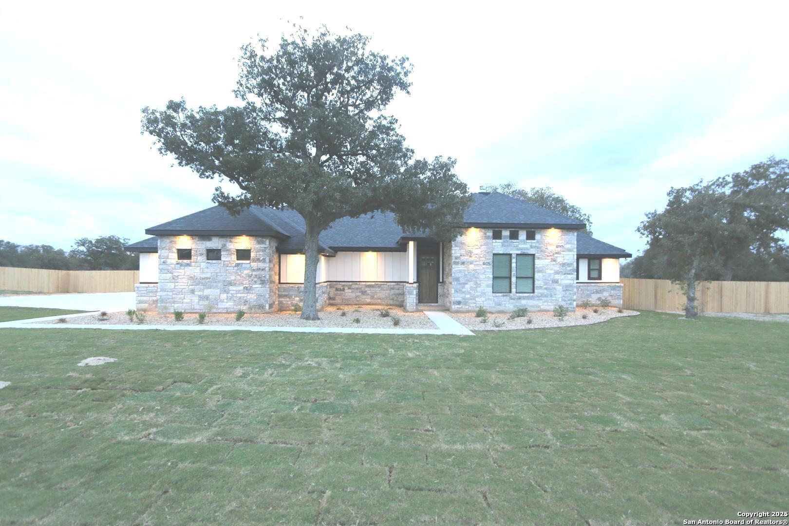 Brand New..Approx 2500sf 4-BD,3-BA "Very Custom" Ranch Style Hm w/Lots of Extras' on a Very Clean 1-Acre Lot that has a Fully (mostly privacy fenced) Backyard w/Mature Trees & No Immediate Backyard Neighbors PLUS a Newly Installed Landscape Pkg consisting of Sod,Plants/Shrubs,Rocked Flower Beds,Fire-Pit & Sprinkler Sys.. In Hondo Ridge Subd off CR 321 that has No City Taxes & Low 1.7% Tax Rate in the Sought after La-Vernia ISD.....Very Open & Bright Floorplan w/Raised Decorative Ceilings,Lots of Crown molding & Recessed lighting,8' Tall Doors,Interior Window Coverings,Barn Door,2-Fire Places w/ 1 in the Approx 32x20 L-Shaped Patio/Outdoor Living Area that has Tiled Flooring,Ceiling Fan,TV Wiring & Great Views..Spacious Eat-In Island Kit w/Xtra Tall Custom Cabinets w/Hardware,Lots of Slow Close Pull Out Drawers,Pot Filler.Blt in SS Appliances,Cooktop,Tiled Backsplash,Under & Over Cabinet Lighting & Walk in Corner Pantry..Kit Overlooks the Approx 22x20 Living Rm that has Rocked Corner Fireplace,Decorative Checker Board Ceiling,Elect Floor Outlet & Lots of Windows...Approx 14x13 Dining Rm w/Deco Ceiling has Outside Access to the Huge Covered Patio/Outdoor Living Area..split bd plan (2-possible main bd suites that have their own bathrrom & walk in closets) the other 2-b'd also have walk in closets,approx 12x8 Utility Rm w/Upper & Lower Cabinets & Dbl Door Storage Closet,Oversized & Finished Out Side Entry Gar w/Keypad & 15x5 Walk in Storage Closet w/shelving..**Again Very Custom Hm w/LOTS of Extras'....COUNTRY LIVING !!!