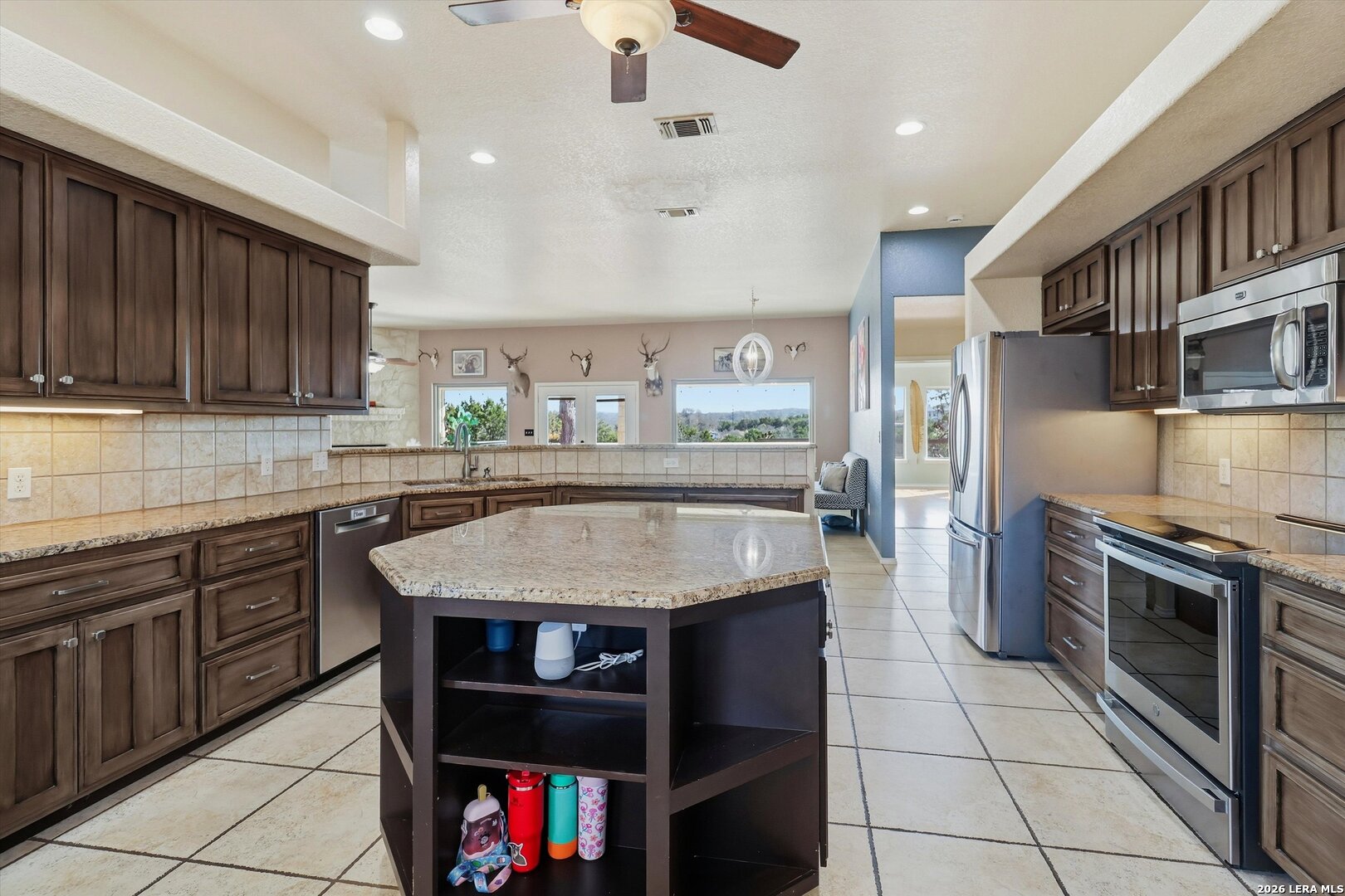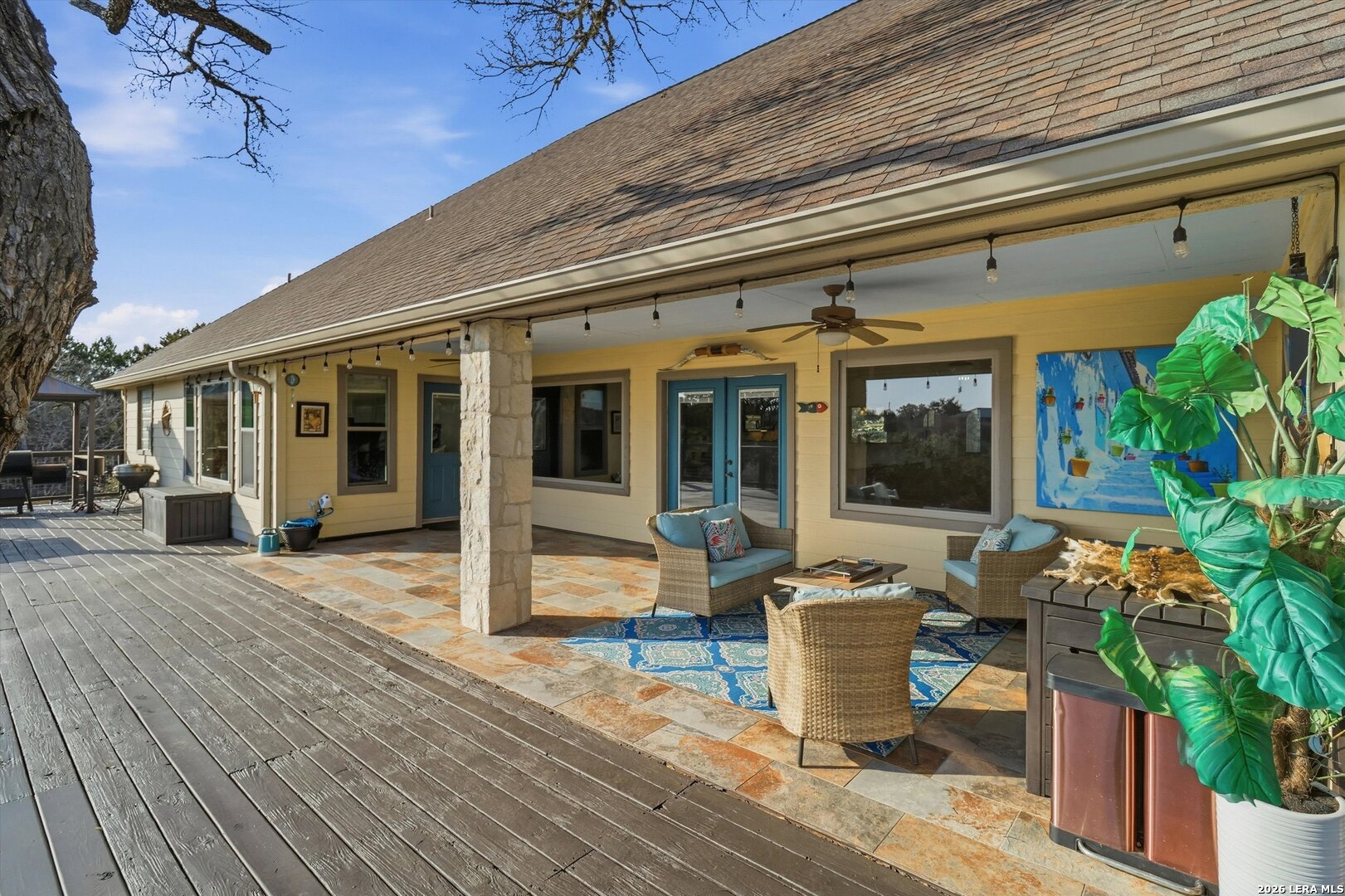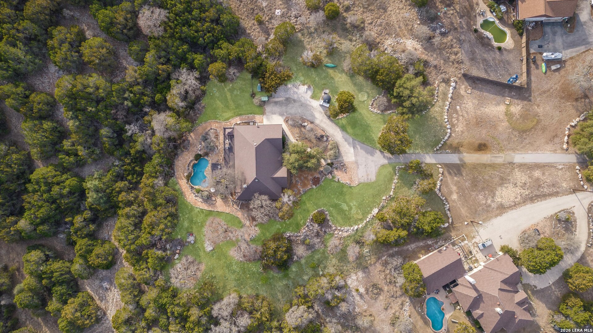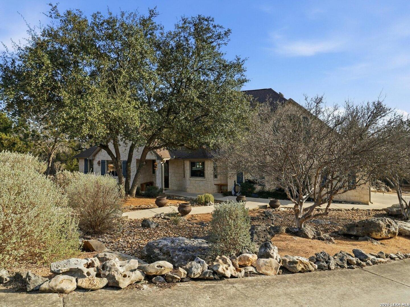 **Hill Country Living at Its Finest** Welcome to your dream retreat where sweeping views meet Texas charm on nearly 3.5 acres of picturesque Hill Country terrain. This custom-built single-story gem delivers the perfect blend of spacious living and natural beauty, tucked away on a quiet cul-de-sac in the sought-after River Mountain Ranch community. Step inside to discover an expansive open floor plan bathed in natural light through stunning picture windows. The corner rock fireplace stretches floor to ceiling, creating a warm focal point for cozy evenings. Your library awaits with vaulted ceilings, exposed wood beams, Brazilian hardwood floors, and custom built-in bookcases-a bibliophile's sanctuary. The family-sized kitchen impresses with granite countertops, an oversized center island with breakfast bar, walk-in pantry, and stainless steel appliances. 4 bedrooms and 3.5 bathrooms provide abundant space, including a versatile 4th bedroom above the garage-perfect as a game room with its own entrance and full bath. The attic presents an exciting opportunity, offering ideal conditions to finish out and create additional living space for growing families or endless possibilities. The primary suite opens directly to the pool deck with breathtaking Hill Country views, while the ensuite bathroom features split vanities, a walk-in shower, and a relaxing garden tub. Secondary bedrooms share a convenient Jack and Jill bathroom. Outside, the Keith Zars pool and expansive deck create your personal oasis. Enjoy private Guadalupe River access for kayaking, swimming, and exploring. Horses, chickens, and bow hunting are permitted on this wildlife-abundant property featuring recreational vehicle parking and high-speed fiber internet. Experience the best of Boerne living-schedule your private showing today!