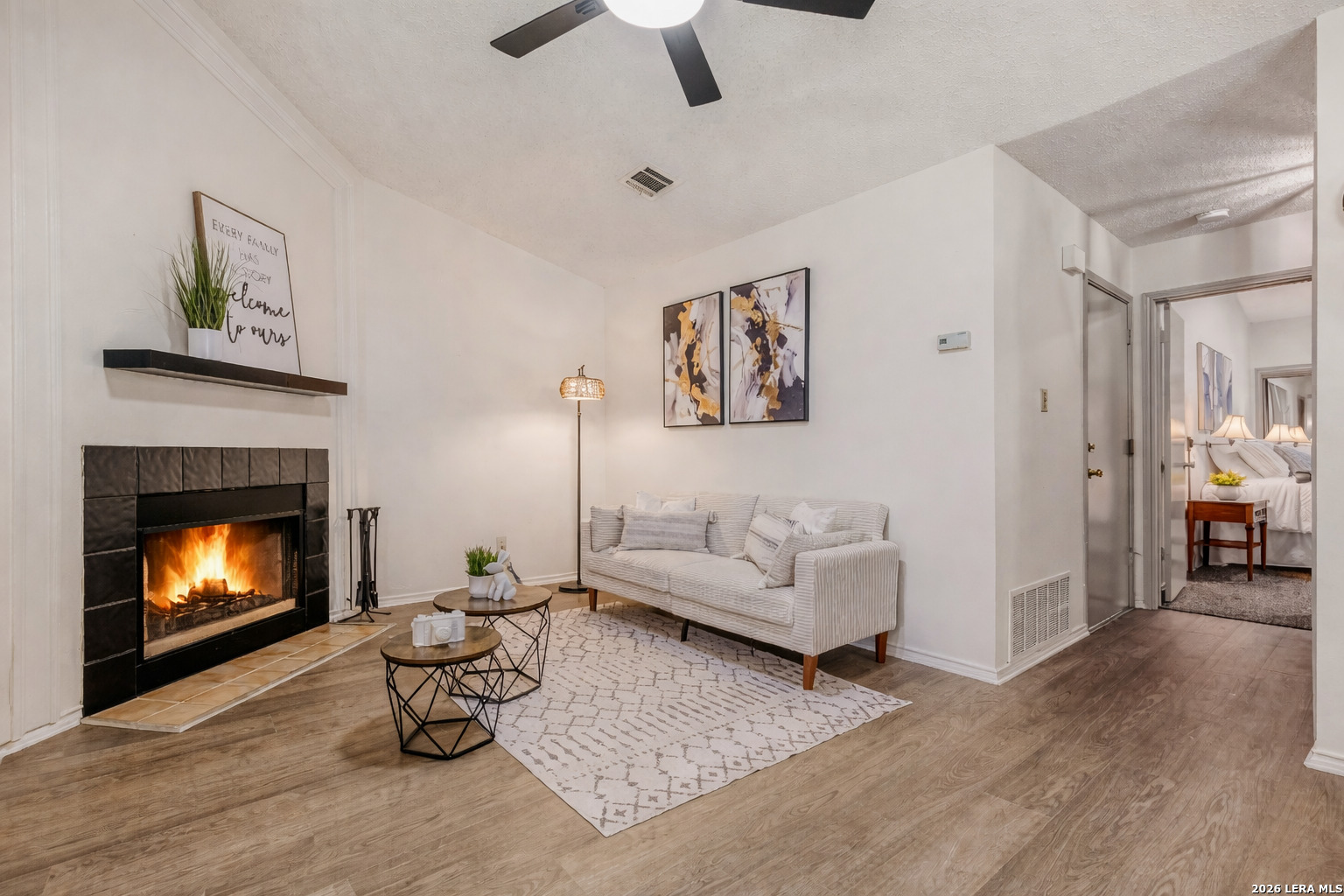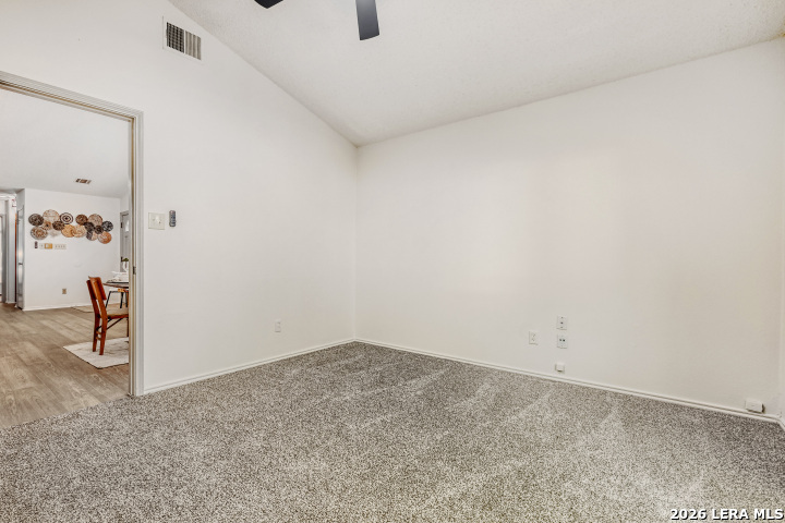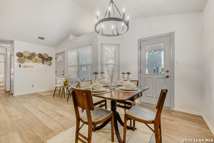 Welcome to 12105 Stoney Crossing! This beautifully updated 2-bedroom, 2-bath townhome style home that perfectly blends comfort and style. Recently painted throughout, this home features brand-new vinyl and carpet flooring that adds a fresh, modern feel to every room. The inviting living area centers around a charming wood-burning fireplace with a classic mantle that's perfect for cozy evenings at home. The kitchen is both functional and stylish, complete with a dishwasher, microwave, and updated finishes that make everyday living easy. Check out the stunning Edison Bulb Chandelier that sets the stage for memorable dinners and holiday dishes. Step outside to enjoy a private outdoor space surrounded by mature trees and a privacy fence, offering both shade and seclusion. Whether you're relaxing or entertaining, this town-home style condo provides the perfect setting to call home.