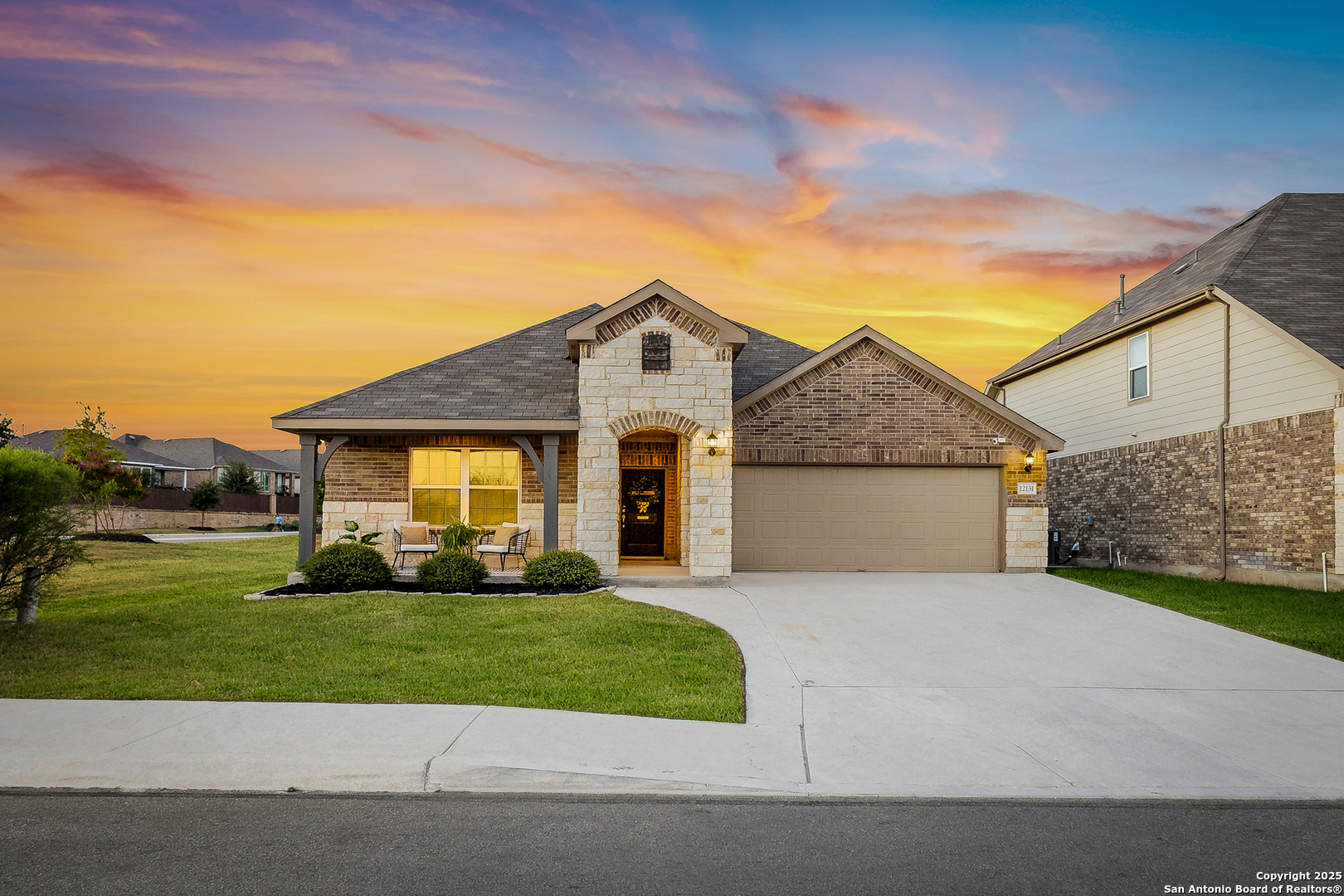 Stunning One Story home on a Corner Lot in the desirable Davis Ranch Community!! This beautifully designed home offers ton of upgrades and a spacious and functional layout with 3 bedrooms, a pocket office and lots of storage. The island kitchen features granite countertops, stainless steel appliances, and a gas cooktop, making it a chef's dream. A modern and chic electric fireplace provides a cozy ambiance with an optional warmth. Enjoy the equally beautiful and durable wood-look tile flooring throughout the living, dining, entry, and hallways, and laundry room for easy maintenance. The primary suite features bay windows, a spa-like garden tub, a spacious walk-in shower, and a HUGE designer style double closet with direct access to the laundry room for your convenience. The closet is a must see!! Water softener is included. Home is perfectly situated on a flat lot with no neighbor on the left or directly behind, and it is an easy walk to the onsite highly acclaimed Northside elementary and middle schools. Enjoy this wonderful community with two pools, play grounds, and that backs up to the Government Canyon nature preserve. Don't miss this incredible opportunity-schedule your showing today!