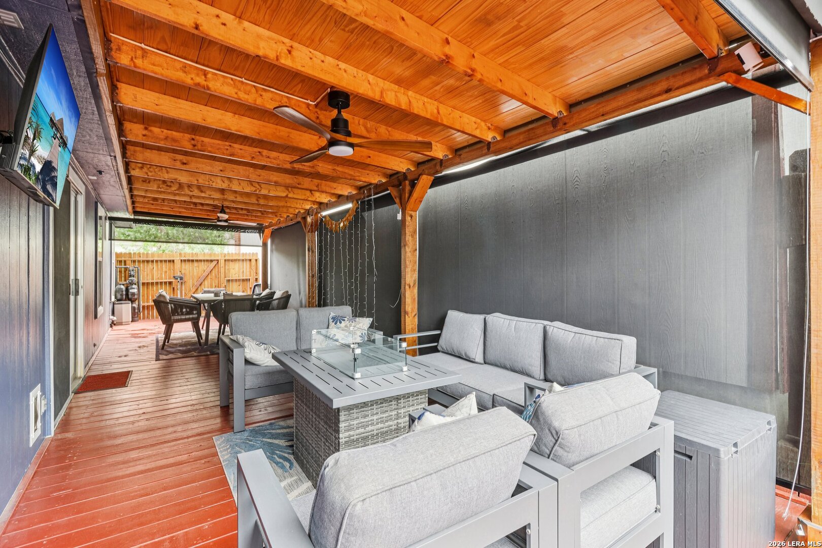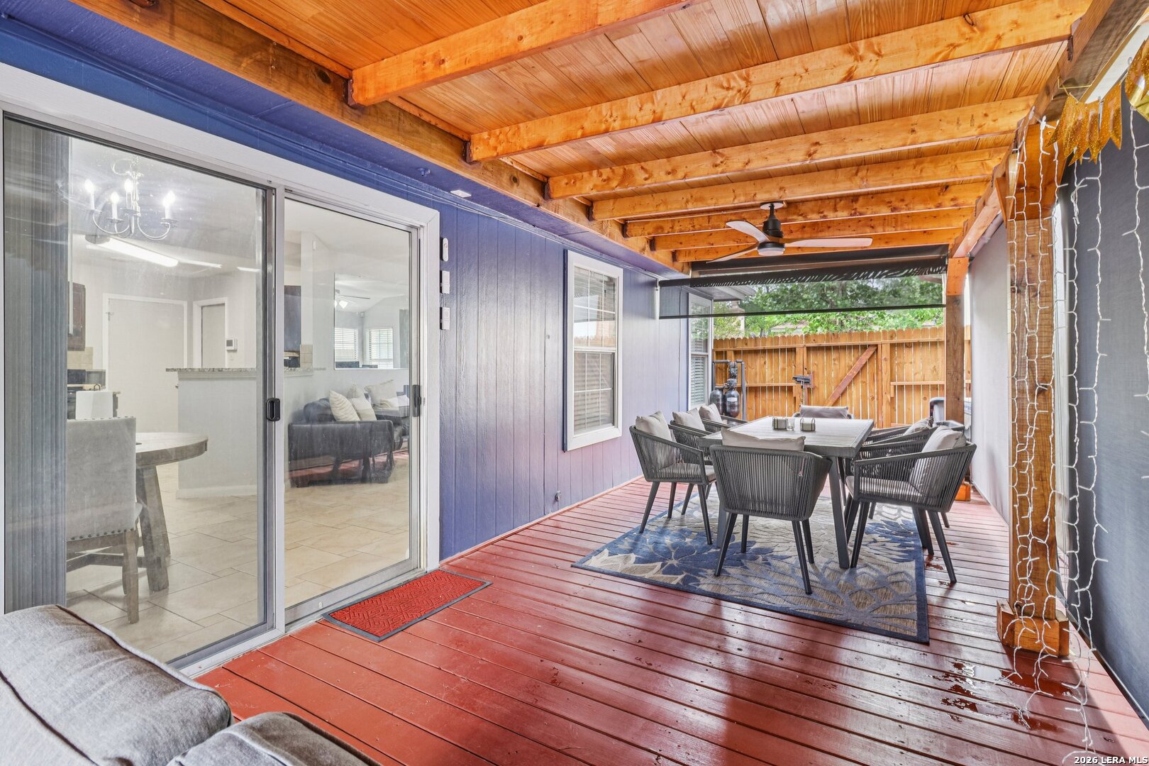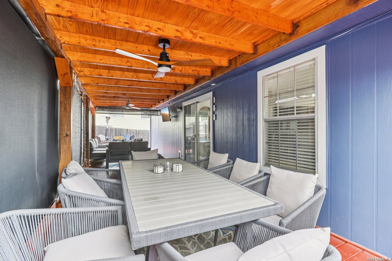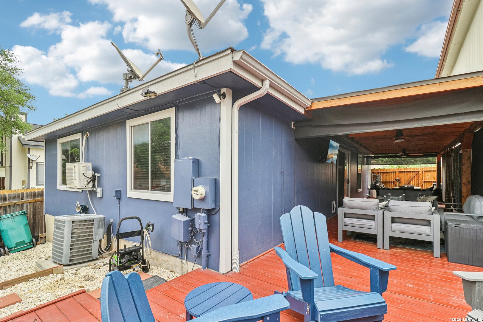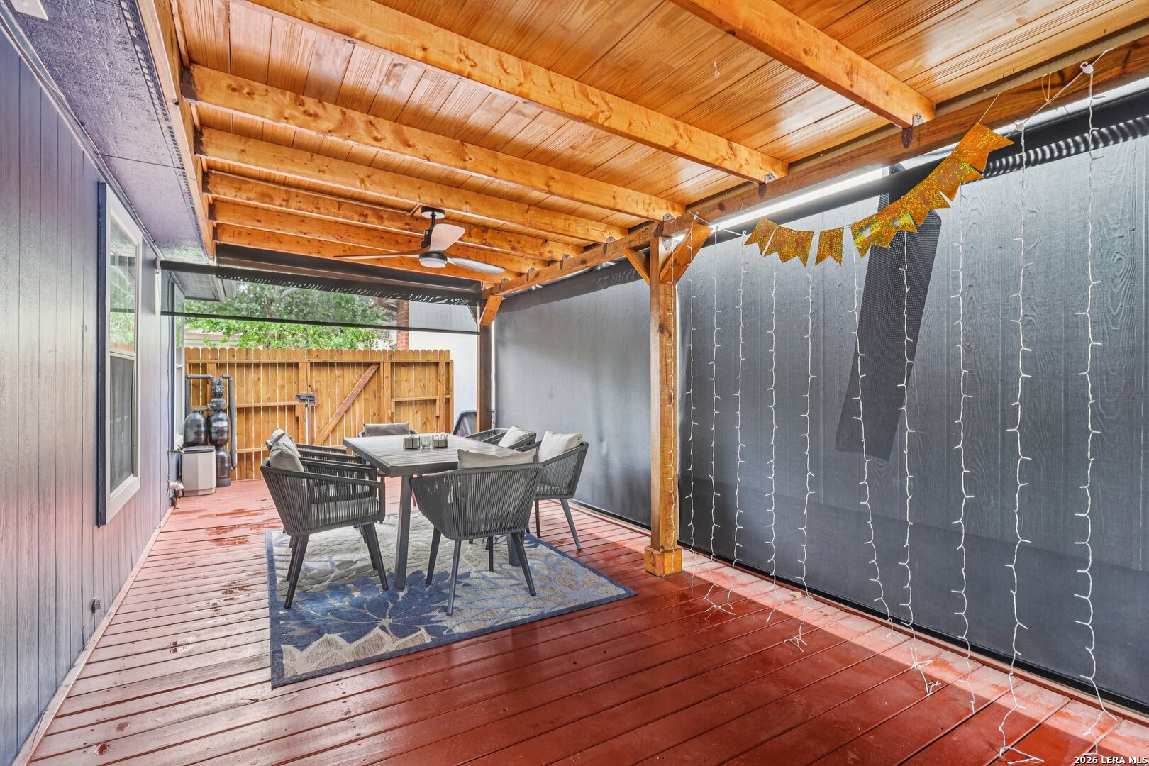 Welcome home to this hidden gem in a gated community near Wetmore and Thousand Oaks! Situated on a desirable corner lot, this 2-bedroom, 2-bath home is packed with comfort and thoughtful upgrades. Enjoy year-round outdoor living in the covered patio area with powered retractable screens for added privacy and protection from the elements, plus an extended deck that's perfect for relaxing or entertaining. An exterior TV mount and outlets make game days and movie nights easy. Inside, the open kitchen and living space features beautiful tile flooring, granite countertops, and real wood cabinetry. The primary suite includes a mini-split in addition to central HVAC-ideal for personalized temperature control. Both bathrooms offer contemporary walk-in showers. A water softener and gutters are already in place, making this home truly move-in ready.
