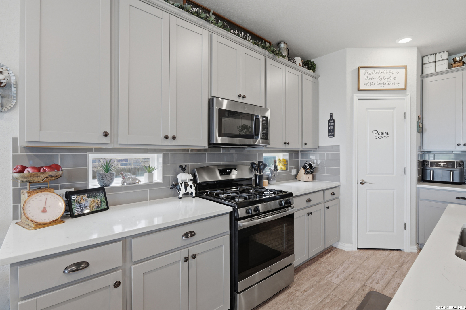Welcome to 1214 Nashua Square, where comfort, space, and thoughtful design come together beautifully! Tucked in the exclusive gated Potranco Run community, this stunning 4-bedroom, 4 full-bath home offers both functionality and style in a location that continues to grow in popularity. Sitting on 0.138 acres with 2,552 square feet of thoughtfully designed living space, this home provides plenty of room to stretch out while still feeling warm and connected. Inside, you'll find an inviting open-concept layout anchored by a beautiful living area with soaring ceilings that create an open, airy feel throughout the space. The kitchen is designed with both everyday living and entertaining in mind, featuring tile flooring, quartz countertops, a gas oven, and an oversized island that naturally becomes the center of the home. With four full bedrooms and four full bathrooms, the layout provides ample space for everyone to enjoy their own privacy while still offering comfortable common areas for gathering together. Bedroom #4 is currently being used as an office but can easily be adapted to suit your needs. Main living spaces are conveniently located on the first floor, while an additional bonus space upstairs offers flexibility for a second living area, workspace, or media room. This upstairs space could also become a full 5th bedroom with full en-suite bathroom. Situated on a greenbelt the home offers added privacy, with no direct backyard neighbors. Pride of ownership shines throughout, as the property has been meticulously maintained by its original owner. Major updates include a new roof installed in June 2021 and new HVAC AC evaporator coils replaced in March 2026. The home also features a structured media enclosure with centralized networking and a built-in wireless access point system, helping provide strong connectivity throughout the house. Located with quick access to the rapidly growing Potranco and 211 corridor, you're just minutes from Loop 1604, Alamo Ranch, and Lackland AFB, along with excellent shopping, dining, and entertainment options nearby. Schedule your showing today and come experience everything this beautifully maintained home has to offer.