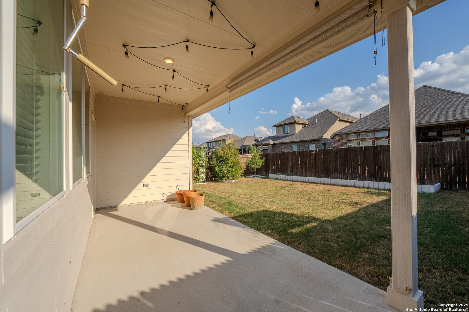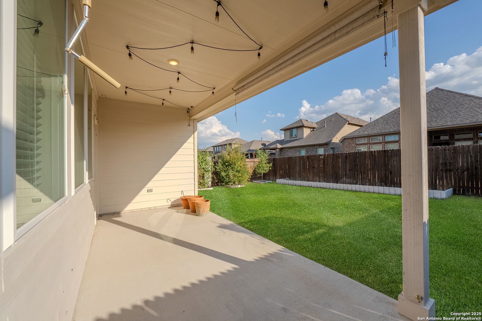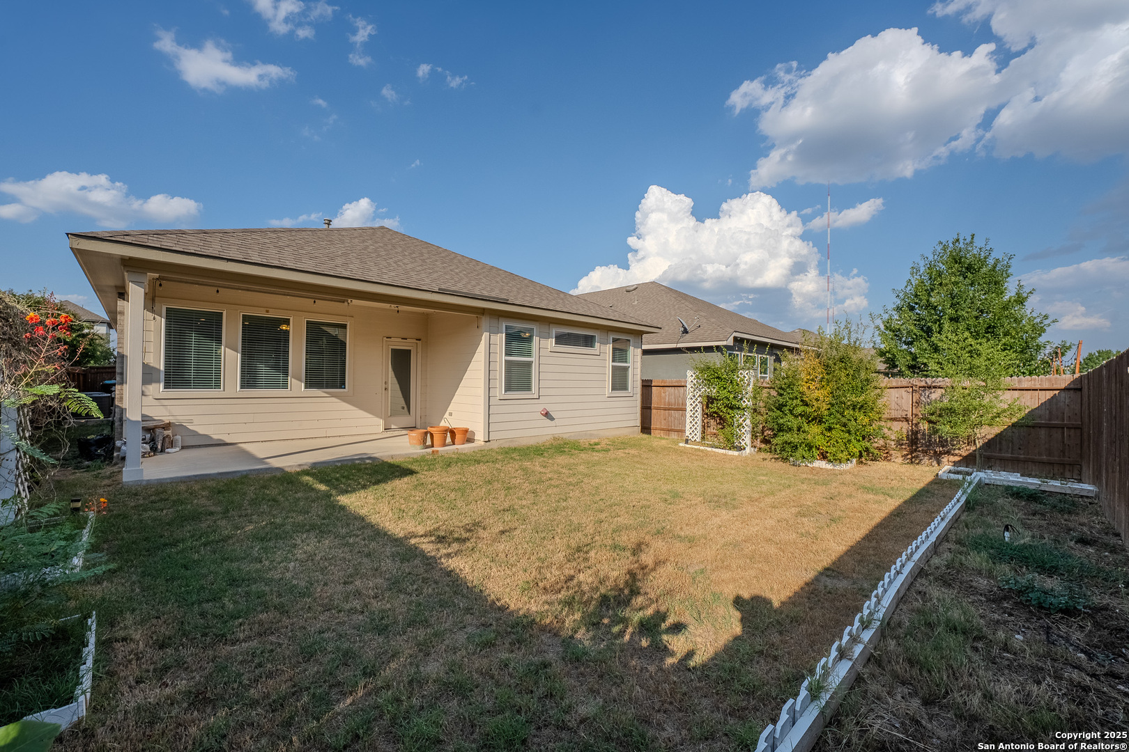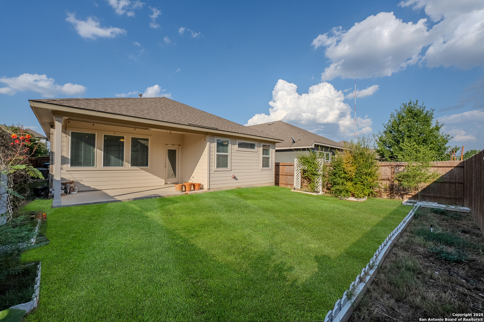 Welcome to your next chapter in Northwest San Antonio, where comfort meets modern charm. This beautiful one-story home features four spacious bedrooms and two full bathrooms, perfectly designed for family living and effortless flow. Step inside to discover a bright open-concept layout, where the living, dining, and kitchen areas blend seamlessly, ideal for gatherings or quiet evenings at home. The kitchen is the heart of it all, offering gas cooking, elegant countertops, and plenty of space to create and connect. Your primary suite is a true retreat, complete with a huge walk-in closet and a private bath that invites relaxation after a long day. Enjoy outdoor living on your covered patio, perfect for morning coffee or weekend barbecues, all within a welcoming, established community. Built in 2019, this home offers the best of both worlds: modern comfort and timeless appeal, surrounded by mature landscaping and a peaceful neighborhood vibe. Northwest San Antonio living at its finest. Sellers concessions available.