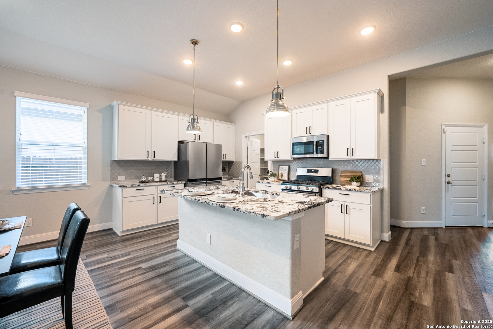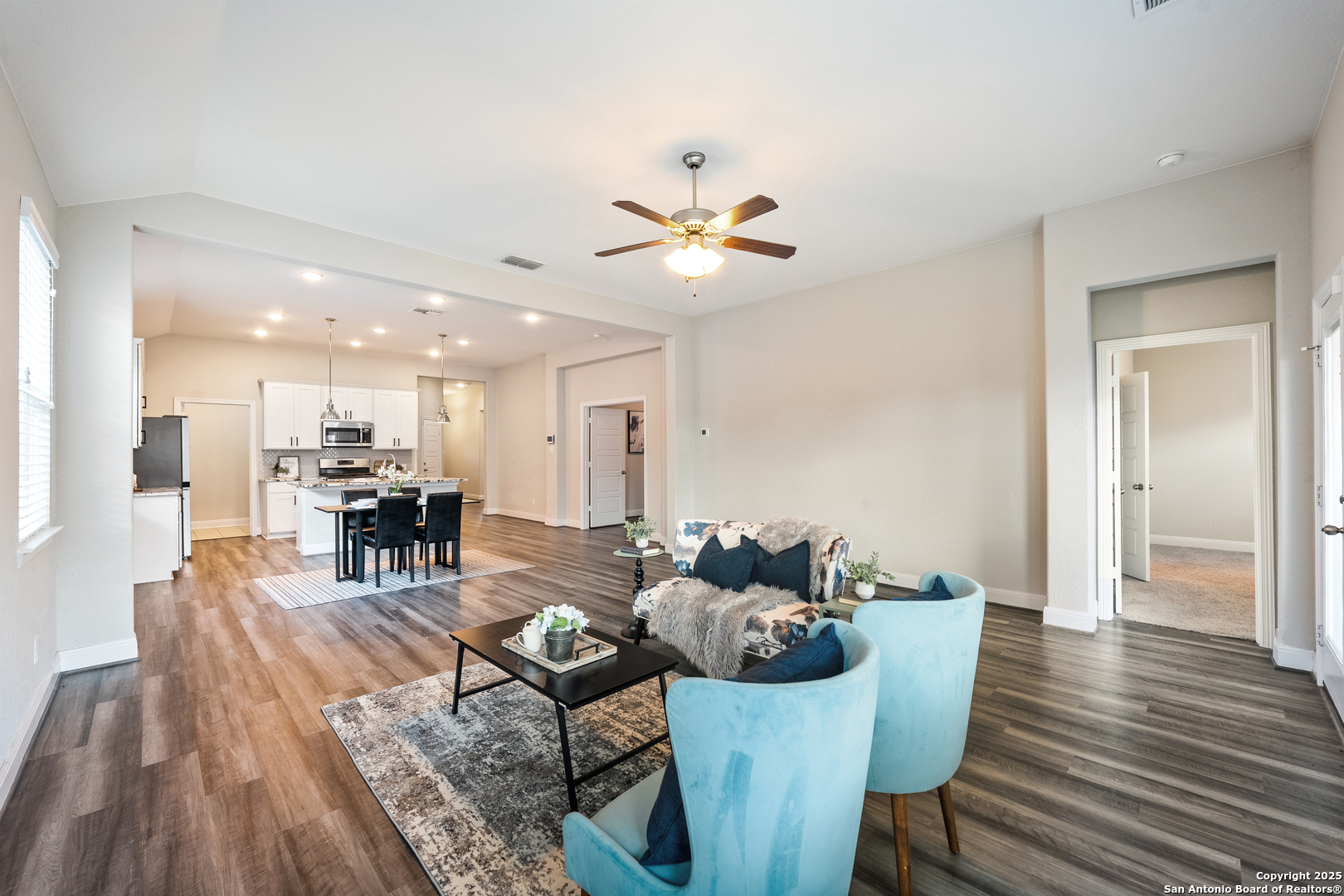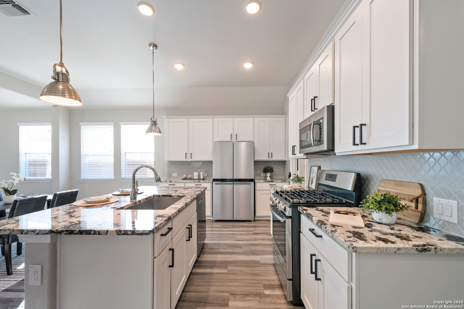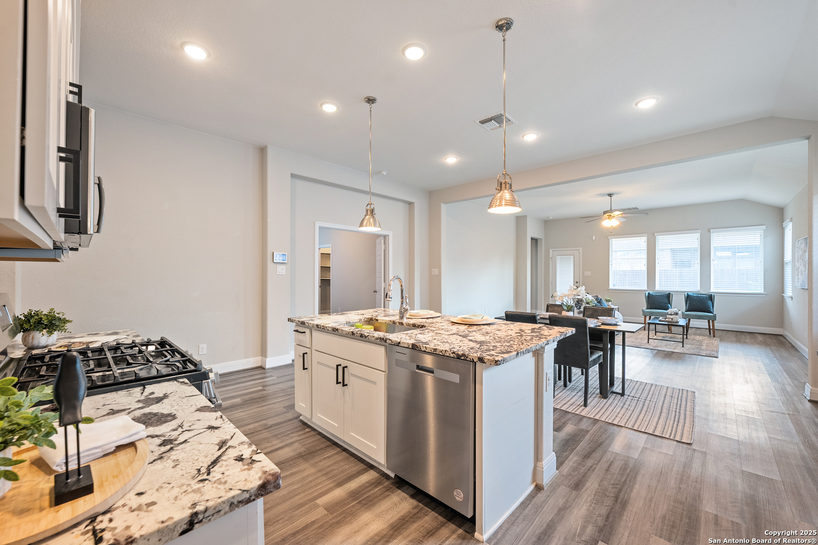 Welcome to your next chapter in Northwest San Antonio, where comfort meets modern charm. This beautiful one-story home features four spacious bedrooms and two full bathrooms, perfectly designed for family living and effortless flow. Step inside to discover a bright open-concept layout, where the living, dining, and kitchen areas blend seamlessly, ideal for gatherings or quiet evenings at home. The kitchen is the heart of it all, offering gas cooking, elegant countertops, and plenty of space to create and connect. Your primary suite is a true retreat, complete with a huge walk-in closet and a private bath that invites relaxation after a long day. Enjoy outdoor living on your covered patio, perfect for morning coffee or weekend barbecues, all within a welcoming, established community. Built in 2019, this home offers the best of both worlds: modern comfort and timeless appeal, surrounded by mature landscaping and a peaceful neighborhood vibe. Northwest San Antonio living at its finest. Sellers concessions available.