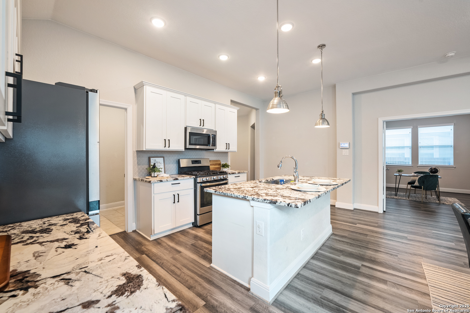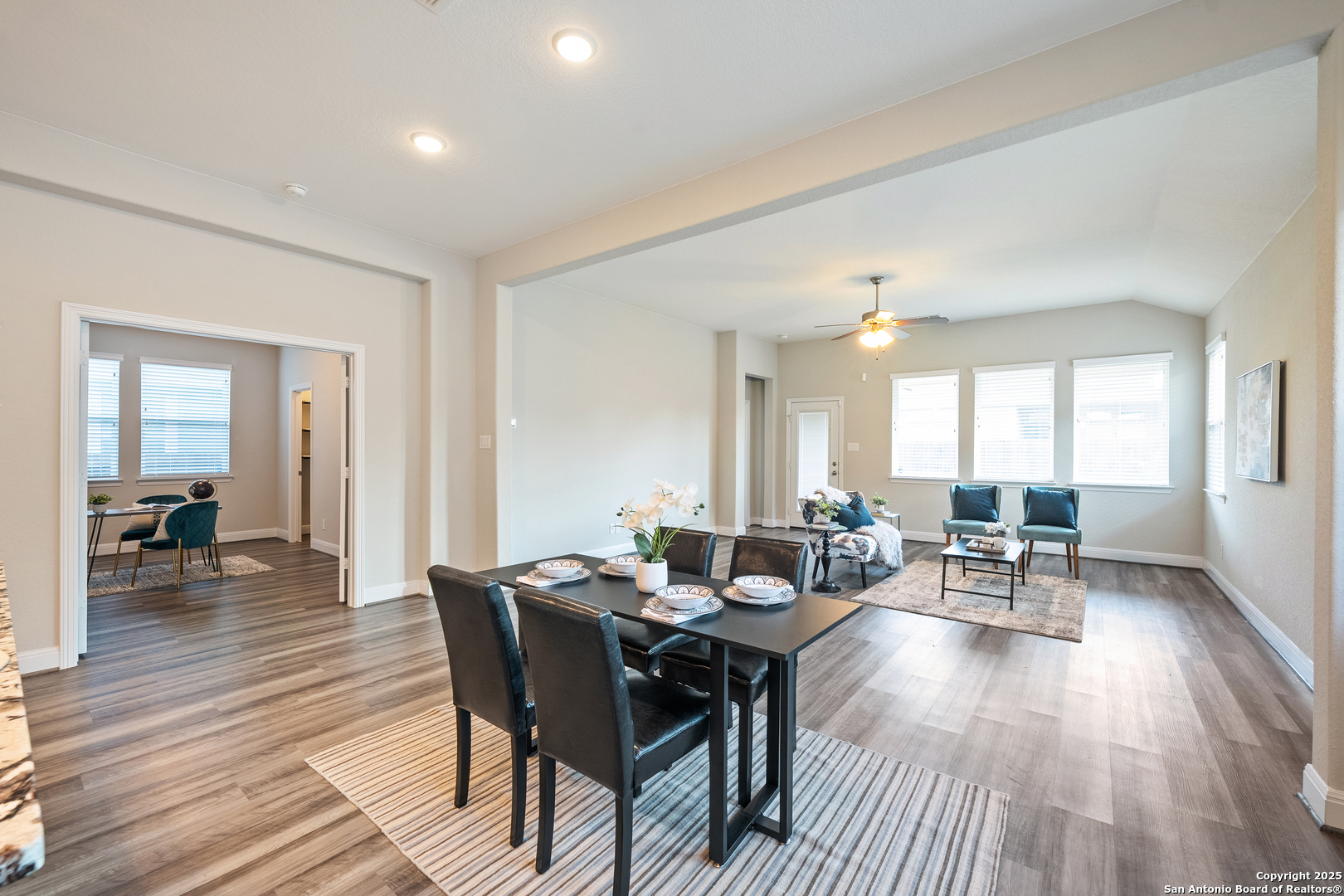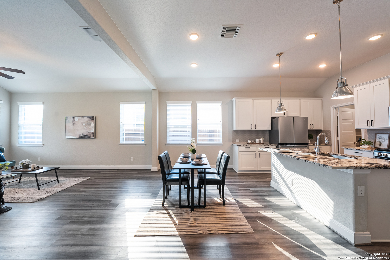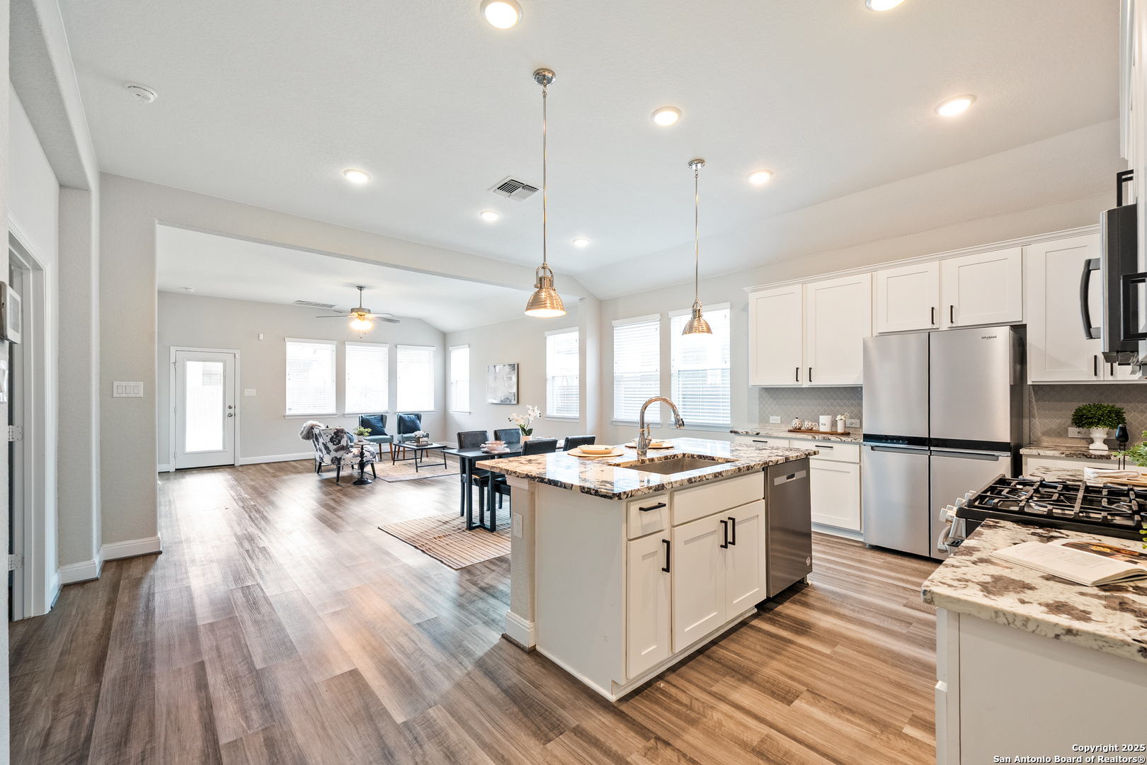 Welcome to your next chapter in Northwest San Antonio, where comfort meets modern charm. This beautiful one-story home features four spacious bedrooms and two full bathrooms, perfectly designed for family living and effortless flow. Step inside to discover a bright open-concept layout, where the living, dining, and kitchen areas blend seamlessly, ideal for gatherings or quiet evenings at home. The kitchen is the heart of it all, offering gas cooking, elegant countertops, and plenty of space to create and connect. Your primary suite is a true retreat, complete with a huge walk-in closet and a private bath that invites relaxation after a long day. Enjoy outdoor living on your covered patio, perfect for morning coffee or weekend barbecues, all within a welcoming, established community. Built in 2019, this home offers the best of both worlds: modern comfort and timeless appeal, surrounded by mature landscaping and a peaceful neighborhood vibe. Northwest San Antonio living at its finest. Sellers concessions available.