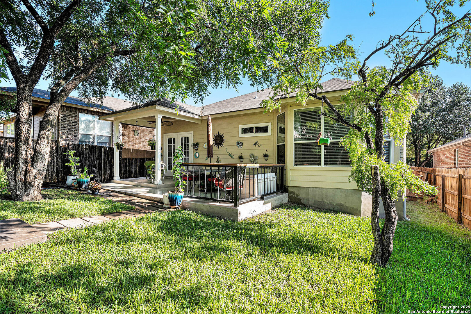 Single-story * Dedicated office * Gas cooking * Extended covered patio * Mature trees This move-in ready 3/2 offers an open layout with a dedicated office, large island kitchen with gas cooking, and seamless flow to the dining and living areas. The primary suite includes a private bath and extended space, while upgraded baths, dimmable lighting, and thoughtful details add comfort throughout. Step outside to a backyard retreat with mature trees, Texas landscaping, and an extended covered patio. Fresh curb appeal, two-car garage make this home stand out. Conveniently located near top schools, shopping, and quick 1604 access.