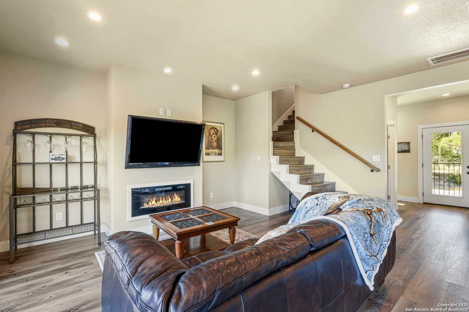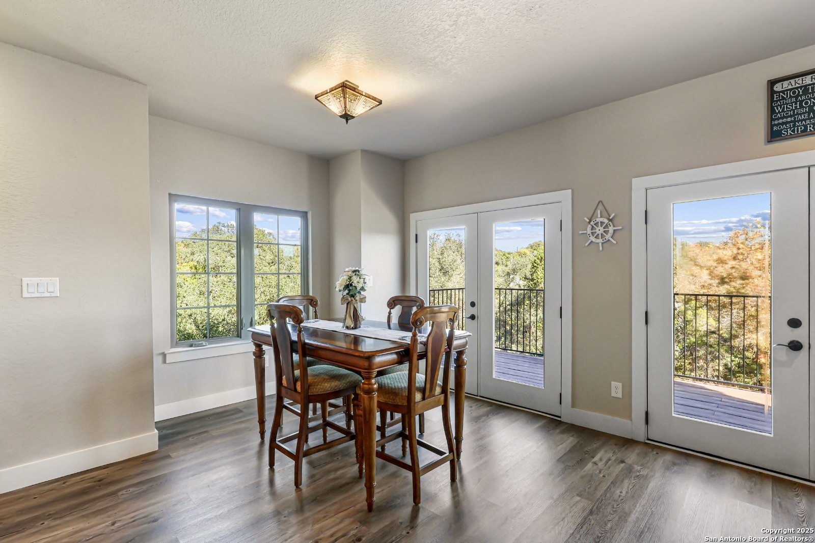 Tucked away in Canyon Lake, 1216 Canyon Lake Dr backs to a spring fed pond on a private park shared by only a few homes which offers you backyard access to Canyon Lake. The home features 3 bedrooms, 2.5 baths, an open kitchen and living area, with a flex or office space on the second floor, and all bedrooms located on the third level. Enjoy lake and Hill Country views from the second story balcony, plus a Juliet balcony off the primary suite. Interior highlights include granite countertops, soft close cabinets and drawers, casement windows, vinyl flooring, and an electric fireplace in the main living area. The oversized two car garage offers a large storage closet and direct access to the back patio. Less than one mile from Boat Ramp 6, One of Canyon Lakes primary public boat ramps. Conveniently located near local restaurants, tubing, and live music at Whitewater Amphitheater. Neighborhood amenities include a community pool, playground, pavilion, tennis, basketball, and pickleball courts! Quiet setting, functional layout, and easy access to the lake and Hill Country.