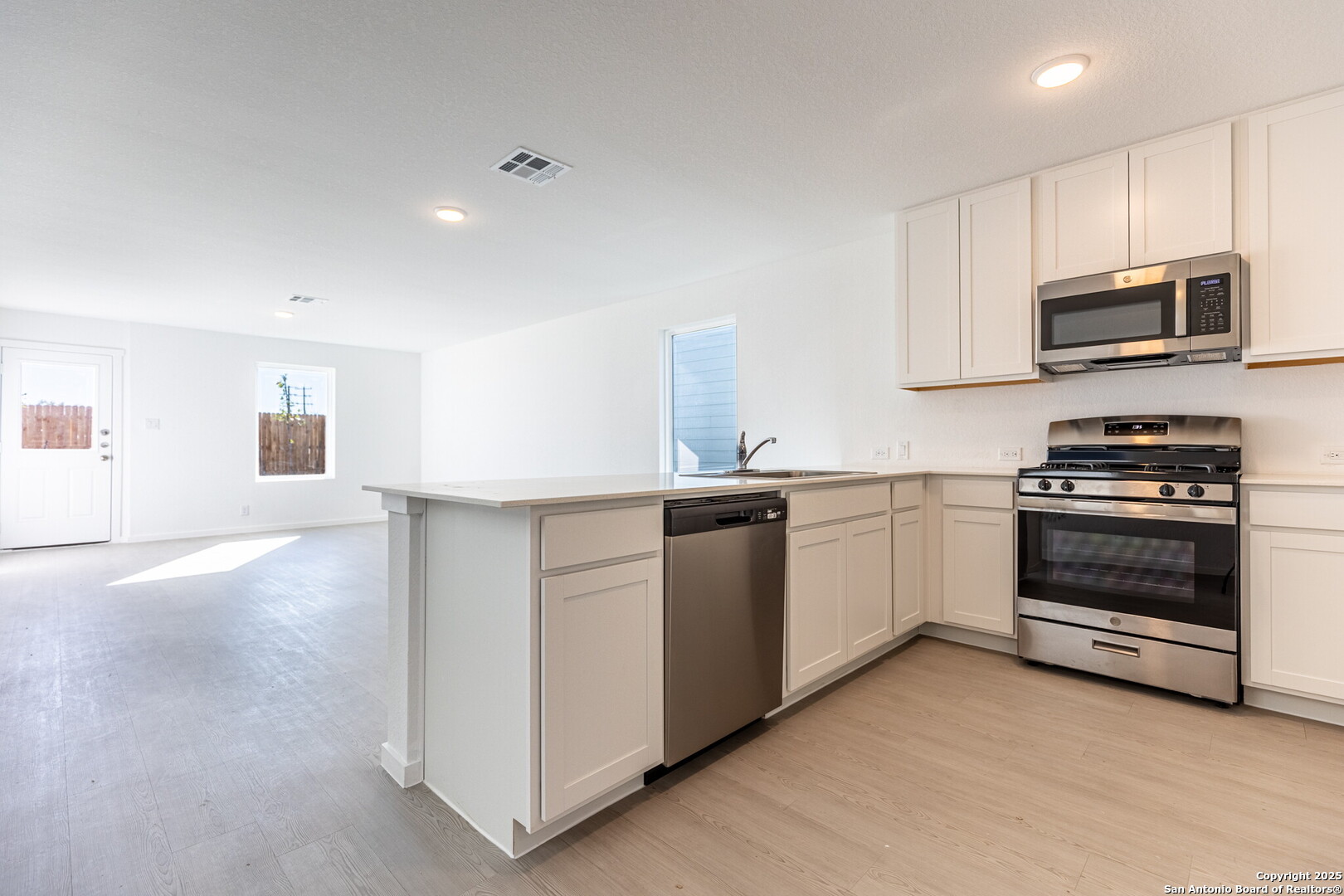 Be the first to make this stunning home yours! Bright and open, the first floor offers an inviting floorplan ideal for entertaining. The sleek, modern kitchen features stainless steel appliances, gas cooking, and ample storage. Upstairs, three spacious secondary bedrooms share a full bath, while the primary retreat boasts a walk-in closet and a full en-suite bath. Enjoy outdoor living in the fully fenced backyard, and take advantage of the garage for parking or additional storage. Ideally located on the growing northwest side of San Antonio with easy access to Lackland AFB, Microsoft data centers, SeaWorld, and abundant shopping, dining, and entertainment options