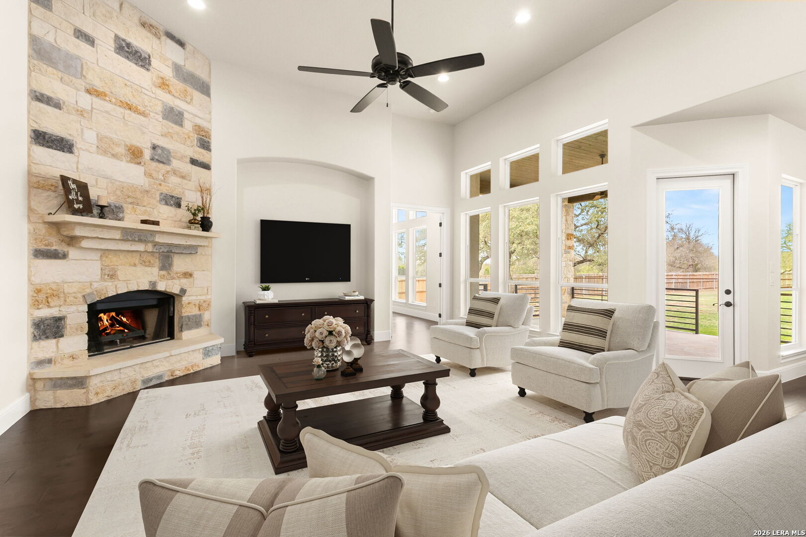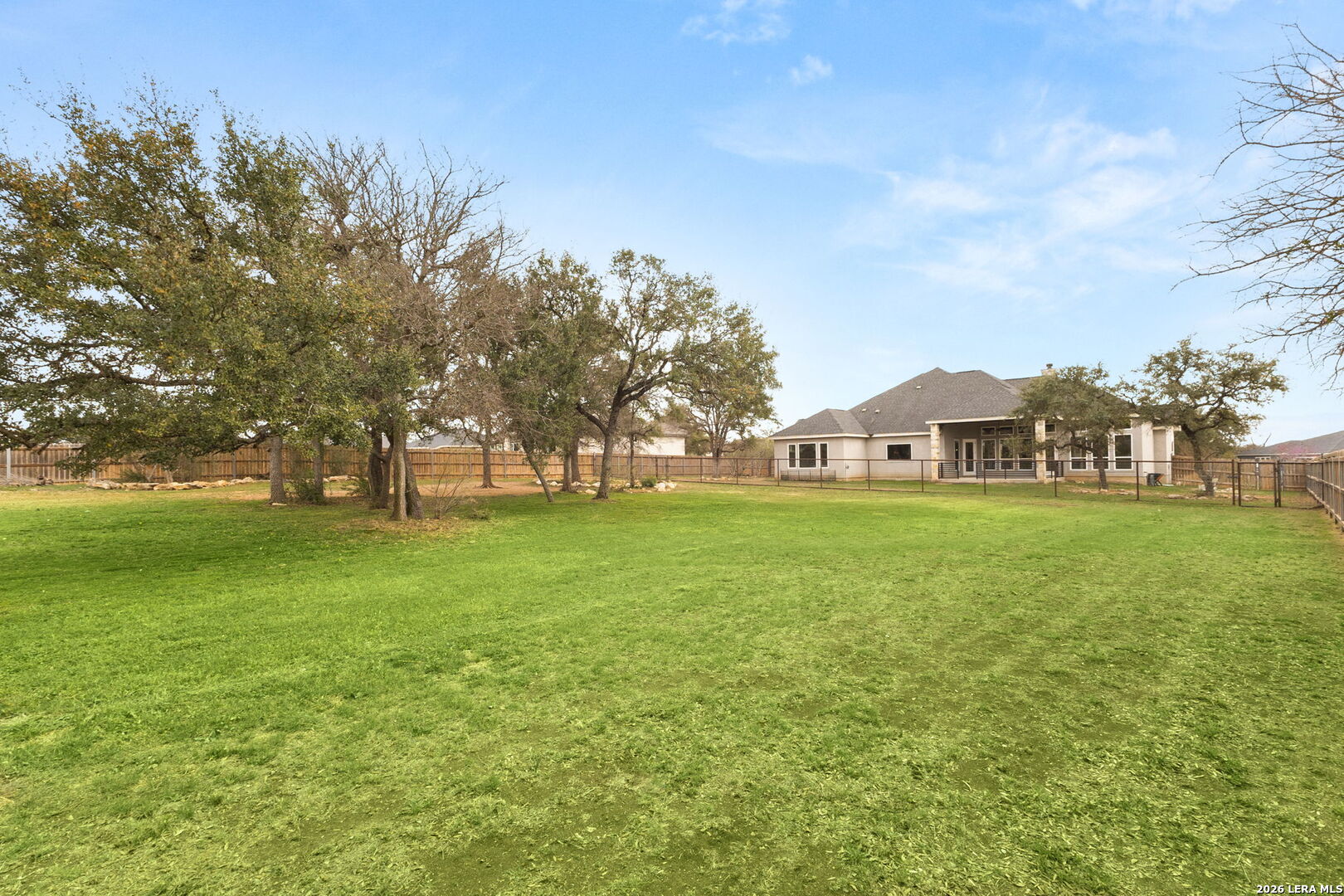 Welcome to Your Texas Hill Country Haven on 1 acre! If you are considering a move to a peaceful lifestyle, come discover the perfect blend of elegance and comfort this stunning home offers in the heart of the picturesque Hill Country! This versatile semi-custom residence features 5 spacious bedrooms and 3 baths, including a media/flex room and a dedicated office-ideal for remote work or family activities. The owner's suite features soaring ceilings, a large custom walk-in closet, dual vanity sinks, and a spa-like oversized shower paired with a relaxing soaking tub. This one-owner home has an abundance of natural light, creating a warm and inviting atmosphere throughout. The gourmet kitchen includes a propane cook top and opens to the vaulted ceiling great room with the convenience of a large walk-in pantry . This gorgeous property is completely fenced with a private gate set on a 1-acre lot, the grounds are adorned with established trees including majestic Red Oaks, vibrant Redbuds, Monterey Oaks, and beautiful Crepe Myrtles, offering tranquility and space to relax. Enjoy Ample space for vehicles and toys in the oversized garage plus a full walk out attic with lots of storage for easy access. Located in the desirable Crossings at Spring Creek subdivision, enjoy access to a community pool, amazing walking trails along the creek, playground,volleyball court, and a pavilion with a built-in BBQ area-perfect for gatherings and outdoor fun!