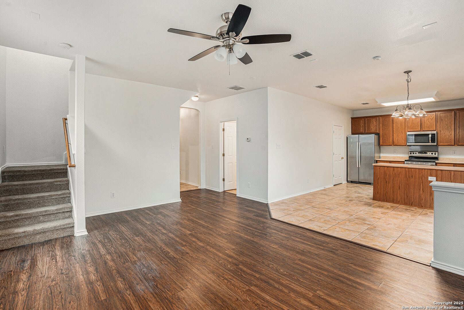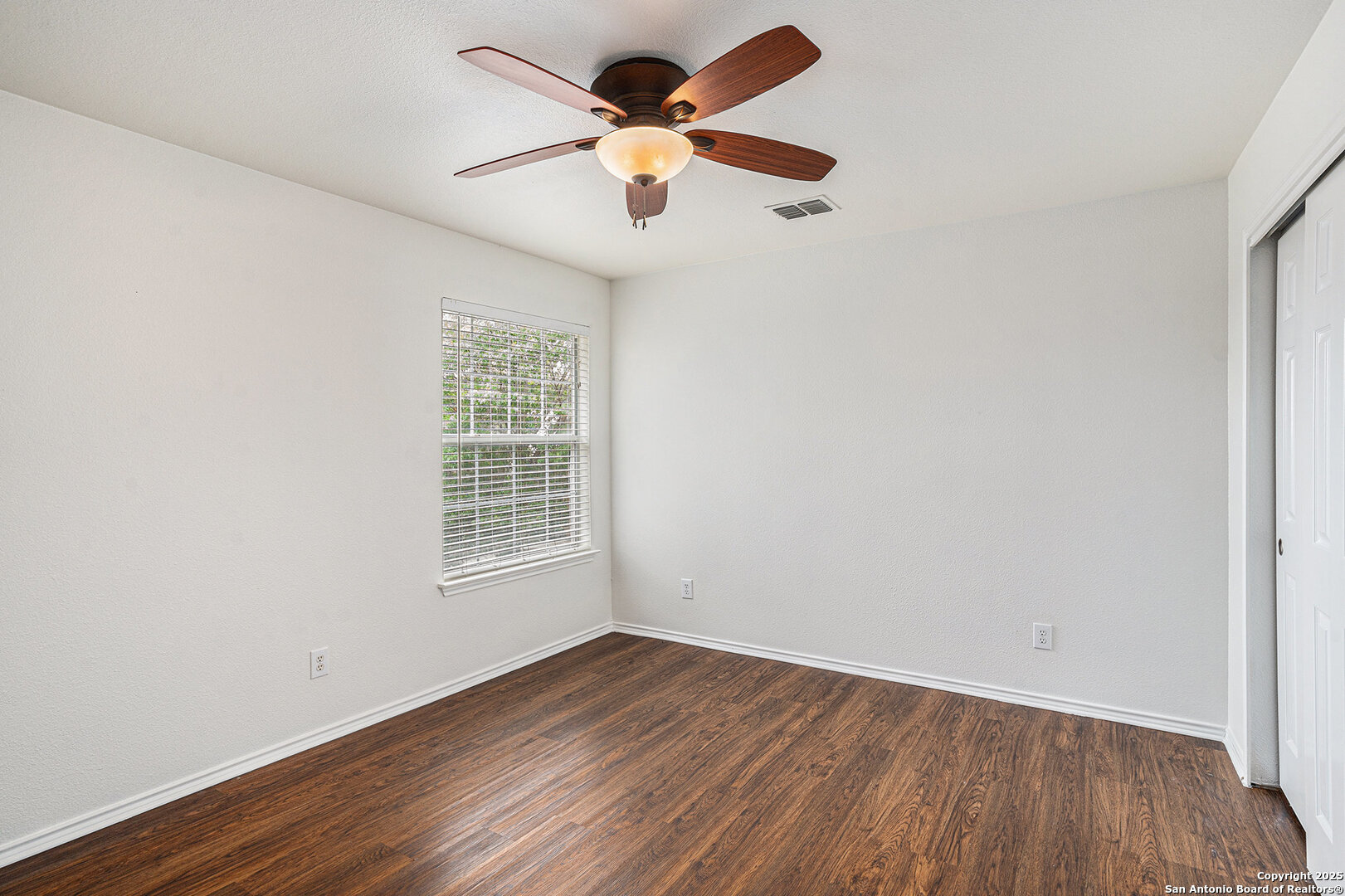 Welcome home to this beautifully maintained 4-bedroom, 2.5-bathroom home located in the highly sought-after Alamo Ranch community. Step inside to find laminate flooring throughout, creating a warm and inviting atmosphere, while durable tile floors in the kitchen and bathrooms offer easy maintenance. At the front of the home, a dedicated front office with French doors is perfect as a home office or study. The kitchen's open feel makes everyday living a breeze. All four bedrooms are housed upstairs. The primary suite offers a peaceful retreat with a private full bath that includes a garden tub and a standing shower. Enjoy Texas evenings on the back patio, ideal for relaxing or hosting outdoor get-togethers. Located in a quiet, well-established neighborhood with easy access to Loop 1604, shopping, dining, and schools-this home is move-in ready! Schedule your showing today!