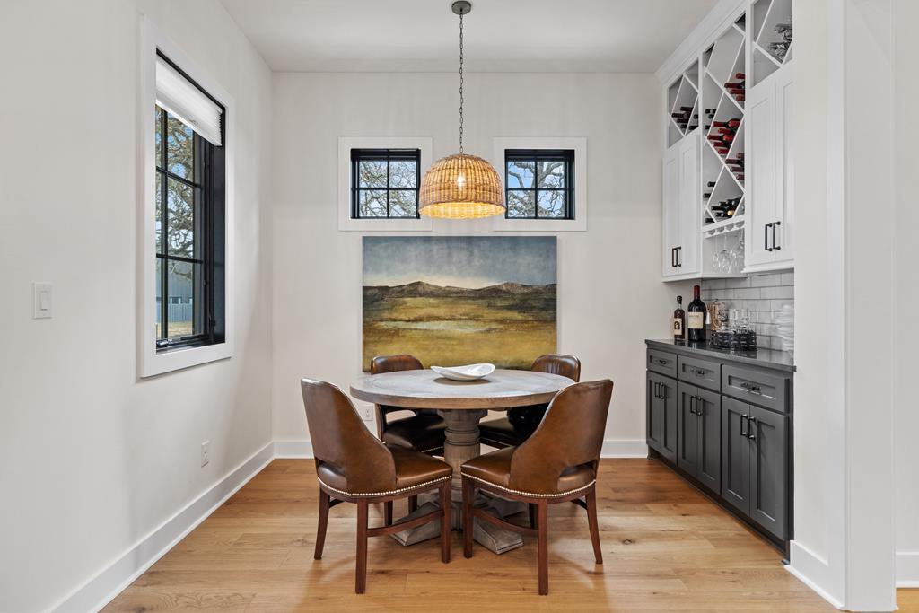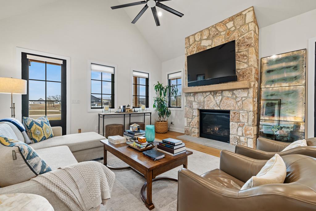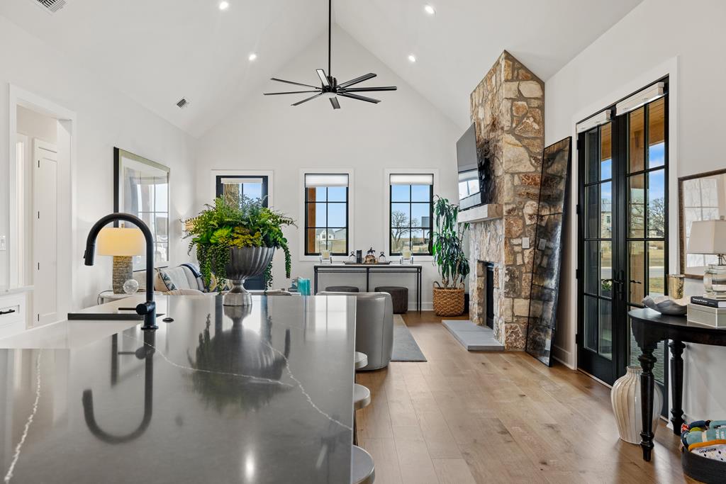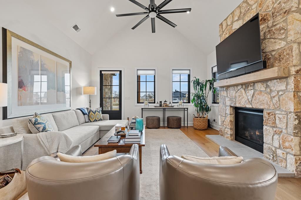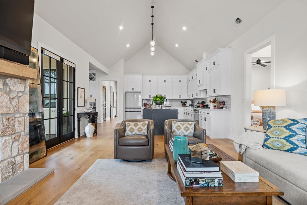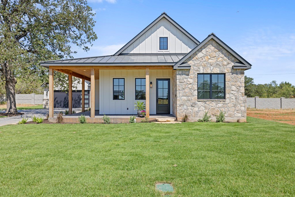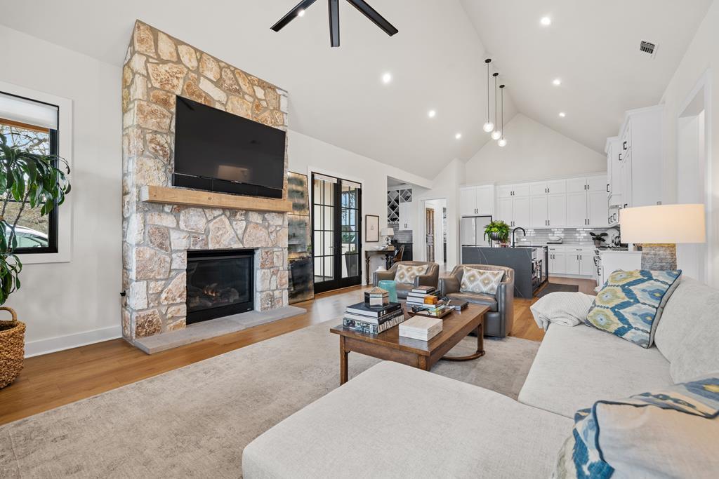 Discover your dream home in a stunning southern living-inspired gated community, just 2 miles from Main Street. Nestled in a tranquil cul-de-sac, this residence combines elegance & comfort with access to over 5 miles of walking trails, serene spring-fed ponds, & a sprawling 12-acre park. This home features nearly 2,100 square feet of meticulously designed living space, including 3 bedrooms & 2.5 bathrooms. The master suite serves as a private retreat, complete w/ an oversized walk-in shower, double vanity, & generous walk-in closet. The split floor plan enhances privacy while maintaining an open, airy feel. The open-concept kitchen, living, & dining areas are perfect for entertaining, featuring a striking stone fireplace & seamless access to a wrap-around covered porch. The kitchen is a chef's delight w/ a stunning waterfall quartz island, gas cooktop, ample storage, and a pantry equipped w/ a wine refrigerator. Additional premium features include Pella windows for natural light, white oak engineered hardwood floors, & a detached 2-car garage w/ climate control. Outside, enjoy extensive walking trails, picturesque ponds, & vibrant 12 ac. park space, all steps from your front door.