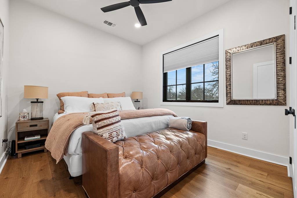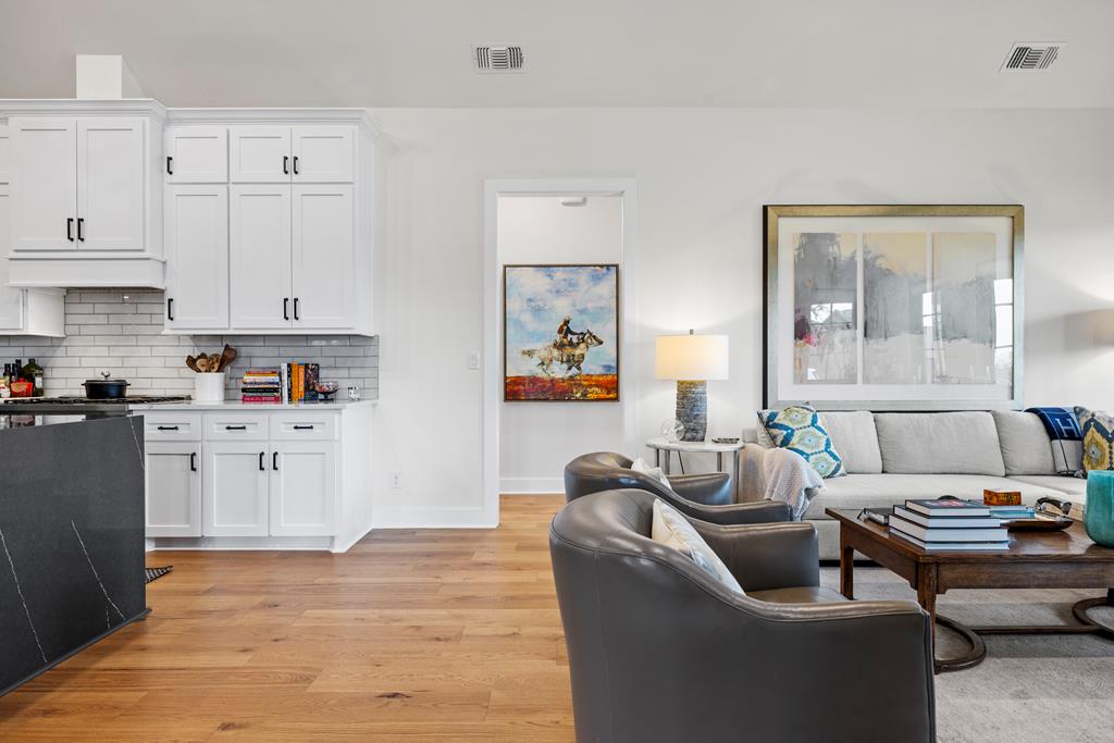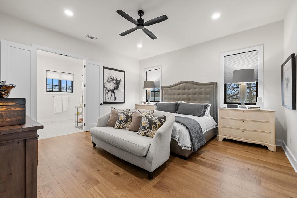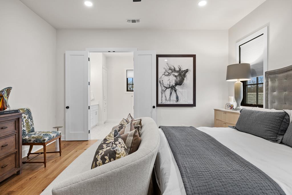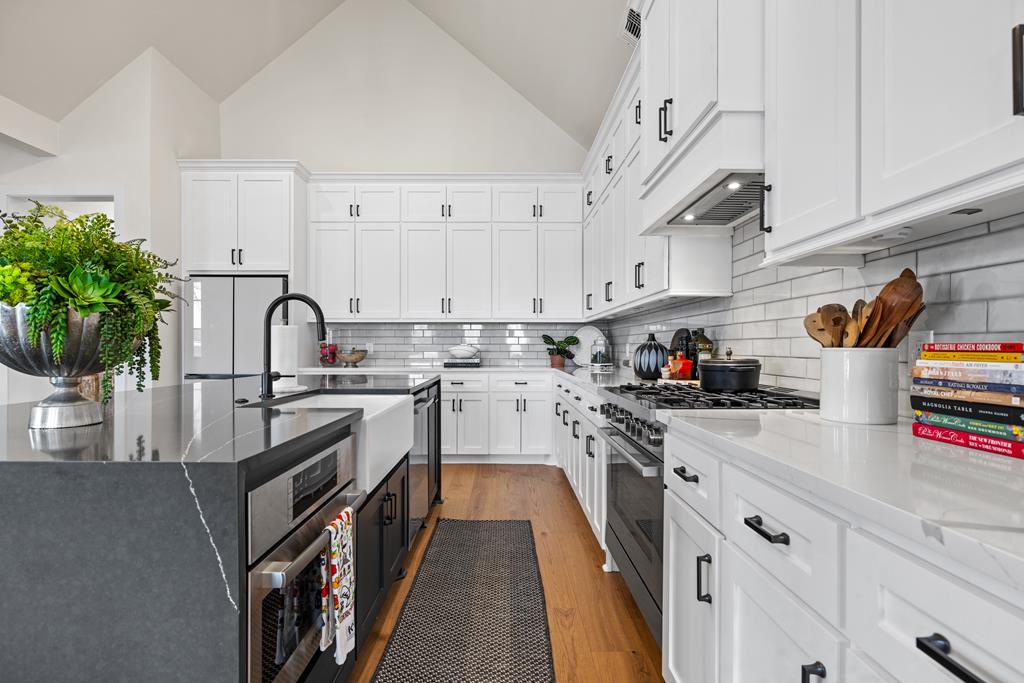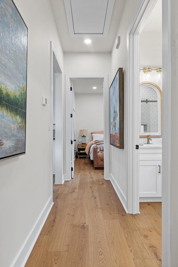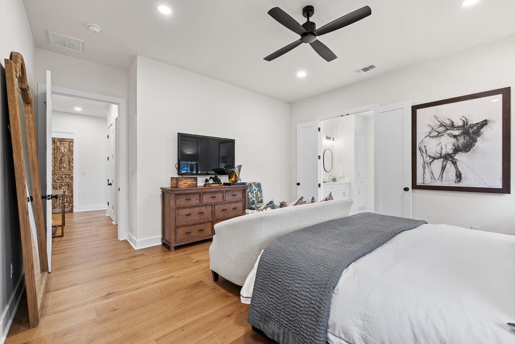 Discover your dream home in a stunning southern living-inspired gated community, just 2 miles from Main Street. Nestled in a tranquil cul-de-sac, this residence combines elegance & comfort with access to over 5 miles of walking trails, serene spring-fed ponds, & a sprawling 12-acre park. This home features nearly 2,100 square feet of meticulously designed living space, including 3 bedrooms & 2.5 bathrooms. The master suite serves as a private retreat, complete w/ an oversized walk-in shower, double vanity, & generous walk-in closet. The split floor plan enhances privacy while maintaining an open, airy feel. The open-concept kitchen, living, & dining areas are perfect for entertaining, featuring a striking stone fireplace & seamless access to a wrap-around covered porch. The kitchen is a chef's delight w/ a stunning waterfall quartz island, gas cooktop, ample storage, and a pantry equipped w/ a wine refrigerator. Additional premium features include Pella windows for natural light, white oak engineered hardwood floors, & a detached 2-car garage w/ climate control. Outside, enjoy extensive walking trails, picturesque ponds, & vibrant 12 ac. park space, all steps from your front door.