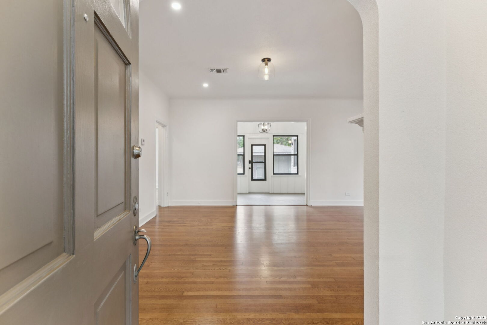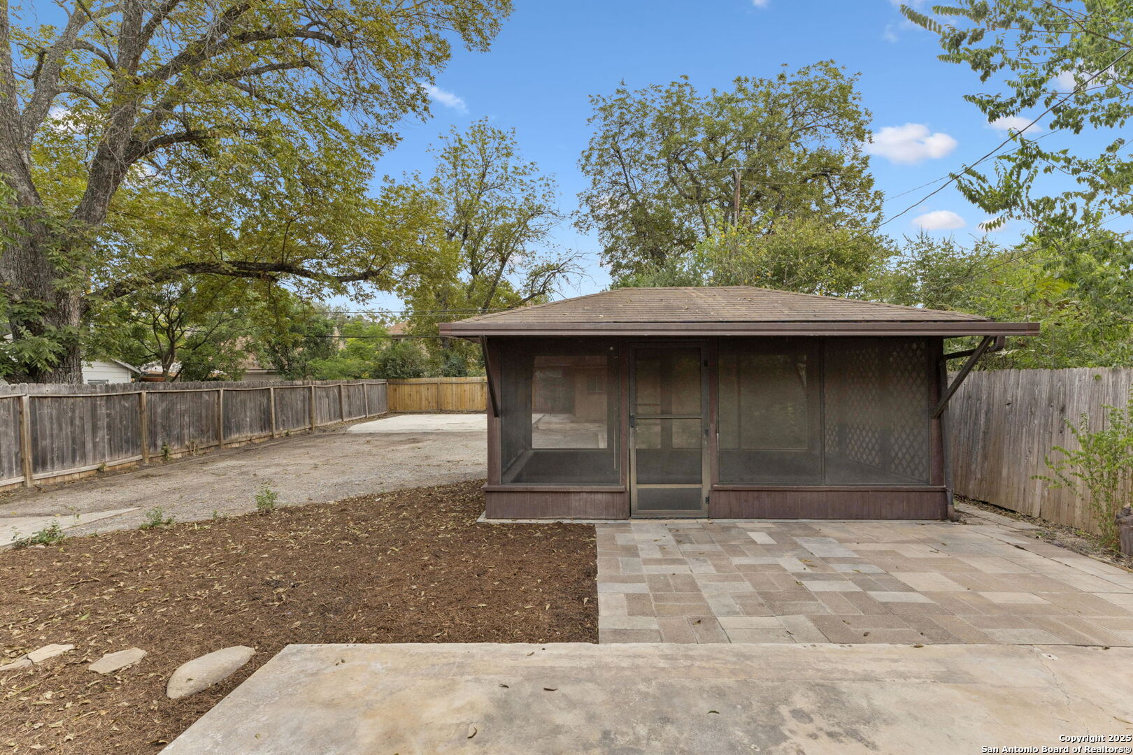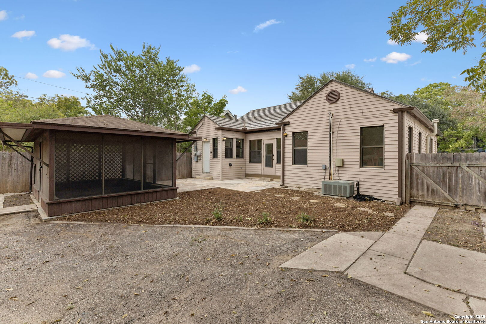 Welcome to this beautifully updated 2 bedroom, 1 bath home offering 1,295 square feet of character and charm. Built in the 1934, this residence blends original details with thoughtful upgrades. Step inside to find original hardwood floors throughout and plaster walls that gently curve into the ceiling, showcasing the craftsmanship of a bygone era. Double pane windows allow abundant natural light to fill every room. The inviting living room features a cozy fireplace and flows seamlessly into the separate dining room. The kitchen features custom cabinetry and cleverly integrated under counter laundry to maximize space and efficiency without compromising on style. Outside, this home sits on a generously sized lot with multiple spaces designed for entertaining, including a screened-in gazebo. The backyard is a true blank canvas, ready for a garage, a casita, a pool, or all three. There's plenty of room to make it your own. Located conveniently in Monte Vista Terrace, just minutes from Highway 281 and I-10, making commutes and travels a breeze. Enjoy being able to walk to local boutiques, neighborhood restaurants and coffee shops, and just a short drive to downtown. Classic yet updated, this home offers the best of both worlds, vintage charm and modern comforts.